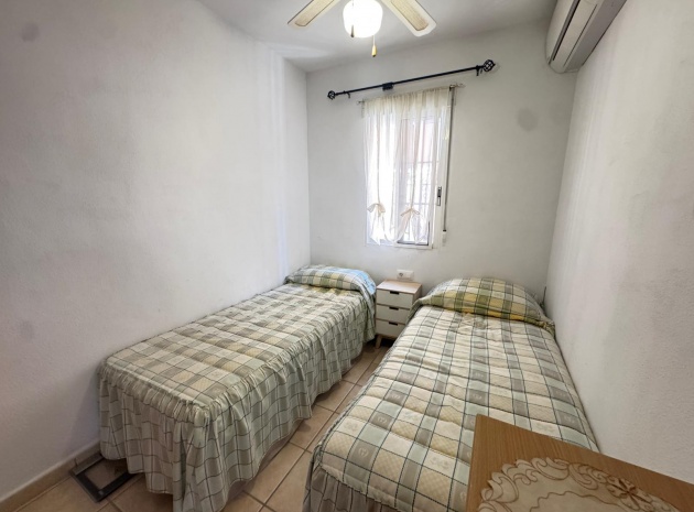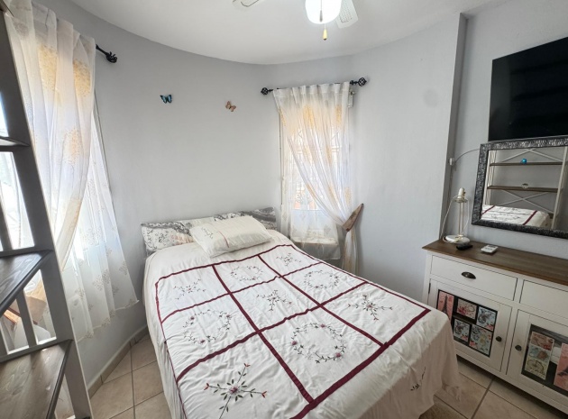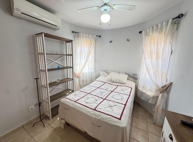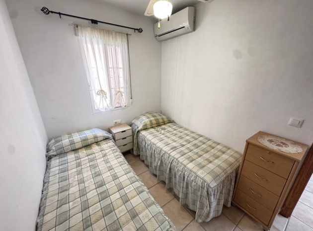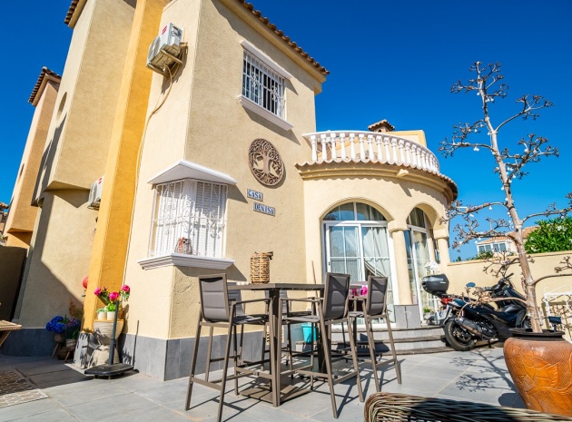 Eine nach Osten ausgerichtete, freistehende einstöckige Villa mit 2 Schlafzimmern und 1 Bad und privatem Solarium auf dem Dach in Villas San Luis, Playa Flamenca, Costa Blanca Süd.