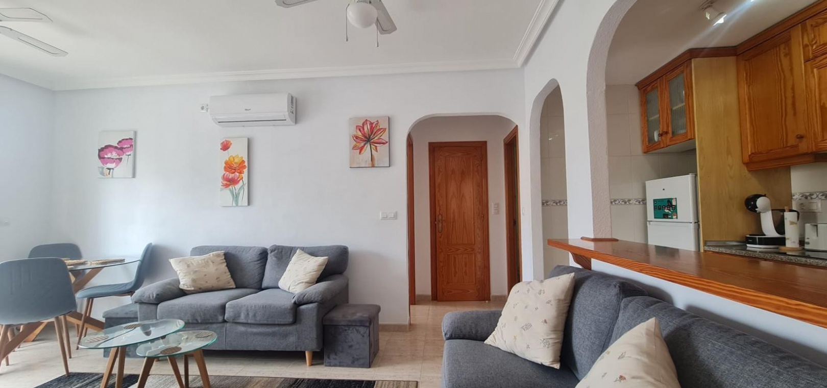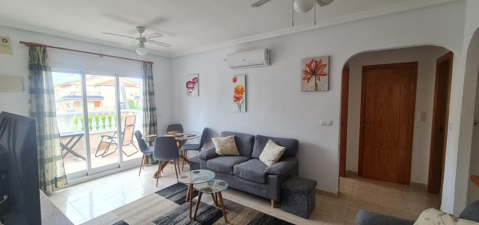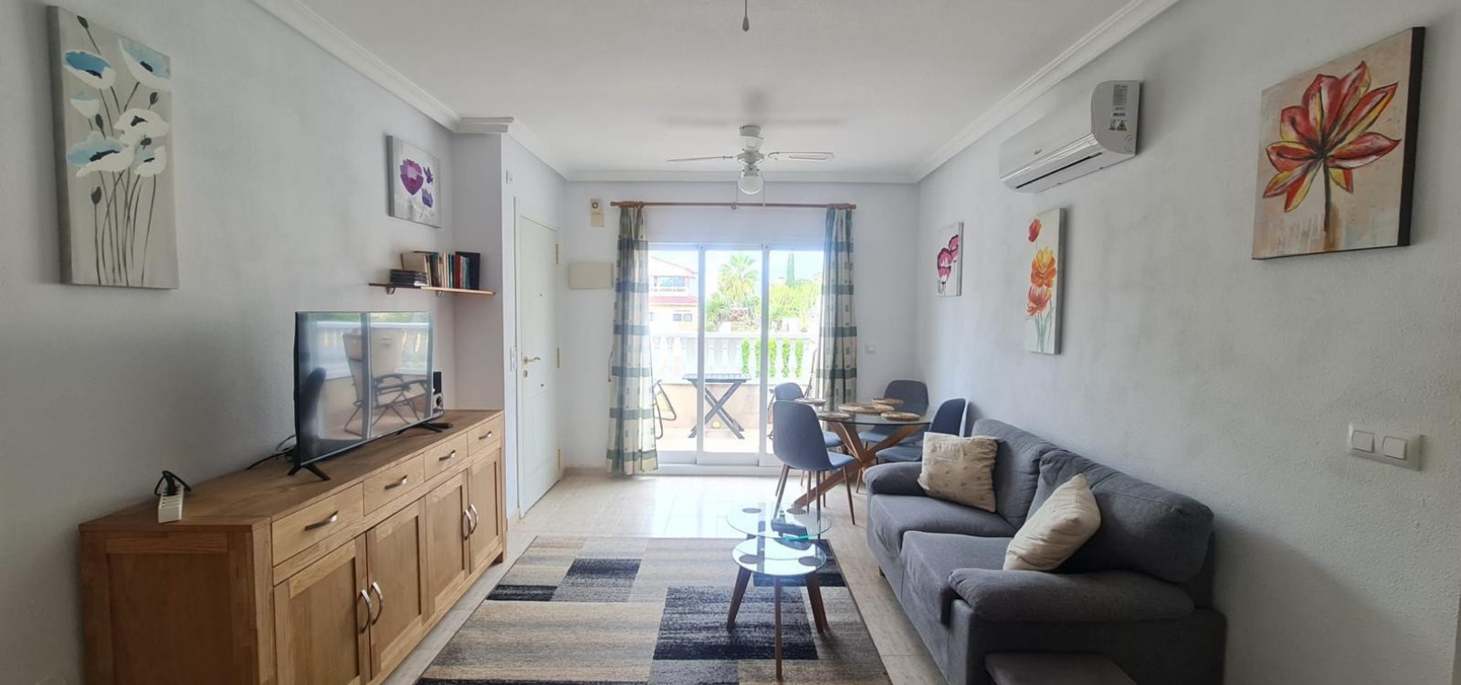 Wohn-/Esszimmer mit Klimaanlage (warm und kalt), offene Küche, separater Hauswirtschaftsraum, Abstellraum, Balkon neben dem Wohnzimmer, 2 Doppelschlafzimmer, 1 Familienbadezimmer, privater Swimmingpool und vieles mehr.