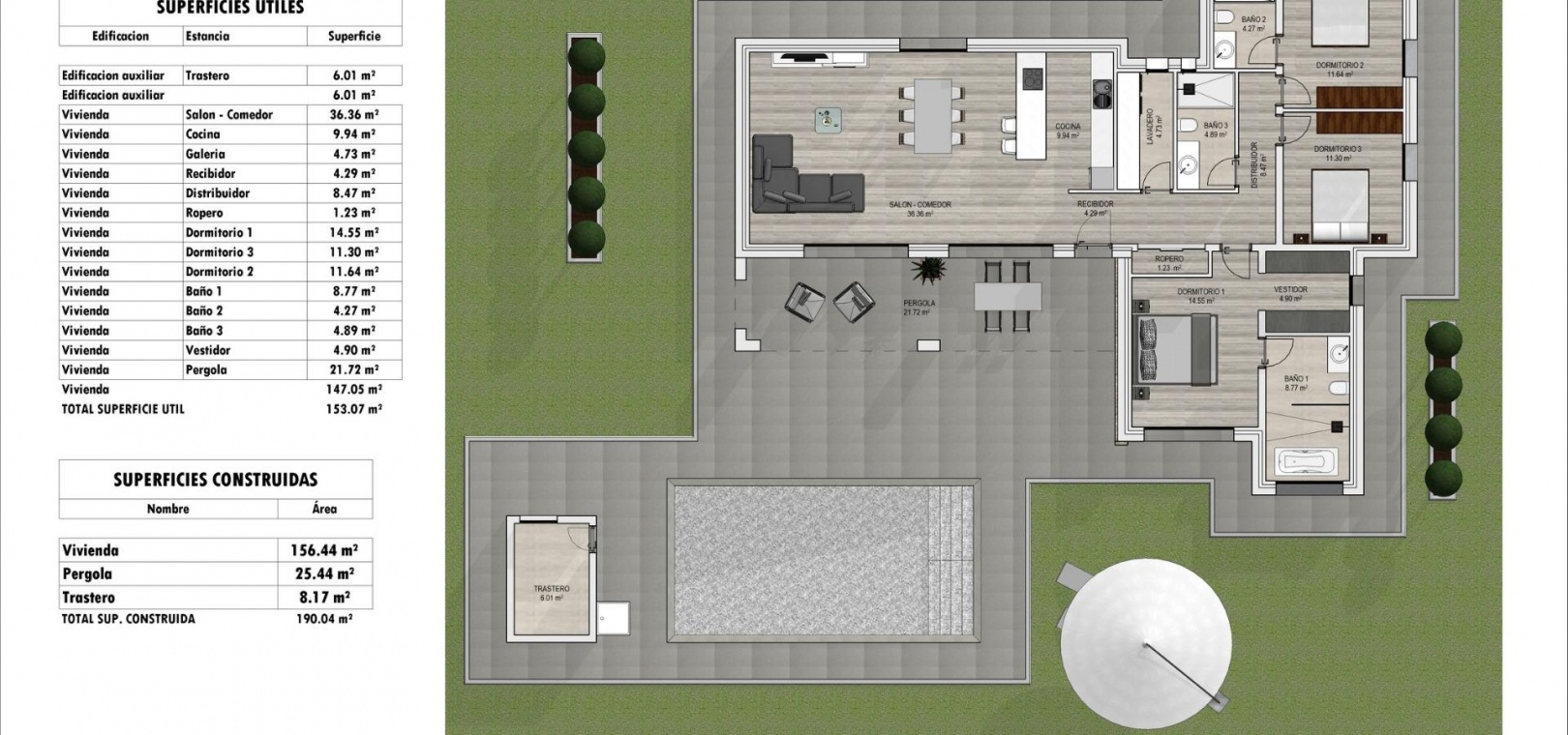 Die Villen verfügen über eine offene Küche mit Wohnzimmer, Einbauschränke, einen privaten Pool, eine Veranda, einen Abstellraum und einen Außenparkplatz.