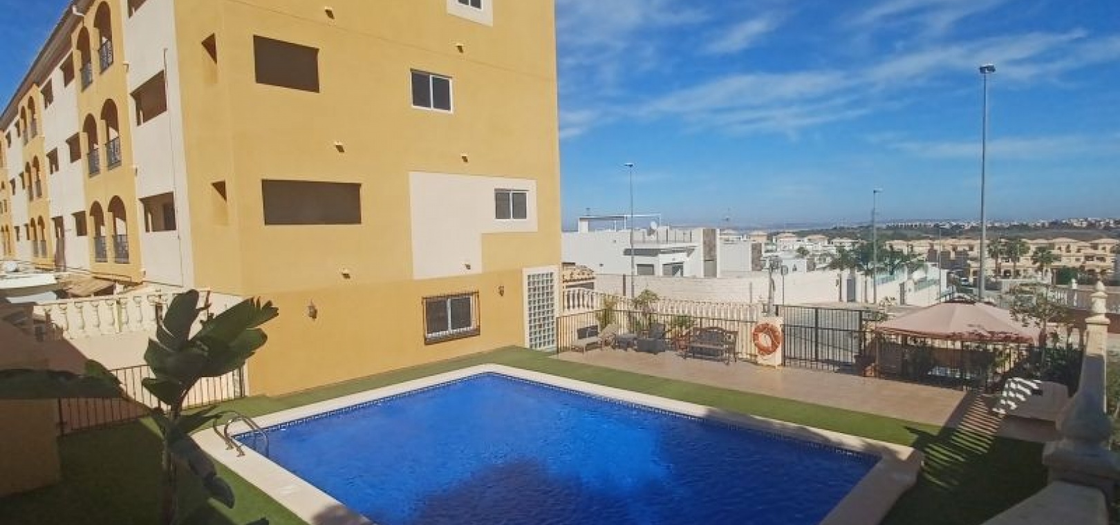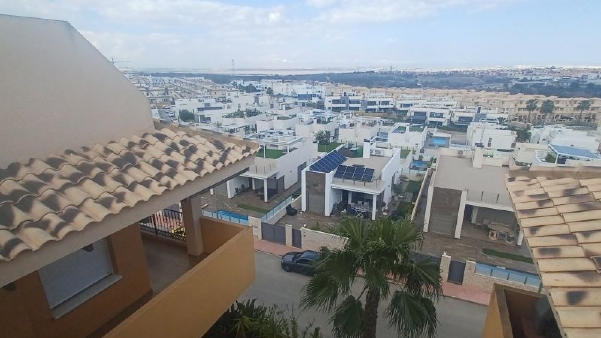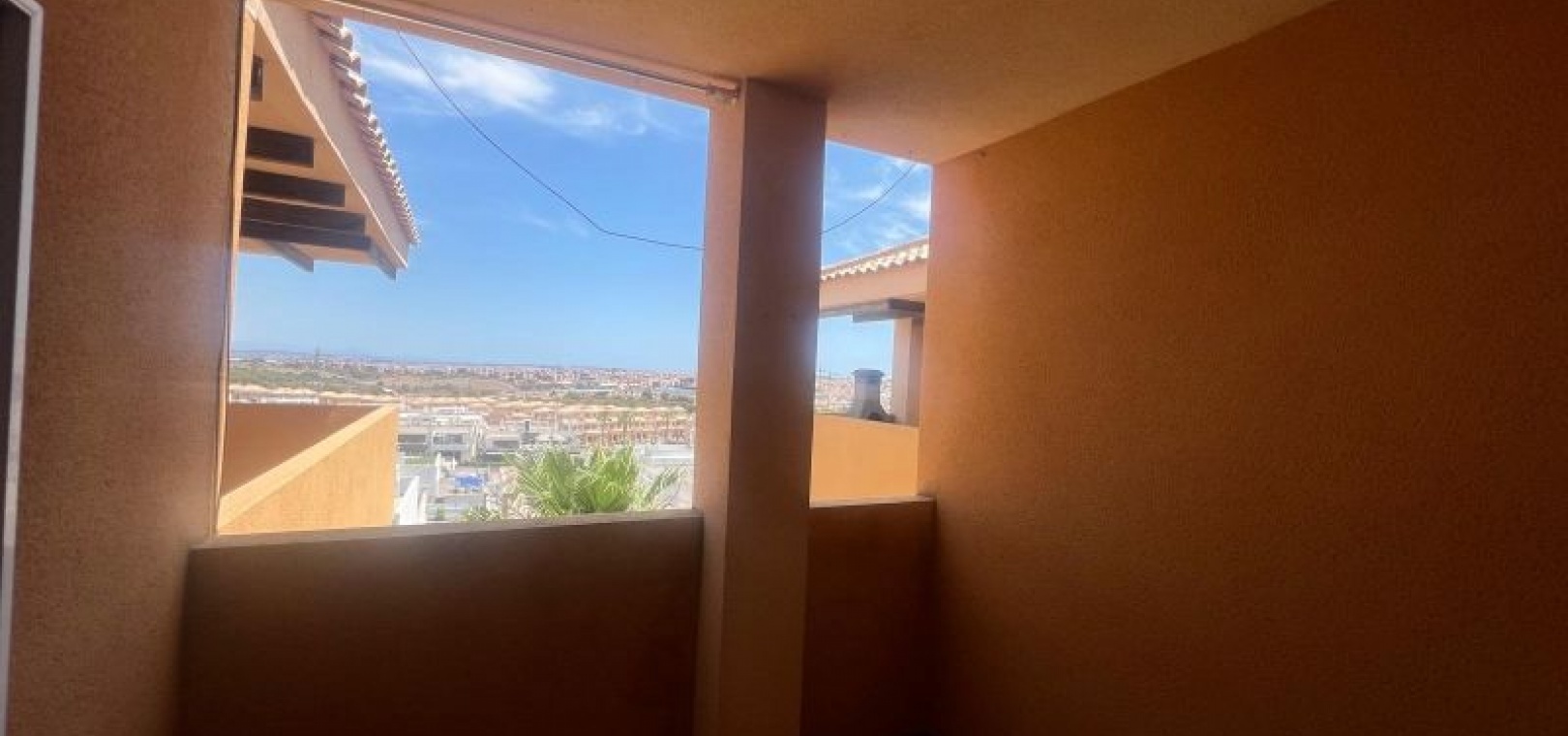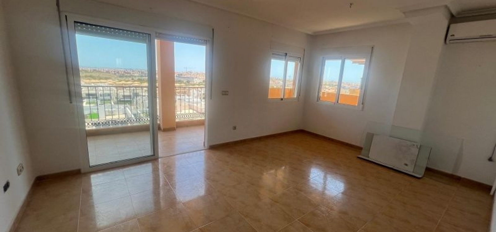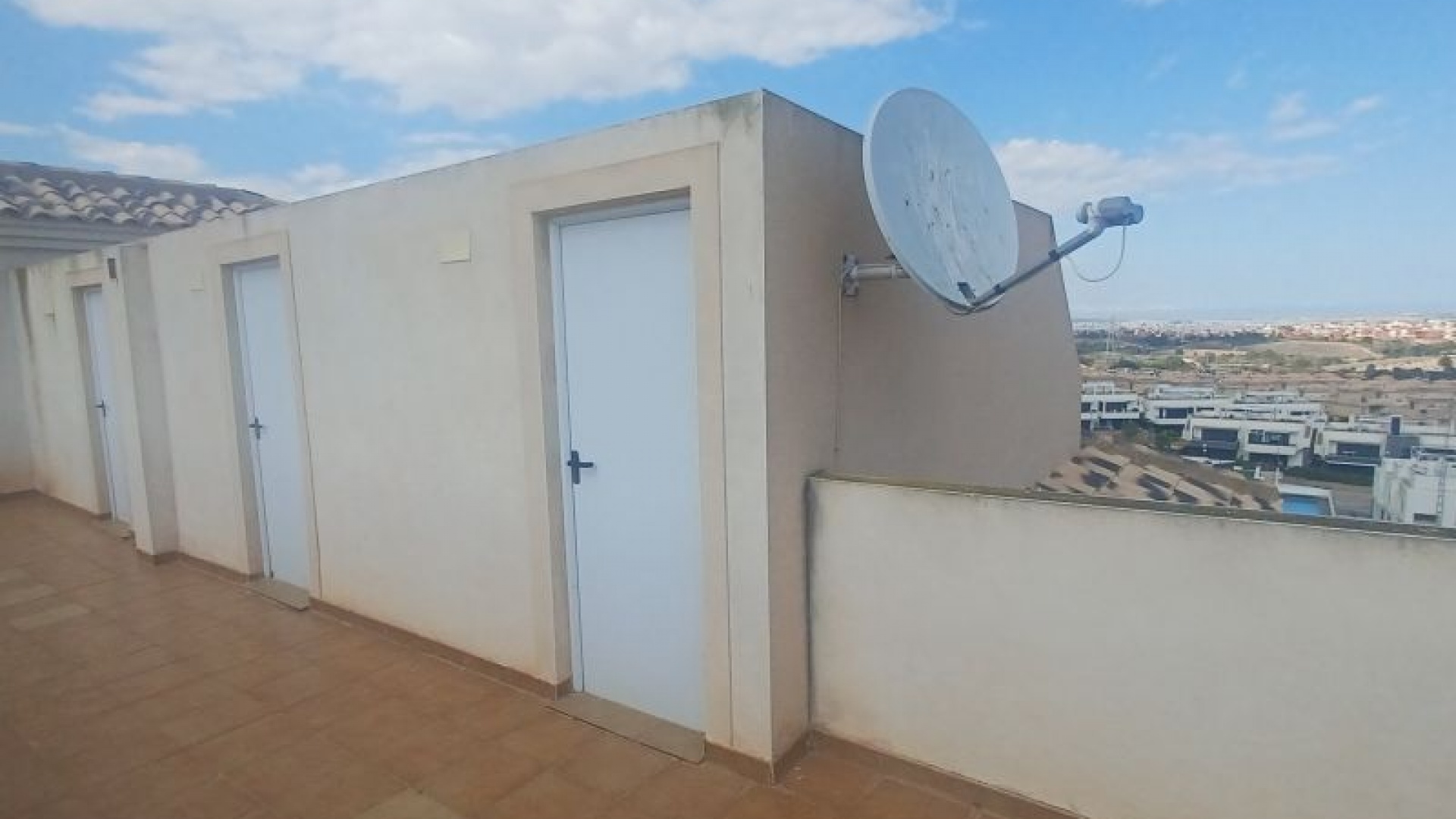 GERÄUMIGES PENTHOUSE MIT TERRASSE UND PRIVATEM SOLARIUM MIT AUSSICHT UND POOL EINFACHE MÖGLICHKEIT ZUR ERWEITERUNG AUF 3 SCHLAFZIMMER Das Hotel liegt in einer ruhigen Wohngegend, neben einer geschützten Grünfläche, 1 km von Dienstleistungen wie Bushaltestelle, Supermärkten wie ALDI, Consum, ..., 2 km vom Golfplatz Villamartin und 5 km von den Stränden von Orihuela Costa, wie Punta Prima, Playa Flamenca, La Zenia, ... entfernt. Das Haus ist ein Penthouse im dritten Stock und verfügt über einen Aufzug. Das geräumige, quadratisch gestaltete Wohnzimmer bietet Zugang zu einer Terrasse mit freiem Blick auf das Meer und die Grünflächen. Es verfügt über ein zusätzliches Zimmer, das leicht in ein drittes Schlafzimmer oder ein separates Arbeitszimmer umgewandelt werden kann. Gemeinschaftspool. Sehr wenig genutzt.