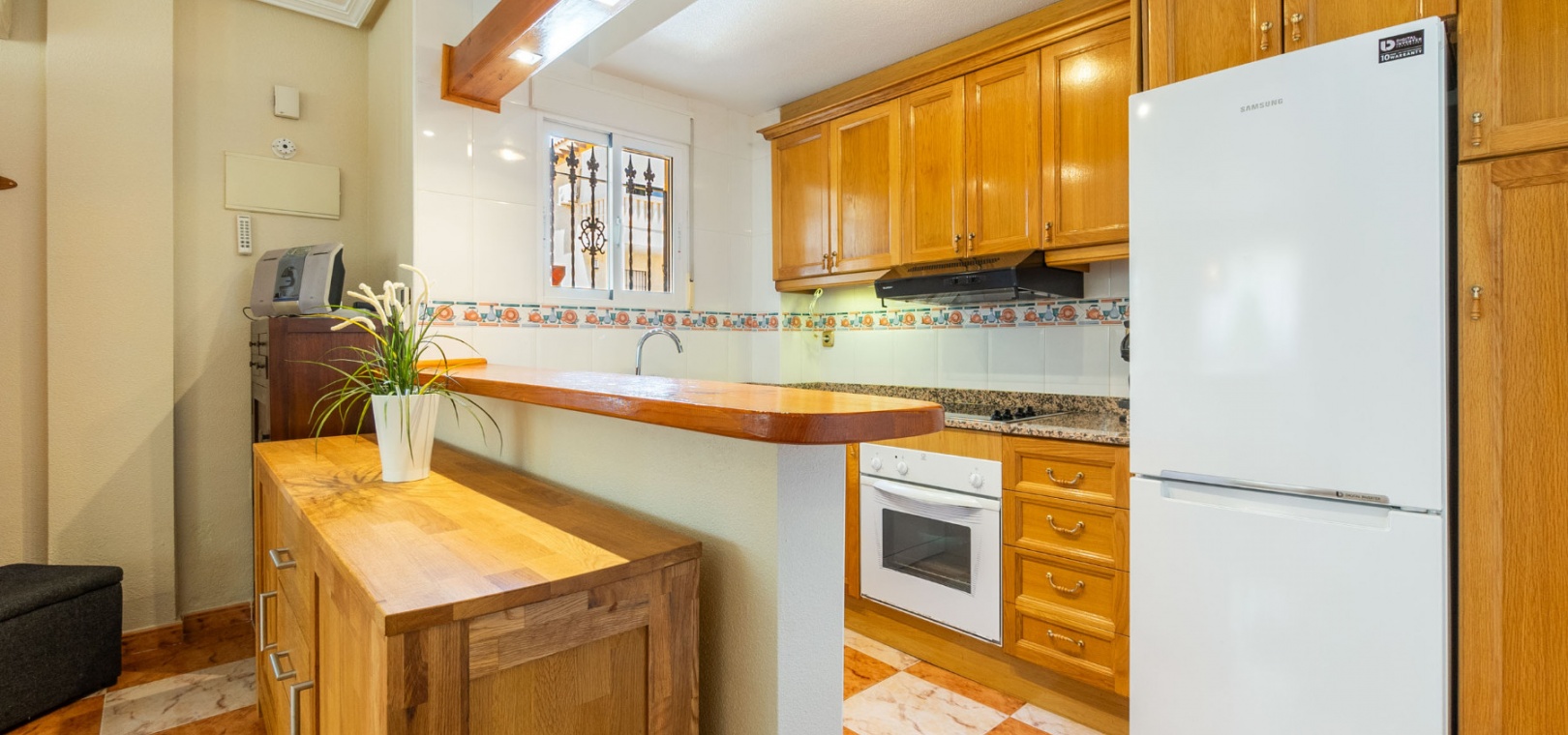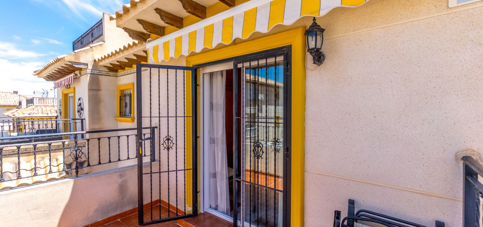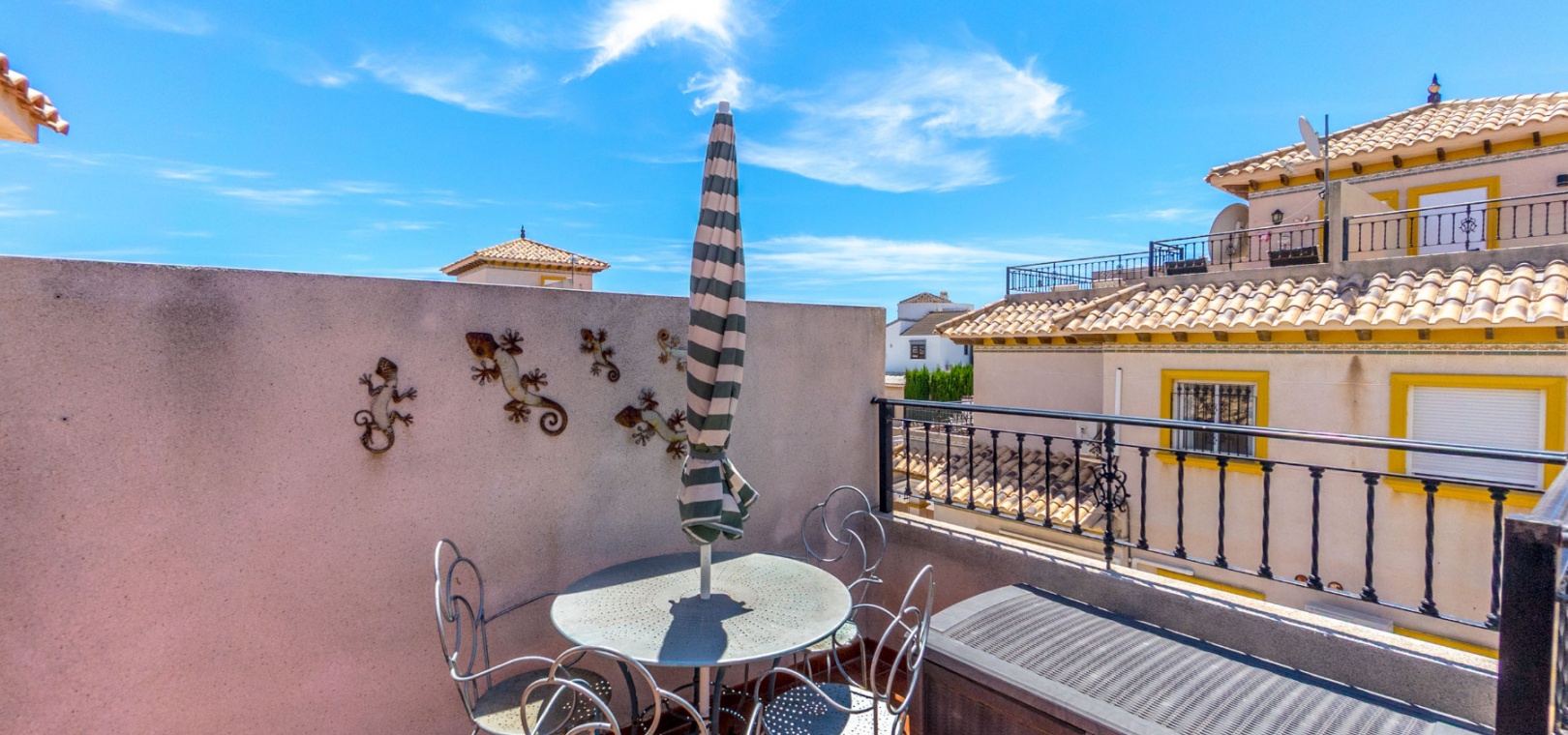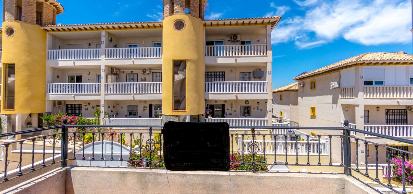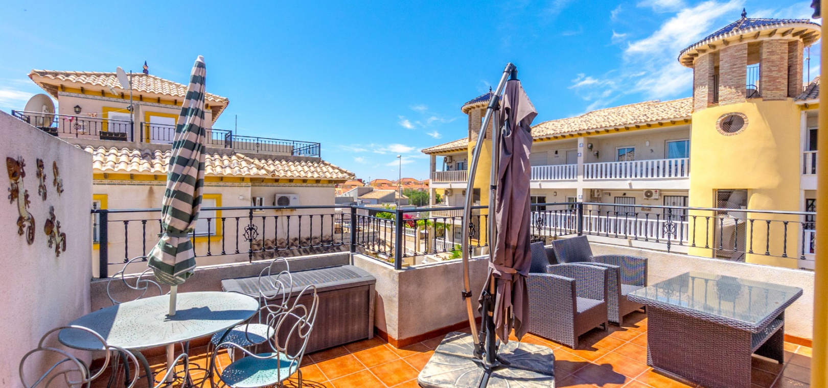 Ein nach Süden ausgerichtetes Vierfamilienhaus mit 2 Schlafzimmern, 1,5 Bädern und privatem Solarium auf dem Dach in Pinada Golf II, Villamartin, Costa Blanca Süd.