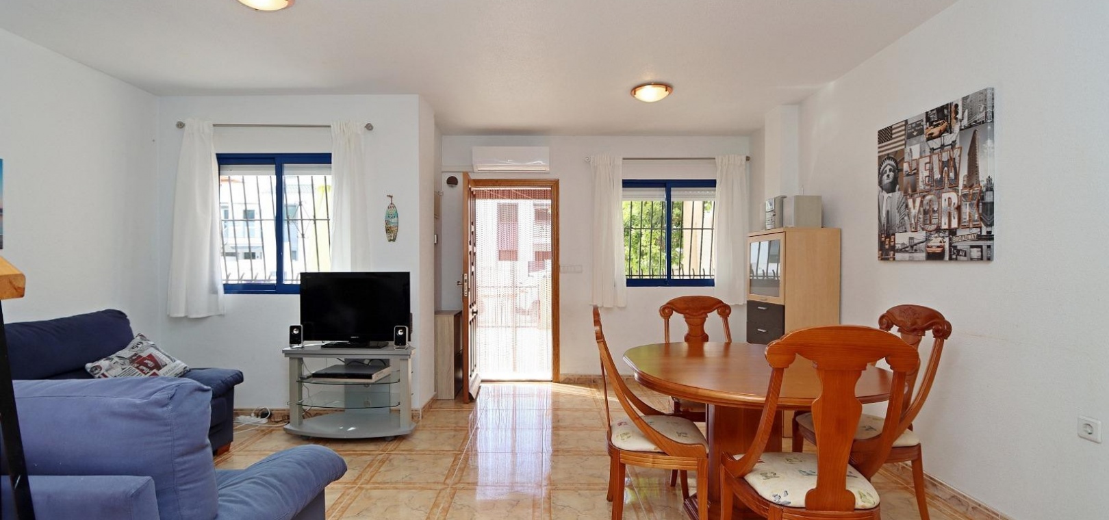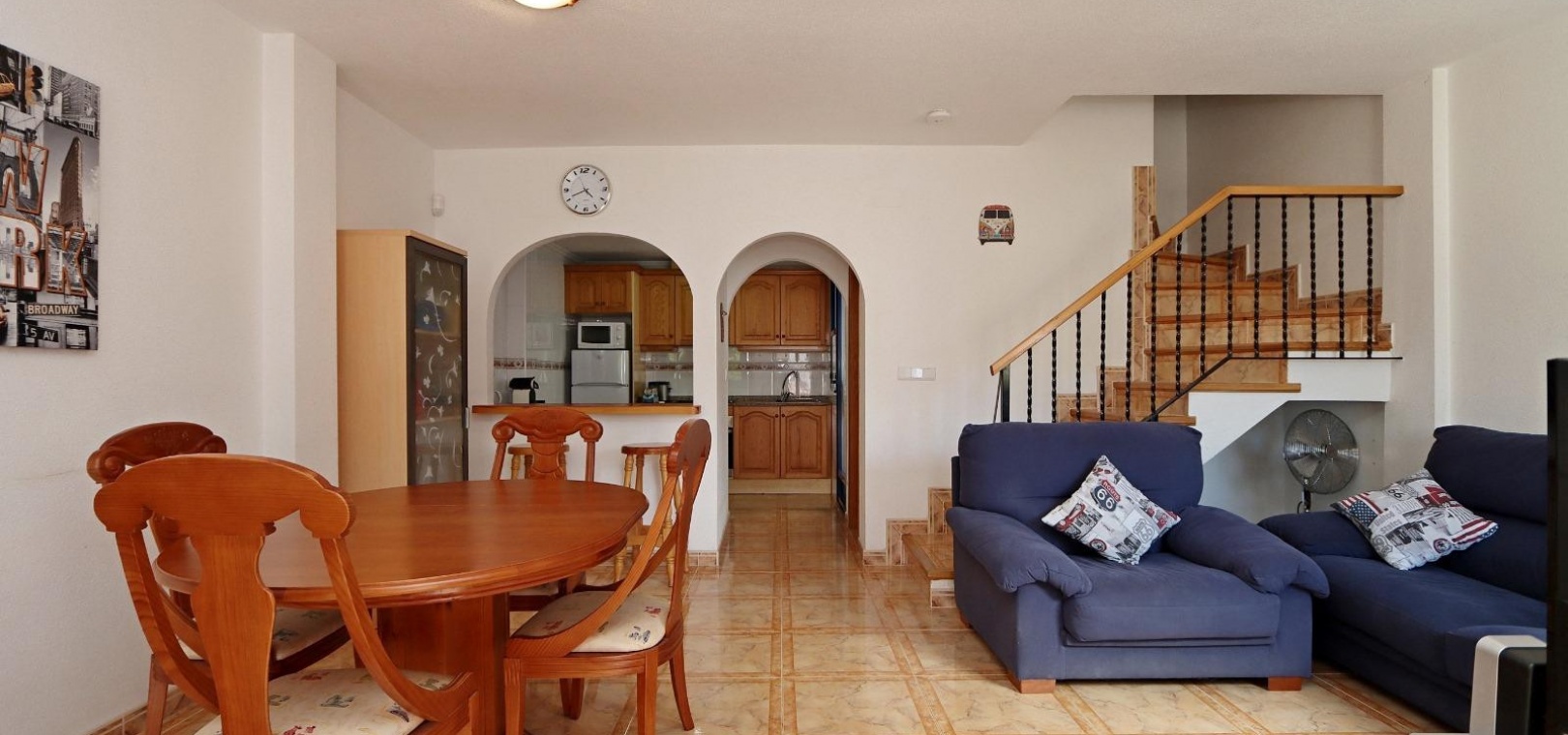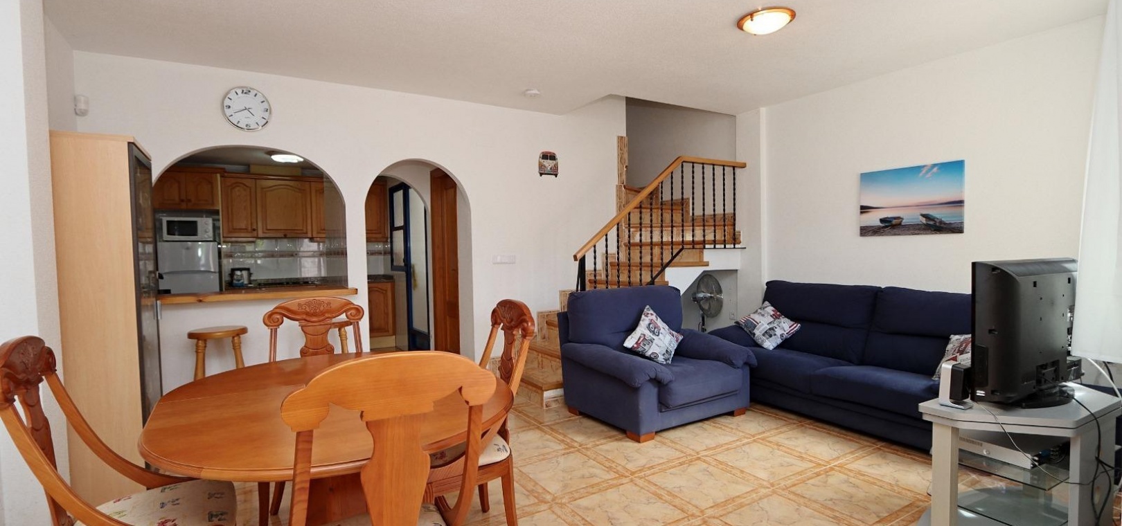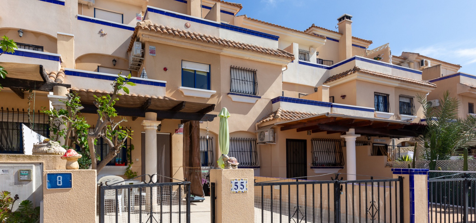 Ausgezeichnete Lage für dieses etablierte Stadthaus, nur 800 m vom Strand La Zenia entfernt. Die Immobilie bietet 3 Schlafzimmer, ein Hauptschlafzimmer mit 5 m² großem Balkon und Sonnenterrasse, 2 Badezimmer (eines im Erdgeschoss mit Dusche und WC und eines im ersten Stock mit Vollbad), ein Wohn-/Esszimmer und eine teilweise separate Küche mit angrenzendem Hauswirtschafts-/Waschraum. Der Außenbereich bietet einen pflegeleichten Garten/eine Terrasse mit Parkplatz auf dem Gelände und ein Solarium für ganzjährige Sonne. Das Haus wird teilmöbliert und schlüsselfertig mit Extras wie Klimaanlage, Haushaltsgeräten, Sicherheitsrollläden und -gittern verkauft. Die Anlage mit Pool für Erwachsene und Kinder liegt nur einen Steinwurf von lokalen Bars, Restaurants, Supermärkten, einem Taxistand, dem Einkaufszentrum La Zenia Boulevard und natürlich dem mit der Blauen Flagge ausgezeichneten Strand La Zenia entfernt. Die AP7 und die Küstenstraße N332 zu den Flughäfen Murcia und Alicante sind leicht zu erreichen. Ein perfektes Einfamilienhaus oder eine Investitionsmöglichkeit zur Miete.