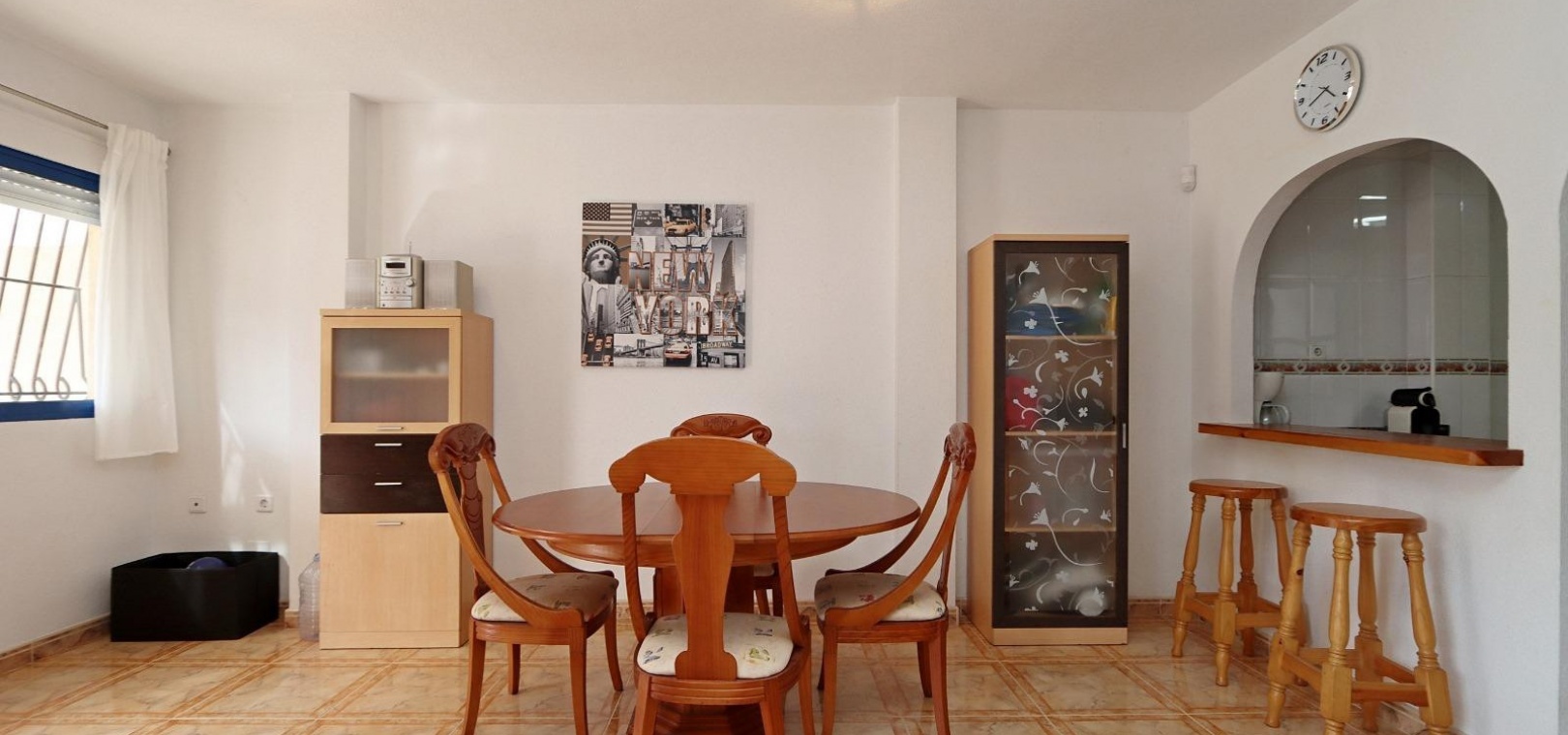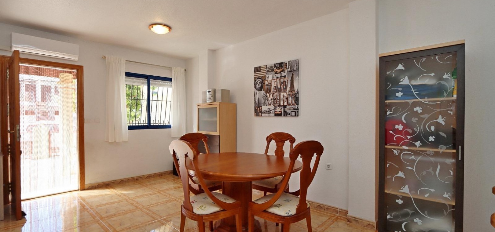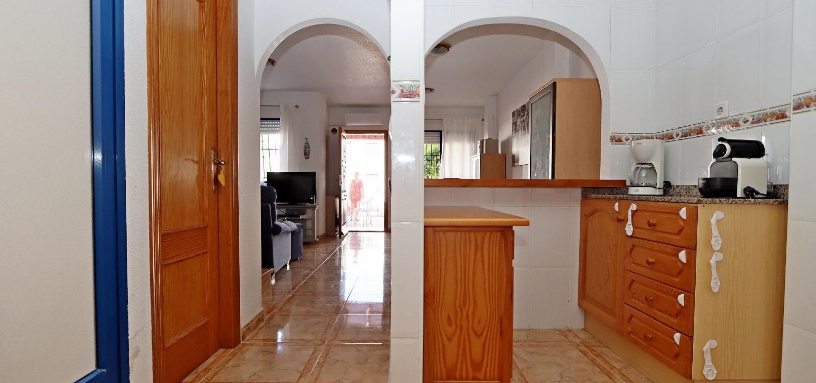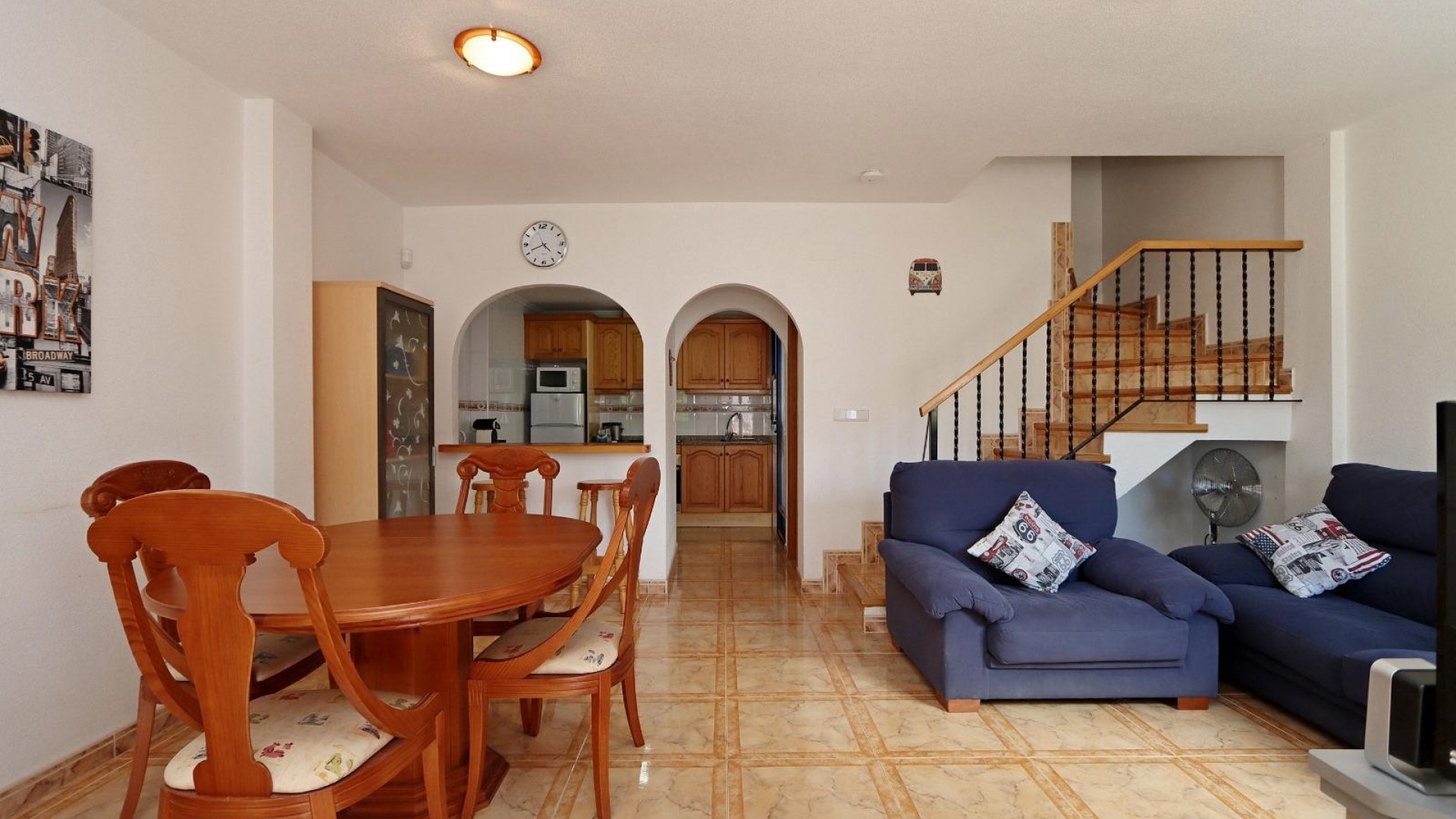 Ausgezeichnete Lage für dieses etablierte Stadthaus, nur 800 m vom Strand La Zenia entfernt. Die Immobilie bietet 3 Schlafzimmer, ein Hauptschlafzimmer mit 5 m² großem Balkon und Sonnenterrasse, 2 Badezimmer (eines im Erdgeschoss mit Dusche und WC und eines im ersten Stock mit Vollbad), ein Wohn-/Esszimmer und eine teilweise separate Küche mit angrenzendem Hauswirtschafts-/Waschraum. Der Außenbereich bietet einen pflegeleichten Garten/eine Terrasse mit Parkplatz auf dem Gelände und ein Solarium für ganzjährige Sonne. Das Haus wird teilmöbliert und schlüsselfertig mit Extras wie Klimaanlage, Haushaltsgeräten, Sicherheitsrollläden und -gittern verkauft. Die Anlage mit Pool für Erwachsene und Kinder liegt nur einen Steinwurf von lokalen Bars, Restaurants, Supermärkten, einem Taxistand, dem Einkaufszentrum La Zenia Boulevard und natürlich dem mit der Blauen Flagge ausgezeichneten Strand La Zenia entfernt. Die AP7 und die Küstenstraße N332 zu den Flughäfen Murcia und Alicante sind leicht zu erreichen. Ein perfektes Einfamilienhaus oder eine Investitionsmöglichkeit zur Miete.