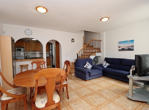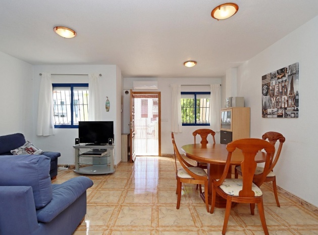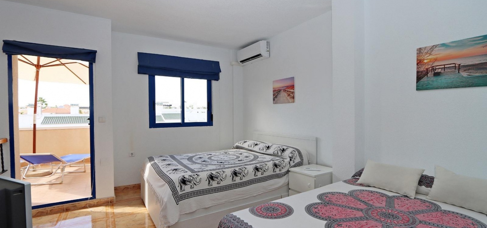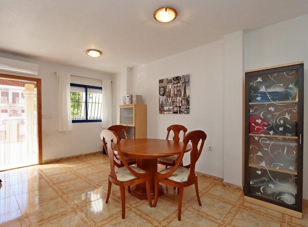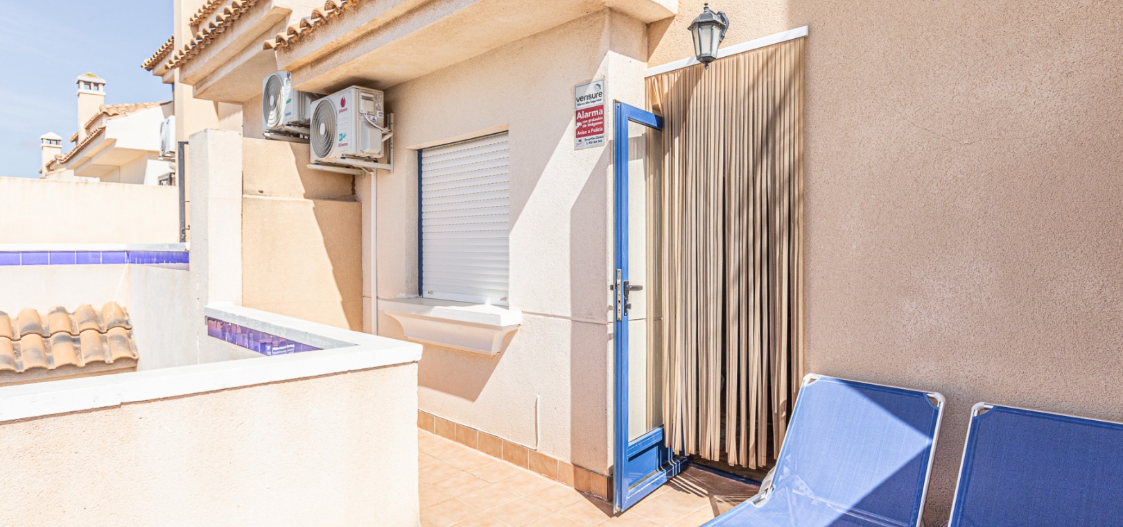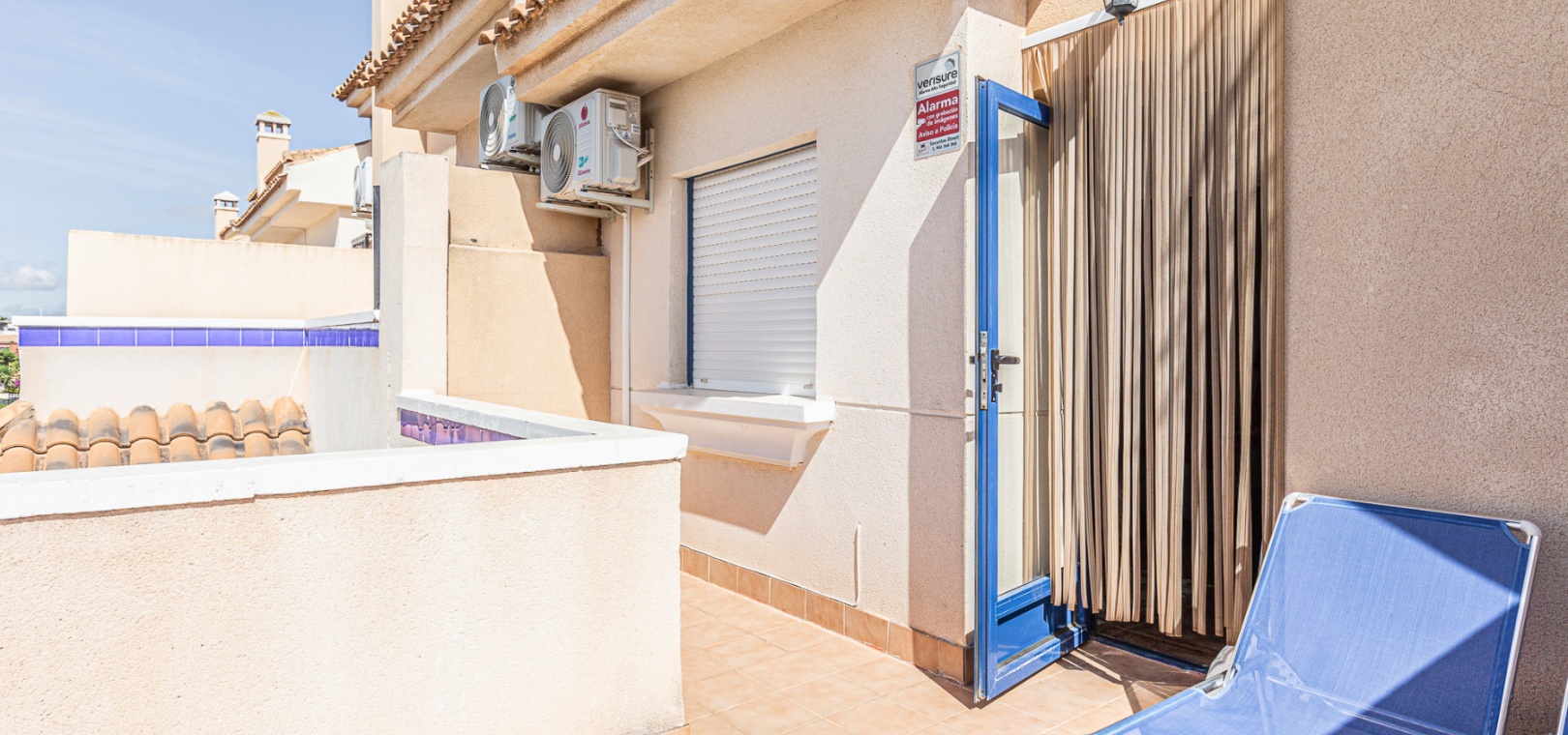 Ausgezeichnete Lage für dieses etablierte Stadthaus, nur 800 m vom Strand La Zenia entfernt. Die Immobilie bietet 3 Schlafzimmer, ein Hauptschlafzimmer mit 5 m² großem Balkon und Sonnenterrasse, 2 Badezimmer (eines im Erdgeschoss mit Dusche und WC und eines im ersten Stock mit Vollbad), ein Wohn-/Esszimmer und eine teilweise separate Küche mit angrenzendem Hauswirtschafts-/Waschraum. Der Außenbereich bietet einen pflegeleichten Garten/eine Terrasse mit Parkplatz auf dem Gelände und ein Solarium für ganzjährige Sonne. Das Haus wird teilmöbliert und schlüsselfertig mit Extras wie Klimaanlage, Haushaltsgeräten, Sicherheitsrollläden und -gittern verkauft. Die Anlage mit Pool für Erwachsene und Kinder liegt nur einen Steinwurf von lokalen Bars, Restaurants, Supermärkten, einem Taxistand, dem Einkaufszentrum La Zenia Boulevard und natürlich dem mit der Blauen Flagge ausgezeichneten Strand La Zenia entfernt. Die AP7 und die Küstenstraße N332 zu den Flughäfen Murcia und Alicante sind leicht zu erreichen. Ein perfektes Einfamilienhaus oder eine Investitionsmöglichkeit zur Miete.