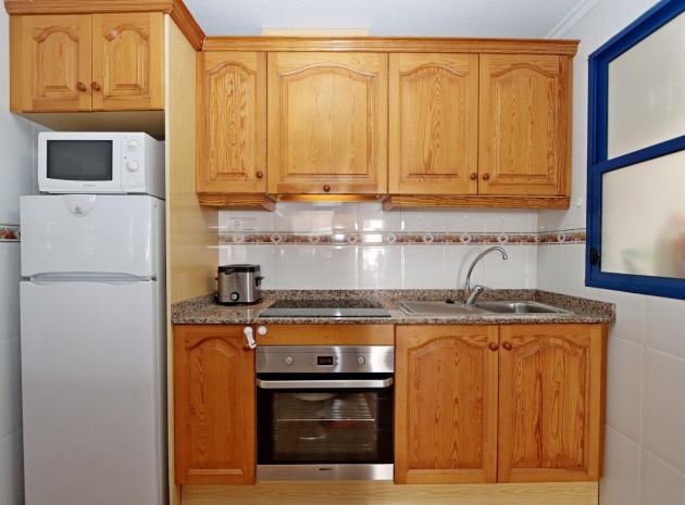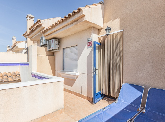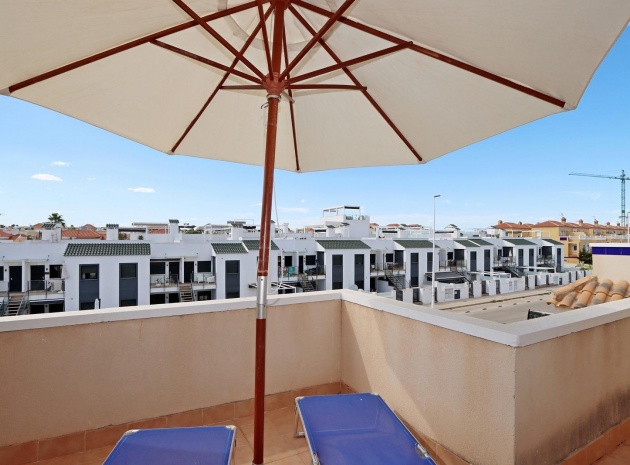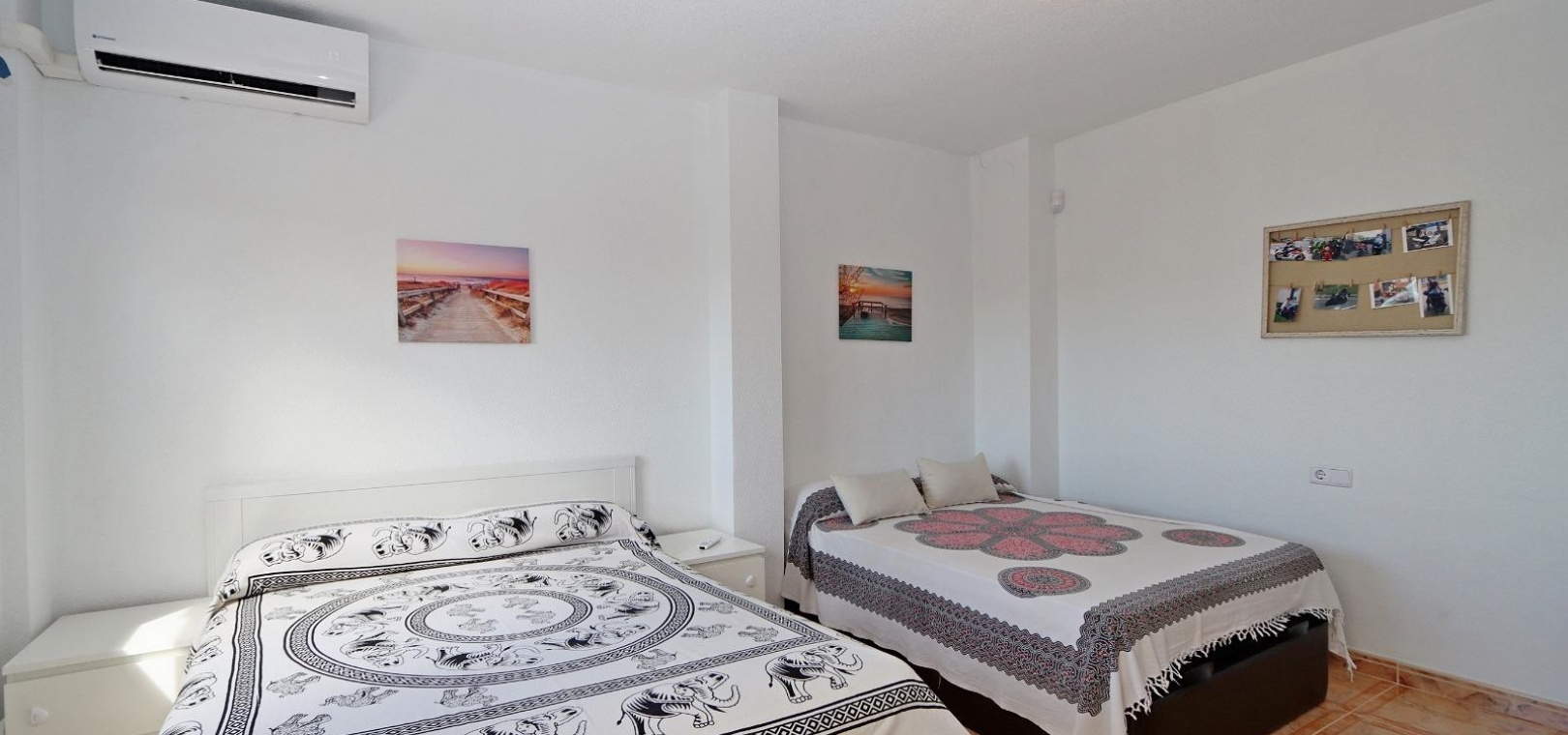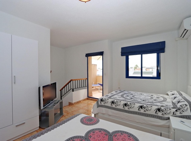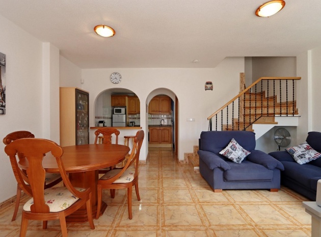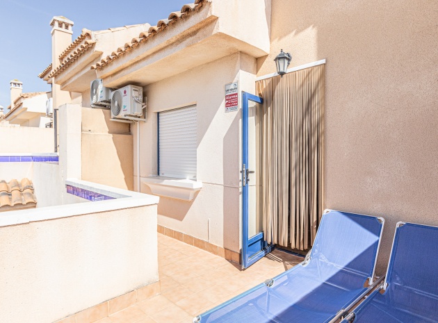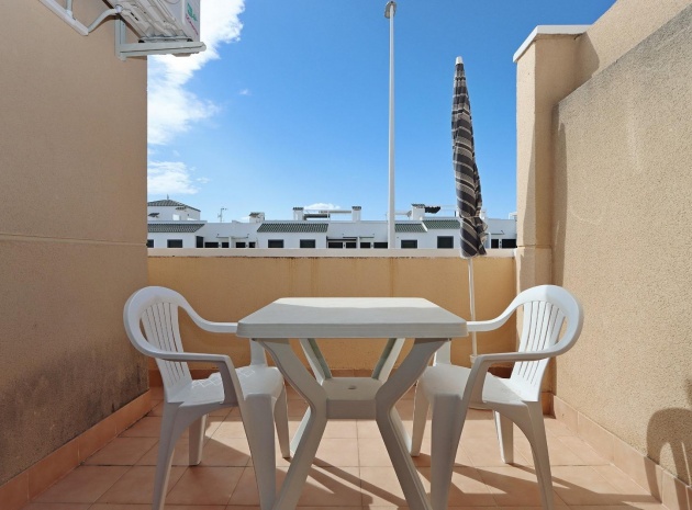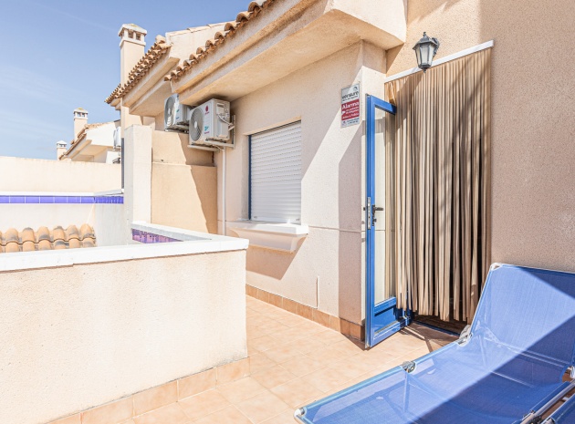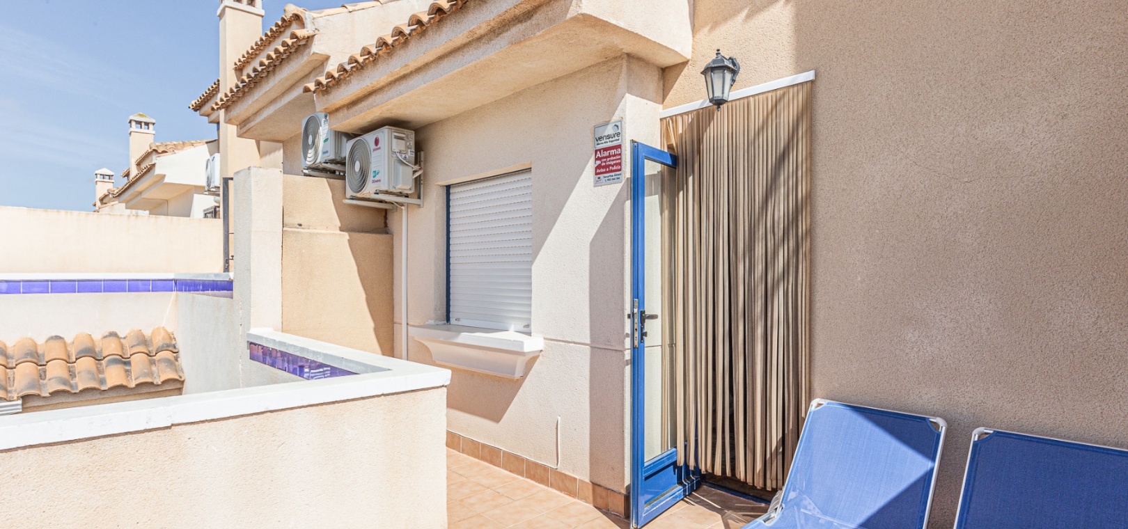 Ausgezeichnete Lage für dieses etablierte Stadthaus, nur 800 m vom Strand La Zenia entfernt. Die Immobilie bietet 3 Schlafzimmer, ein Hauptschlafzimmer mit 5 m² großem Balkon und Sonnenterrasse, 2 Badezimmer (eines im Erdgeschoss mit Dusche und WC und eines im ersten Stock mit Vollbad), ein Wohn-/Esszimmer und eine teilweise separate Küche mit angrenzendem Hauswirtschafts-/Waschraum. Der Außenbereich bietet einen pflegeleichten Garten/eine Terrasse mit Parkplatz auf dem Gelände und ein Solarium für ganzjährige Sonne. Das Haus wird teilmöbliert und schlüsselfertig mit Extras wie Klimaanlage, Haushaltsgeräten, Sicherheitsrollläden und -gittern verkauft. Die Anlage mit Pool für Erwachsene und Kinder liegt nur einen Steinwurf von lokalen Bars, Restaurants, Supermärkten, einem Taxistand, dem Einkaufszentrum La Zenia Boulevard und natürlich dem mit der Blauen Flagge ausgezeichneten Strand La Zenia entfernt. Die AP7 und die Küstenstraße N332 zu den Flughäfen Murcia und Alicante sind leicht zu erreichen. Ein perfektes Einfamilienhaus oder eine Investitionsmöglichkeit zur Miete.