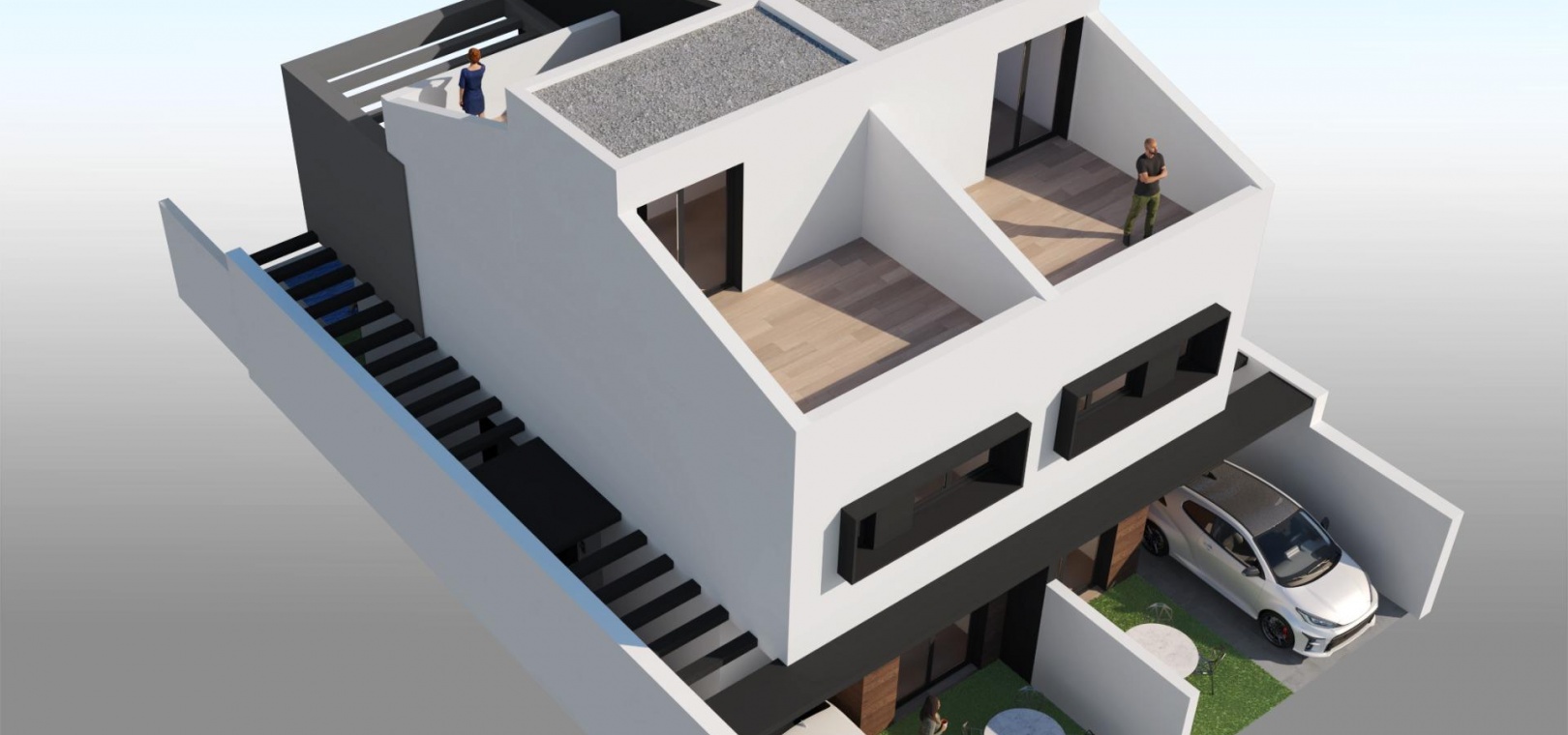 Jede Villa ist sorgfältig auf zwei Etagen verteilt und verfügt über eine Dachterrasse, die reichlich Platz für modernes Wohnen bietet. Die Immobilien verfügen über: