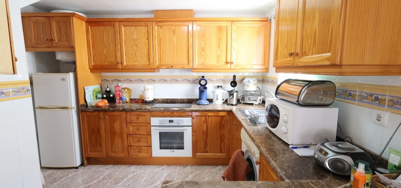 Wohn-/Esszimmer mit Klimaanlage (warm und kalt), offene, voll ausgestattete Küche, 2 Doppelzimmer, 1 Duschraum, Balkon, privates Solarium auf dem Dach, Gemeinschaftspool und vieles mehr.