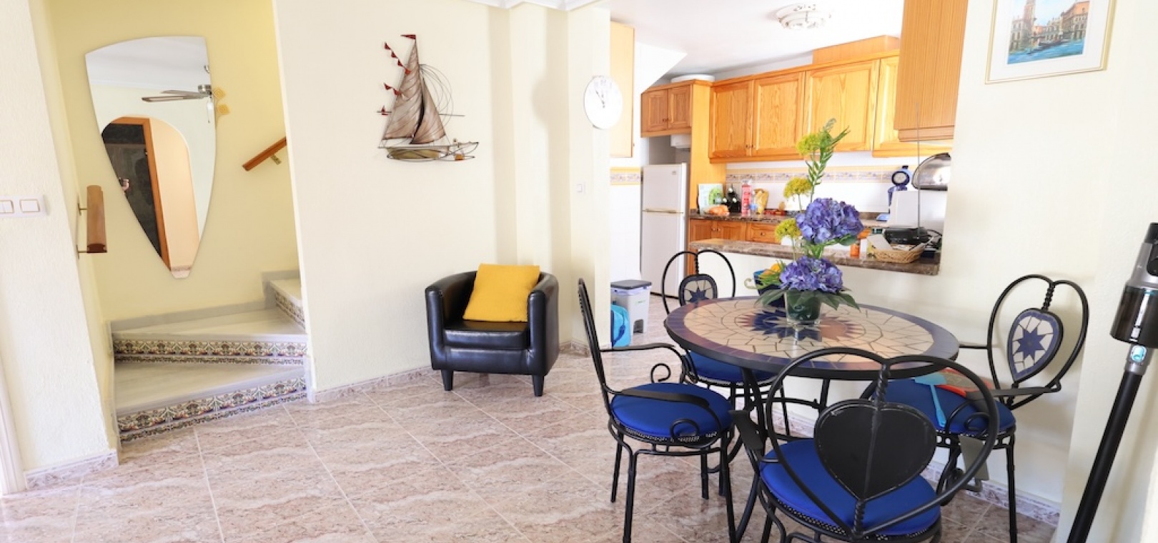 Dieses Anwesen liegt nur einen kurzen Spaziergang von lokalen Bars, Geschäften und Restaurants entfernt. Die Strände von Golden Orihuela Costa sind nur 5 Autominuten entfernt, oder Sie können den örtlichen Busservice nutzen. Vier Golfplätze sind alle innerhalb von 5 Autominuten erreichbar. Der Flughafen Murcia Corvera ist 35 Autominuten und der Flughafen Alicante 40 Autominuten entfernt.