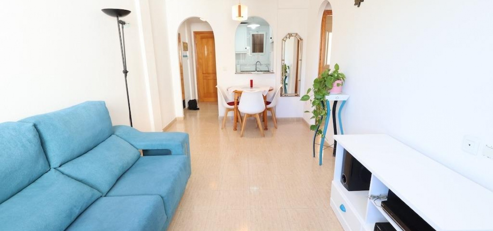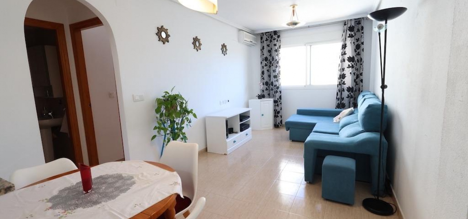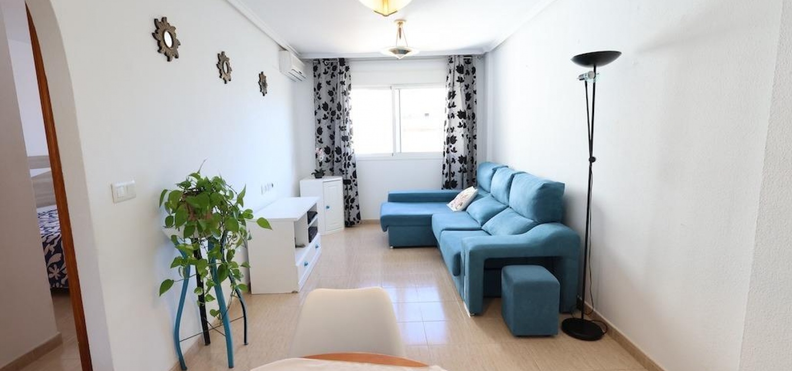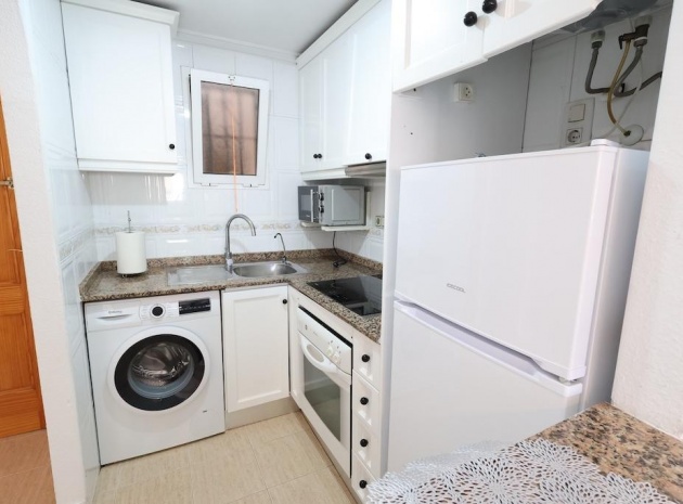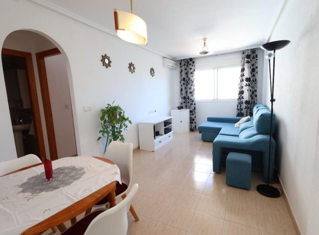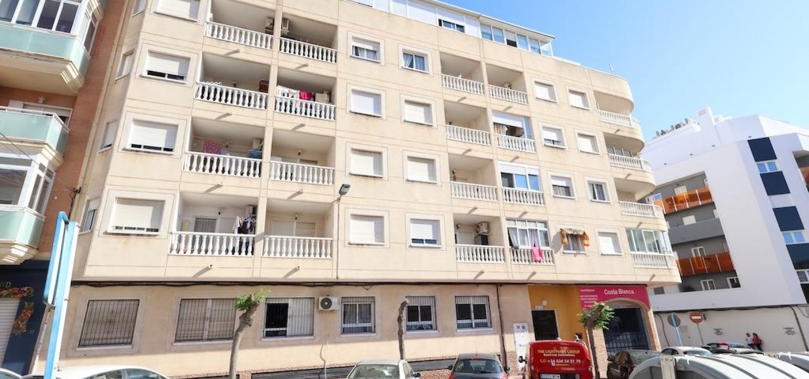 Torrevieja – Gemütliche Wohnung mit Gemeinschaftspool, Garage und Abstellraum. Wir präsentieren diese helle Wohnung im vierten Stock in zentraler Lage von Torrevieja, ideal sowohl als Dauerwohnsitz als auch als Investition. Die 57 m² große Wohnfläche verteilen sich auf zwei Schlafzimmer, ein Badezimmer, ein Wohn-Esszimmer und eine voll ausgestattete offene Küche. Die Wohnung wird möbliert und mit Klimaanlage verkauft und ist bezugsfertig. Das Gebäude verfügt über einen Gemeinschaftspool auf dem Dach sowie eine große Gemeinschaftsterrasse mit herrlichem Panoramablick auf die Stadt. Ein Parkplatz und ein Abstellraum sind im Preis inbegriffen – ein zusätzlicher Pluspunkt in dieser Gegend. Eine hervorragende Gelegenheit, nur wenige Minuten vom Zentrum und allen Dienstleistungen entfernt.