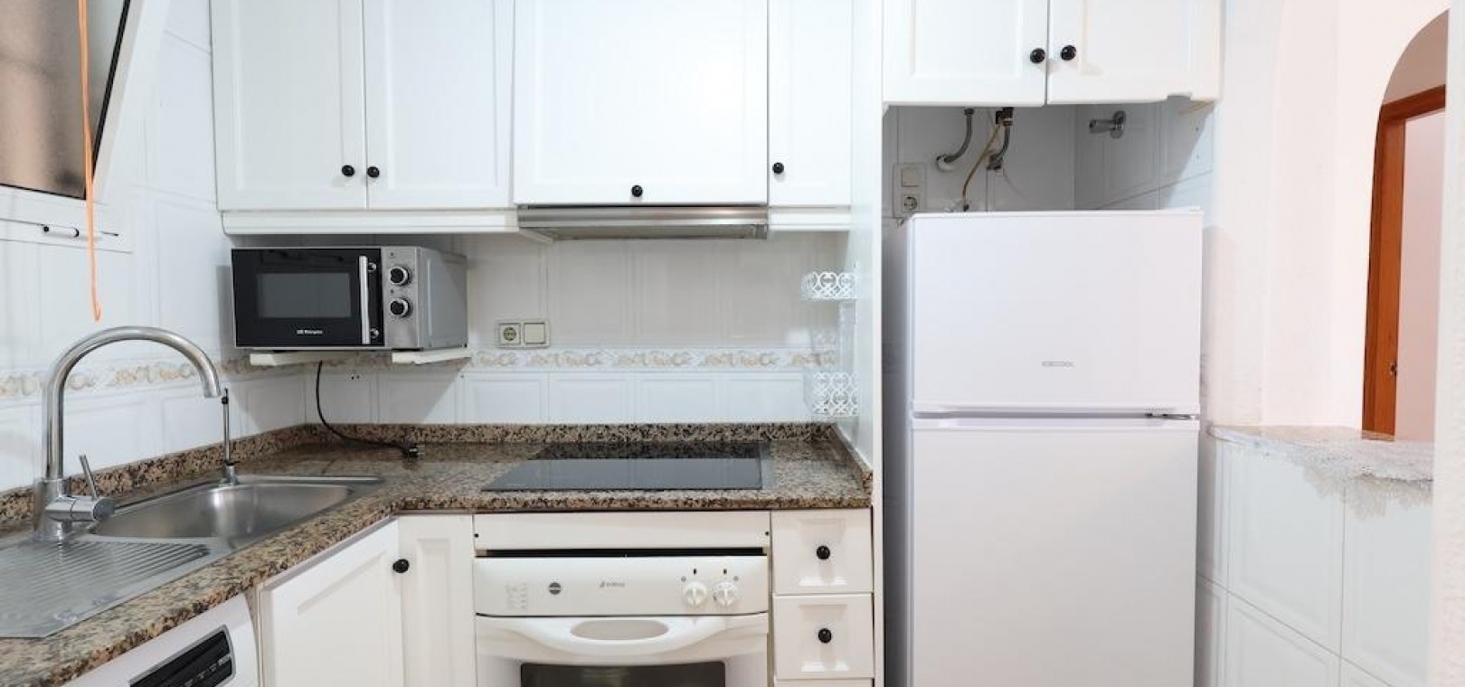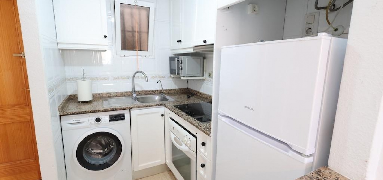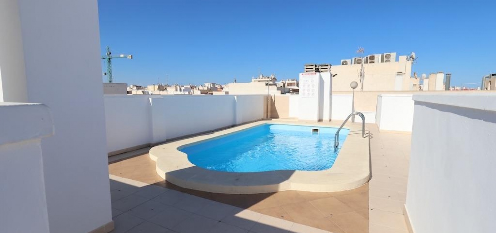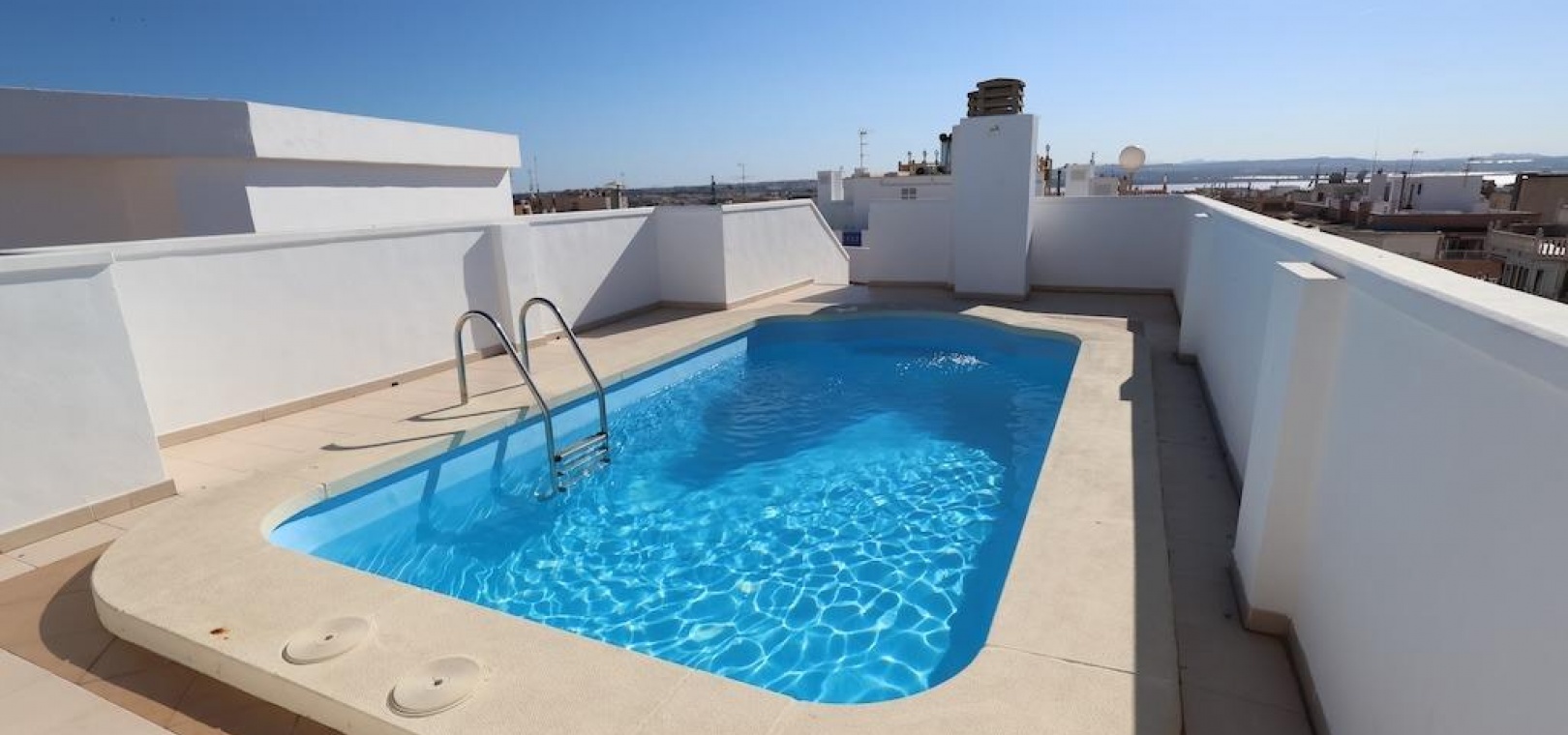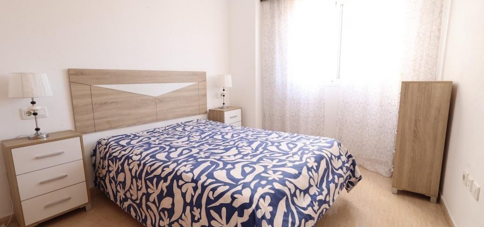 Torrevieja – Gemütliche Wohnung mit Gemeinschaftspool, Garage und Abstellraum. Wir präsentieren diese helle Wohnung im vierten Stock in zentraler Lage von Torrevieja, ideal sowohl als Dauerwohnsitz als auch als Investition. Die 57 m² große Wohnfläche verteilen sich auf zwei Schlafzimmer, ein Badezimmer, ein Wohn-Esszimmer und eine voll ausgestattete offene Küche. Die Wohnung wird möbliert und mit Klimaanlage verkauft und ist bezugsfertig. Das Gebäude verfügt über einen Gemeinschaftspool auf dem Dach sowie eine große Gemeinschaftsterrasse mit herrlichem Panoramablick auf die Stadt. Ein Parkplatz und ein Abstellraum sind im Preis inbegriffen – ein zusätzlicher Pluspunkt in dieser Gegend. Eine hervorragende Gelegenheit, nur wenige Minuten vom Zentrum und allen Dienstleistungen entfernt.