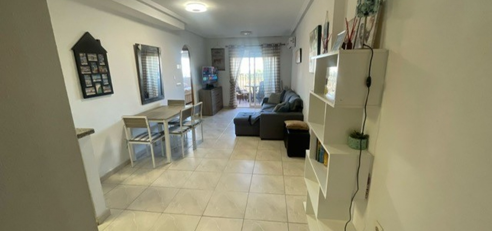 Wohn-/Esszimmer mit Klimaanlage (warm und kalt), offene Küche, 2 Doppelschlafzimmer, beide mit Einbauschränken, 1 Familienbadezimmer, Balkon, großer Gemeinschaftspool, Aufzug, sichere Wohnanlage mit Parkplatz abseits der Straße und vieles mehr.