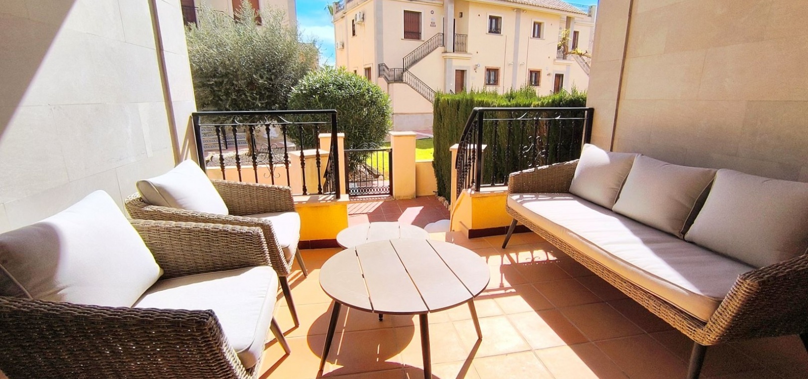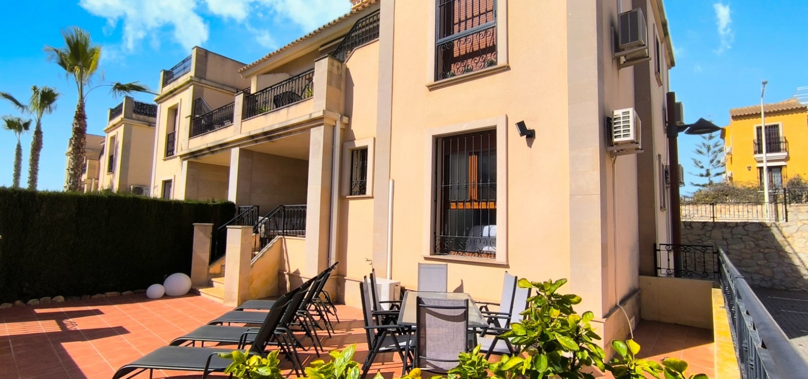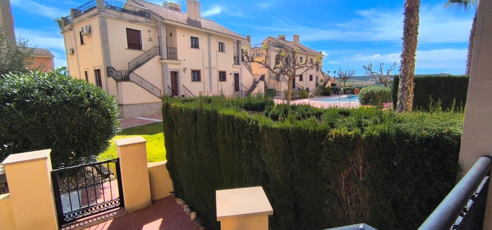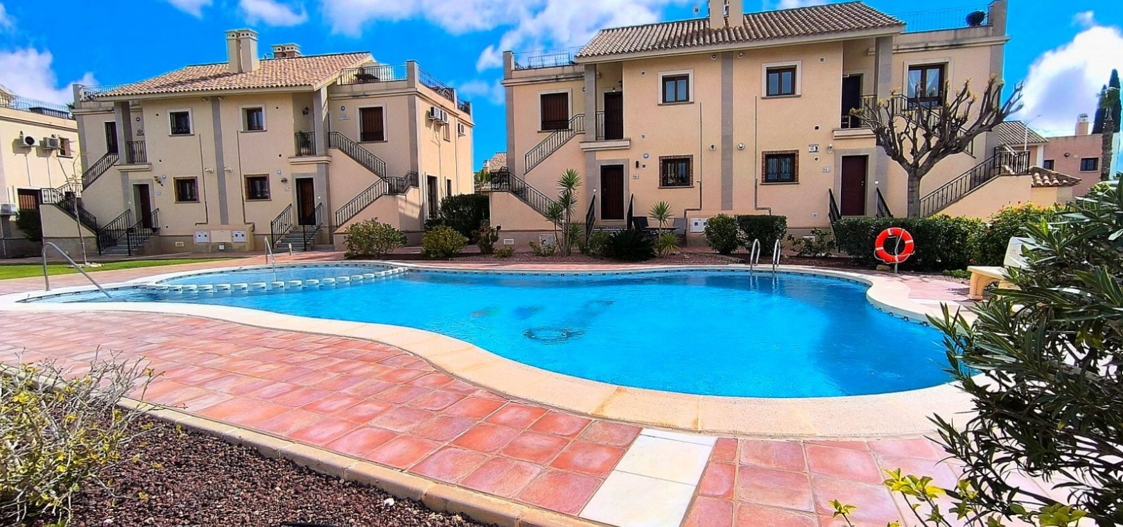**Charmante Erdgeschosswohnung im La Finca Golf Resort, Algorfa** Entdecken Sie die perfekte Mischung aus Luxus und Ruhe mit dieser exquisiten Erdgeschosswohnung im renommierten 5-Sterne-Golfresort La Finca in Algorfa. Eingebettet in atemberaubende Natur und majestätische Berge ist dieses Anwesen Teil einer exklusiven Anlage mit nur 25 Häusern. Genießen Sie den ruhigen Lebensstil mit Zugang zu einem makellosen Gemeinschaftspool und wunderschön gepflegten Gärten. Im Inneren erwartet Sie ein geräumiges Wohnzimmer mit integriertem Essbereich – ideal für geselliges Beisammensein. Die gut ausgestattete Küche mit modernen Unter- und Oberschränken sowie hochwertigen Geräten erfüllt alle Ihre kulinarischen Wünsche. Die Wohnung bietet zwei Doppelschlafzimmer mit Einbauschränken, während die Master-Suite über ein eigenes Bad verfügt. Ein zweites gefliestes Badezimmer bietet eine Dusche über der Badewanne für zusätzlichen Komfort. Genießen Sie den ruhigen Außenbereich mit Blick auf die üppigen Gemeinschaftsgärten und den atemberaubenden Pool – ideal zum Entspannen. Dank der Nähe zu Bars, Restaurants und einem Supermarkt ist alles, was Sie brauchen, bequem zu erreichen. Die Lage ist hervorragend erreichbar: Die Autobahn AP7 ist nur 10 Minuten entfernt, der Flughafen Alicante ist direkt erreichbar und die mit der Blauen Flagge ausgezeichneten Strände sind nur 15-20 Autominuten entfernt. Diese 2007 erbaute und in ausgezeichnetem Zustand befindliche Südwohnung verfügt über einen Parkplatz und ist mit Klimaanlage und Wärmepumpe für ganzjährigen Komfort ausgestattet. Mit der Energieeffizienzklasse E verbindet dieses Haus Komfort mit Effizienz. Lassen Sie sich diese Gelegenheit nicht entgehen und erwerben Sie ein Stück Paradies in einem der begehrtesten Golfresorts Spaniens!
