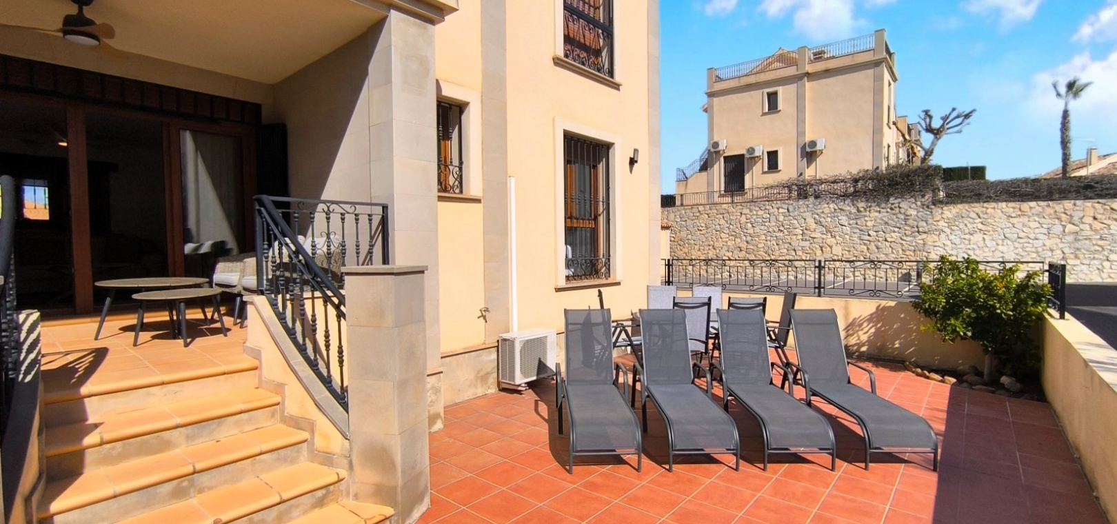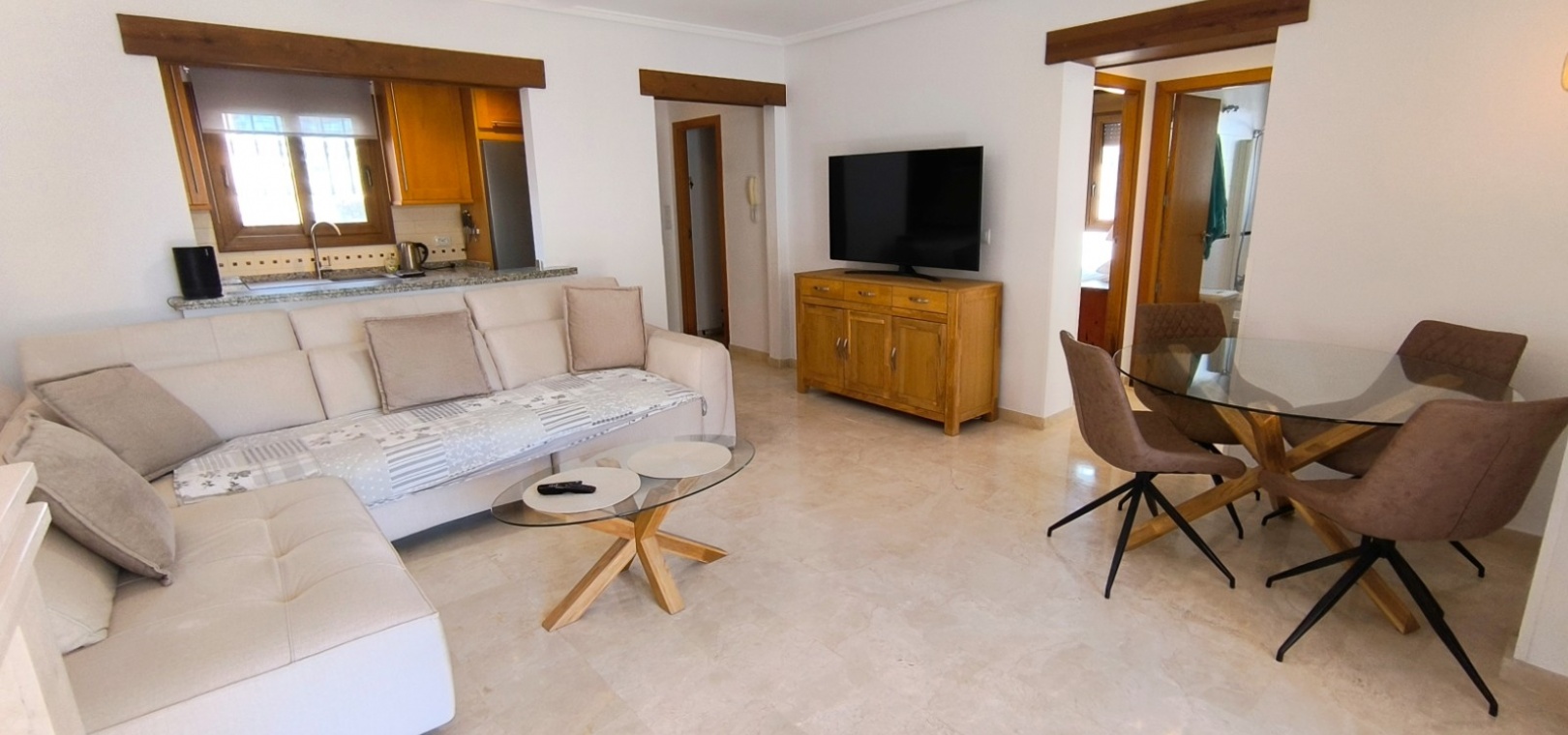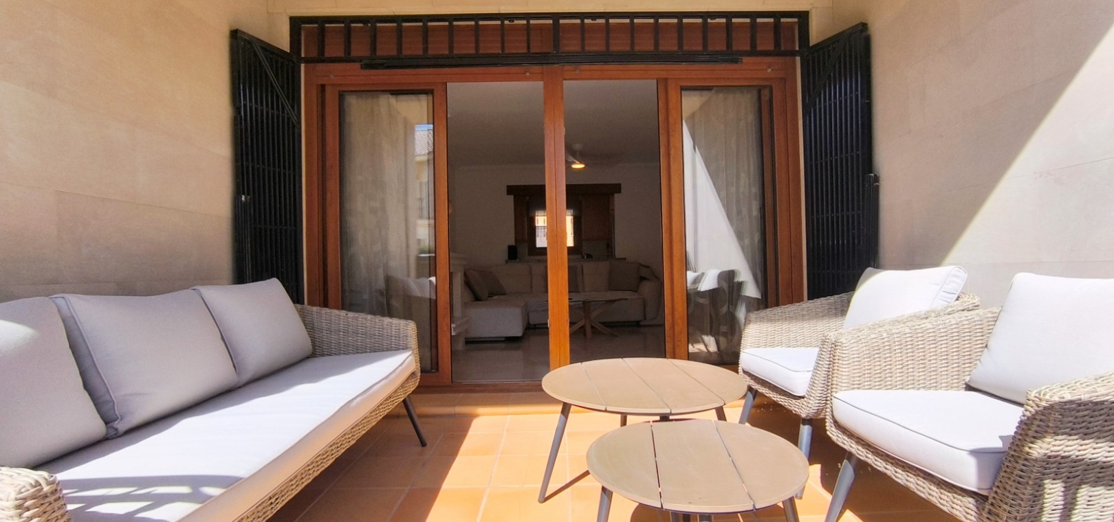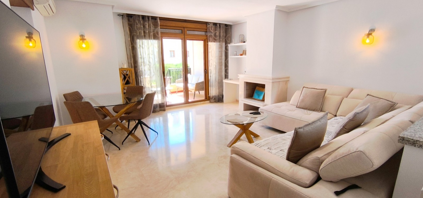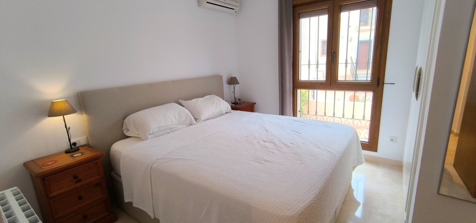 **Charmante Erdgeschosswohnung im La Finca Golf Resort, Algorfa** Entdecken Sie die perfekte Mischung aus Luxus und Ruhe mit dieser exquisiten Erdgeschosswohnung im renommierten 5-Sterne-Golfresort La Finca in Algorfa. Eingebettet in atemberaubende Natur und majestätische Berge ist dieses Anwesen Teil einer exklusiven Anlage mit nur 25 Häusern. Genießen Sie den ruhigen Lebensstil mit Zugang zu einem makellosen Gemeinschaftspool und wunderschön gepflegten Gärten. Im Inneren erwartet Sie ein geräumiges Wohnzimmer mit integriertem Essbereich – ideal für geselliges Beisammensein. Die gut ausgestattete Küche mit modernen Unter- und Oberschränken sowie hochwertigen Geräten erfüllt alle Ihre kulinarischen Wünsche. Die Wohnung bietet zwei Doppelschlafzimmer mit Einbauschränken, während die Master-Suite über ein eigenes Bad verfügt. Ein zweites gefliestes Badezimmer bietet eine Dusche über der Badewanne für zusätzlichen Komfort. Genießen Sie den ruhigen Außenbereich mit Blick auf die üppigen Gemeinschaftsgärten und den atemberaubenden Pool – ideal zum Entspannen. Dank der Nähe zu Bars, Restaurants und einem Supermarkt ist alles, was Sie brauchen, bequem zu erreichen. Die Lage ist hervorragend erreichbar: Die Autobahn AP7 ist nur 10 Minuten entfernt, der Flughafen Alicante ist direkt erreichbar und die mit der Blauen Flagge ausgezeichneten Strände sind nur 15-20 Autominuten entfernt. Diese 2007 erbaute und in ausgezeichnetem Zustand befindliche Südwohnung verfügt über einen Parkplatz und ist mit Klimaanlage und Wärmepumpe für ganzjährigen Komfort ausgestattet. Mit der Energieeffizienzklasse E verbindet dieses Haus Komfort mit Effizienz. Lassen Sie sich diese Gelegenheit nicht entgehen und erwerben Sie ein Stück Paradies in einem der begehrtesten Golfresorts Spaniens!
