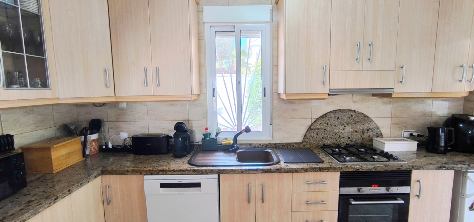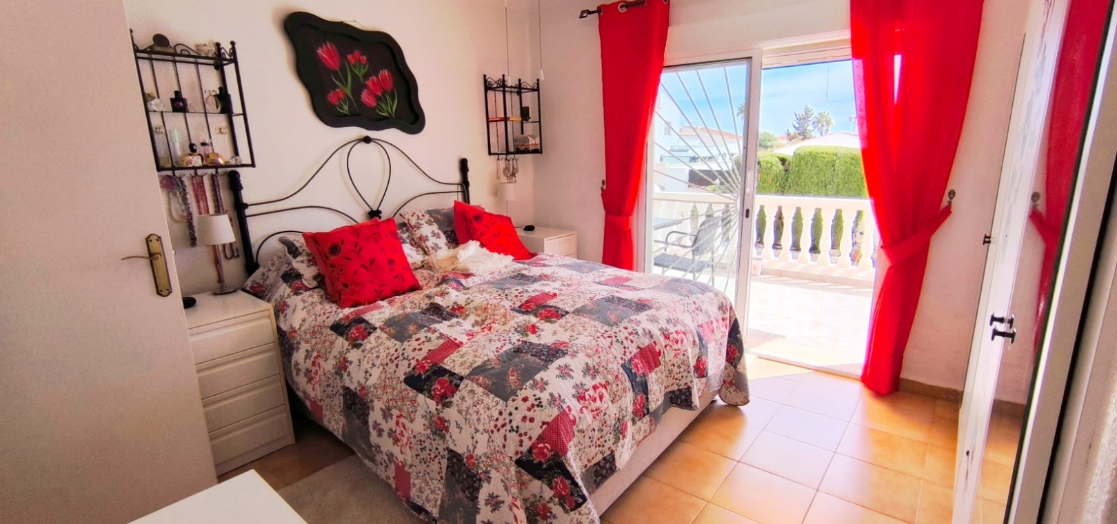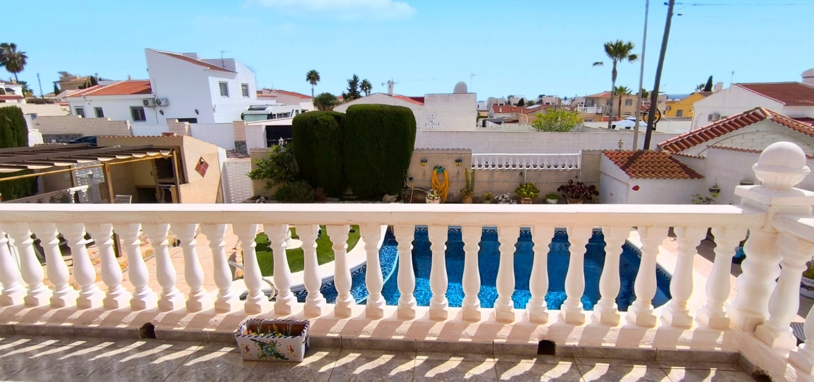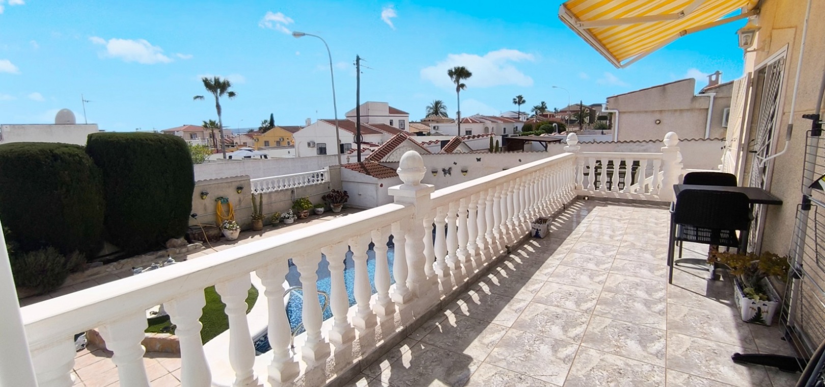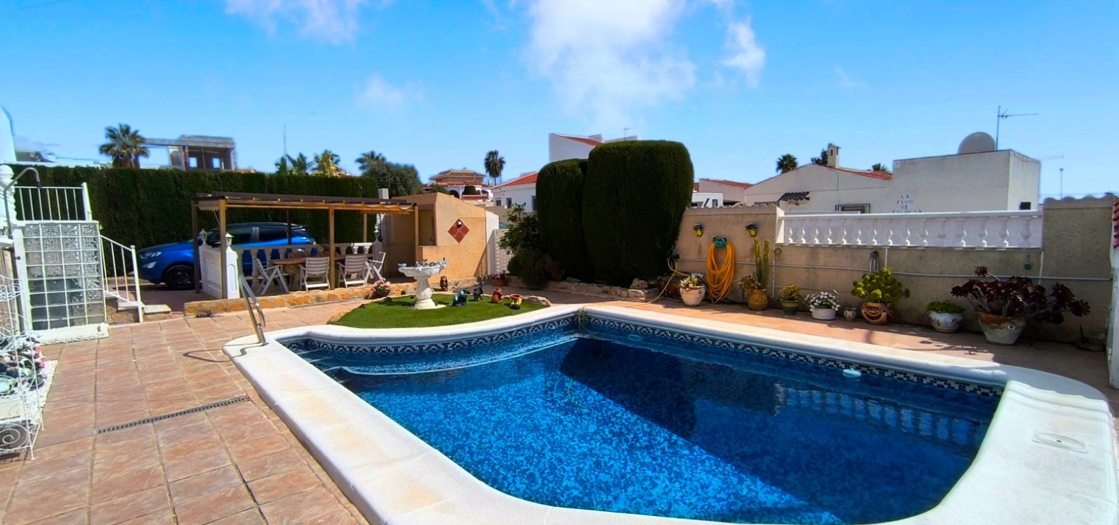 Suchen Sie ein geräumiges Familienhaus in einer ruhigen Wohngegend? Dann werfen Sie einen Blick auf diese traditionell spanische freistehende Villa in Ciudad Quesada! Es wird als Drei-Zimmer-Haus präsentiert, könnte aber leicht in ein Vier-Zimmer-Haus umgewandelt werden, das viel Platz für die ganze Familie bietet! Das Anwesen liegt nur einen kurzen Spaziergang von allen Einrichtungen in Ciudad Quesada entfernt, darunter eine Reihe von Bars, Restaurants, Supermärkten und vielem mehr! Betreten Sie das private, nach Süden ausgerichtete Grundstück und Sie werden sofort von einem schönen, privaten 5x4 Meter großen Pool begrüßt, der an sonnigen Sommertagen ideal zum Abkühlen ist. Rund um den Pool gibt es viel Platz zum Sitzen und Entspannen, zum Genießen der gepflegten Gärten und zur Nutzung der Sommerküche mit eingebautem Grill und speziell angefertigtem Tisch. Eine Auffahrt mit elektrischem Tor bietet private Parkplätze abseits der Straße für mehrere Fahrzeuge. Über wenige Stufen gelangen Sie zum Hauseingang. Über eine sonnige Terrasse mit Glasvorhängen, die geöffnet und geschlossen werden können, gelangen Sie in den Raum. Dieser Raum ist ideal für den Winter, da er den ganzen Tag Sonne hat und angenehm warm bleibt. Vom Wintergarten aus gelangt man in ein geräumiges Wohnzimmer mit einem gemütlichen Eckkamin und Klimaanlage. Die voll ausgestattete Küche verfügt über mehrere Ober- und Unterschränke, einen eingebauten Backofen/Kochfeld, eine Dunstabzugshaube und einen freistehenden Geschirrspüler. Angrenzend an die Küche befindet sich ein großer Hauswirtschaftsraum mit Speisekammer und Anschlussmöglichkeiten für Waschmaschine und Trockner sowie ein amerikanischer Kühl-Gefrierschrank mit gefiltertem Wasser. Eine Treppe führt zum Garten und zur Auffahrt. Ein innerer Flur führt vom Wohnzimmer zu den Schlafzimmern. Dort befinden sich zwei Master-Suiten, beide mit eigenem Bad. Die Master-Suite hat Zugang zu einer schönen, erhöhten Terrasse, ideal für den Morgenkaffee! Es gibt ein weiteres Doppelschlafzimmer mit Familienbad sowie ein potenzielles viertes Schlafzimmer – derzeit als offenes Büro genutzt. Alle Schlafzimmer verfügen über Einbauschränke und Klimaanlage. Das Anwesen befindet sich in einer erstklassigen Wohngegend, in der Nähe zahlreicher Annehmlichkeiten für die ganze Familie und verfügt über Extras wie Solarmodule zur Senkung der Stromrechnung, ein vollständiges Alarmsystem sowie Erdgas.