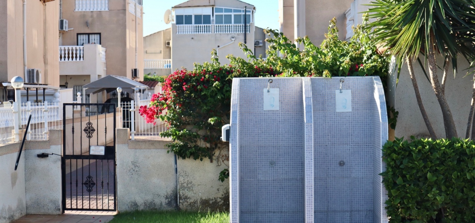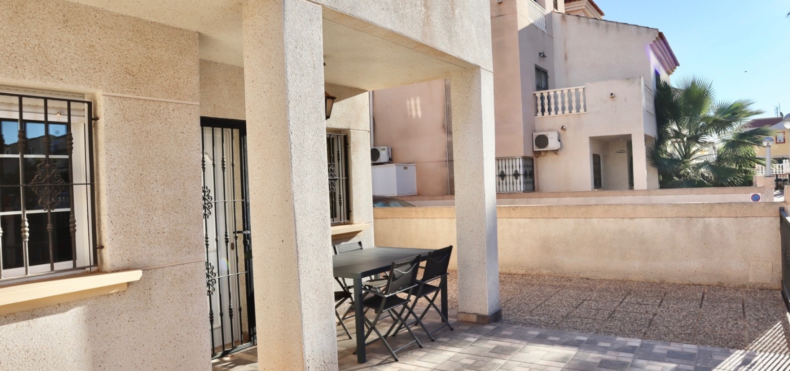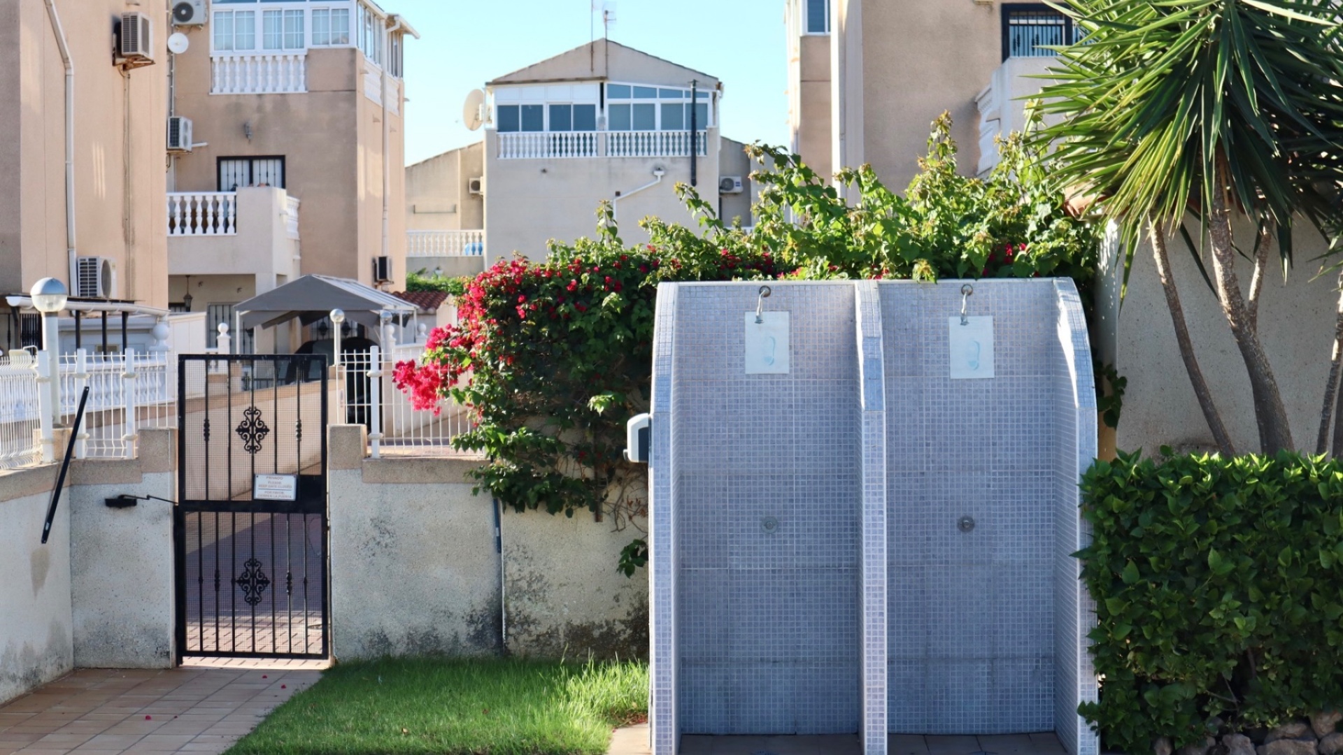 Beim Betreten des Anwesens begrüßt Sie ein gefliester Vorgarten mit privatem Parkplatz. Es gibt ausreichend Platz für einen Essbereich im Freien oder eine gemütliche Chill-out-Zone – ideal für unvergessliche Momente mit Familie und Freunden.