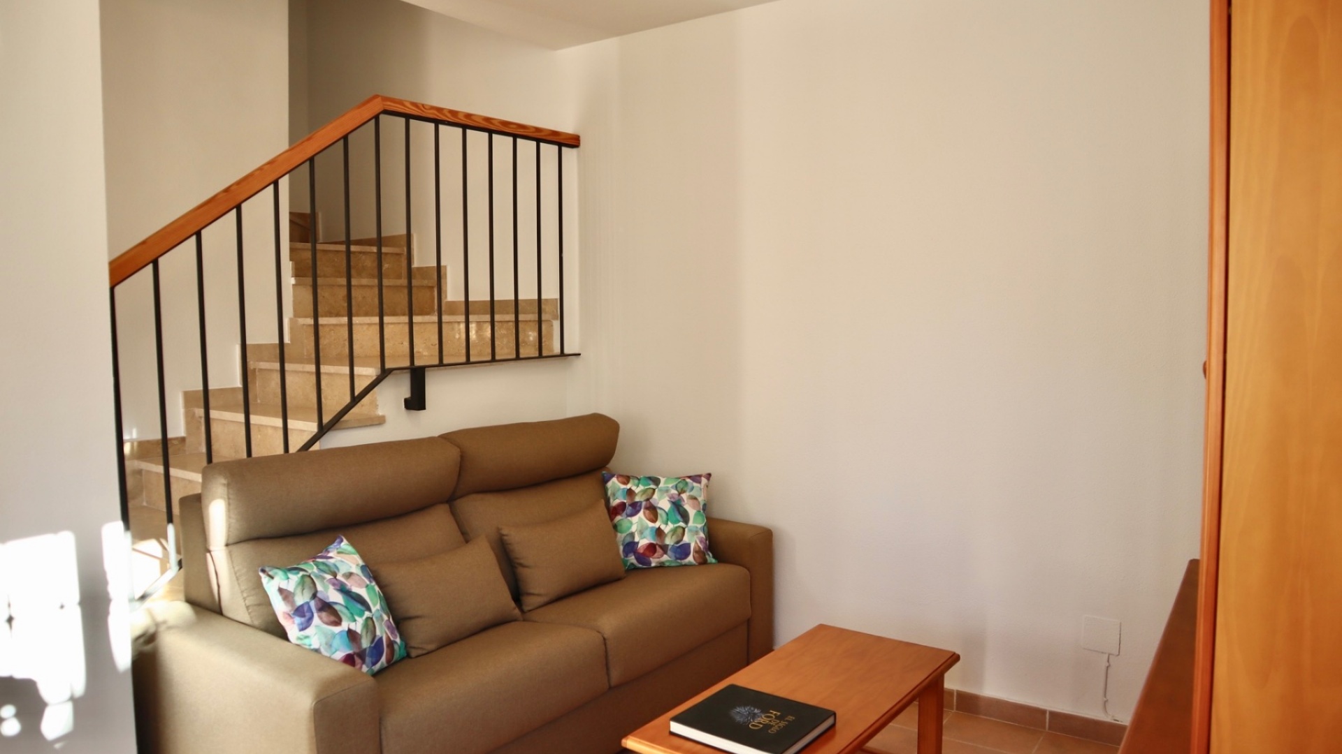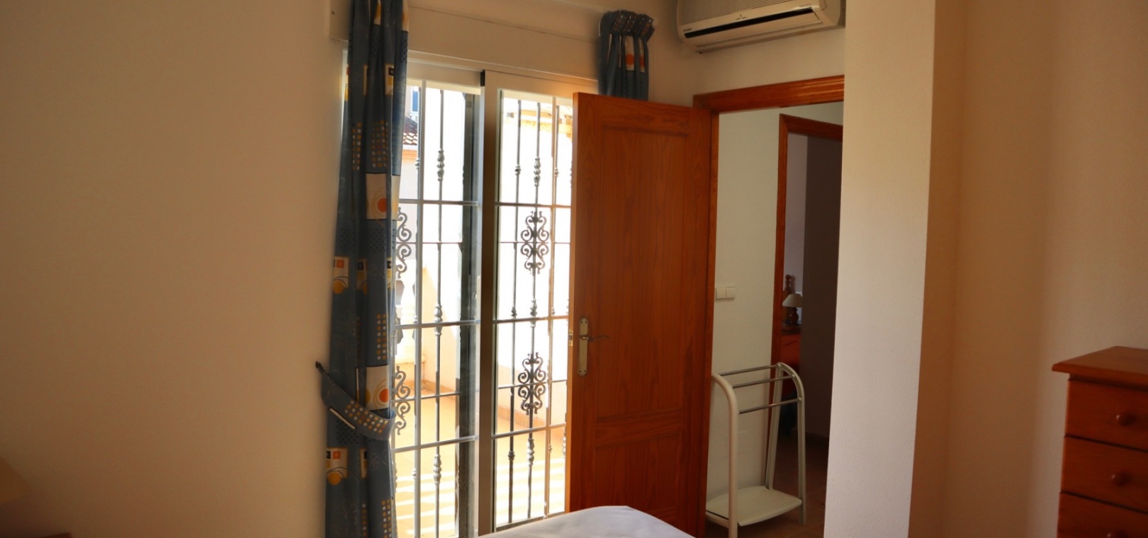 Im Obergeschoss befinden sich zwei Schlafzimmer mit Einbauschränken und Klimaanlage. Das Hauptschlafzimmer bietet zudem Zugang zu einer privaten Terrasse, ideal, um Ihren Morgenkaffee in der Sonne zu genießen. Auf dieser Ebene befindet sich auch ein komplettes Badezimmer.