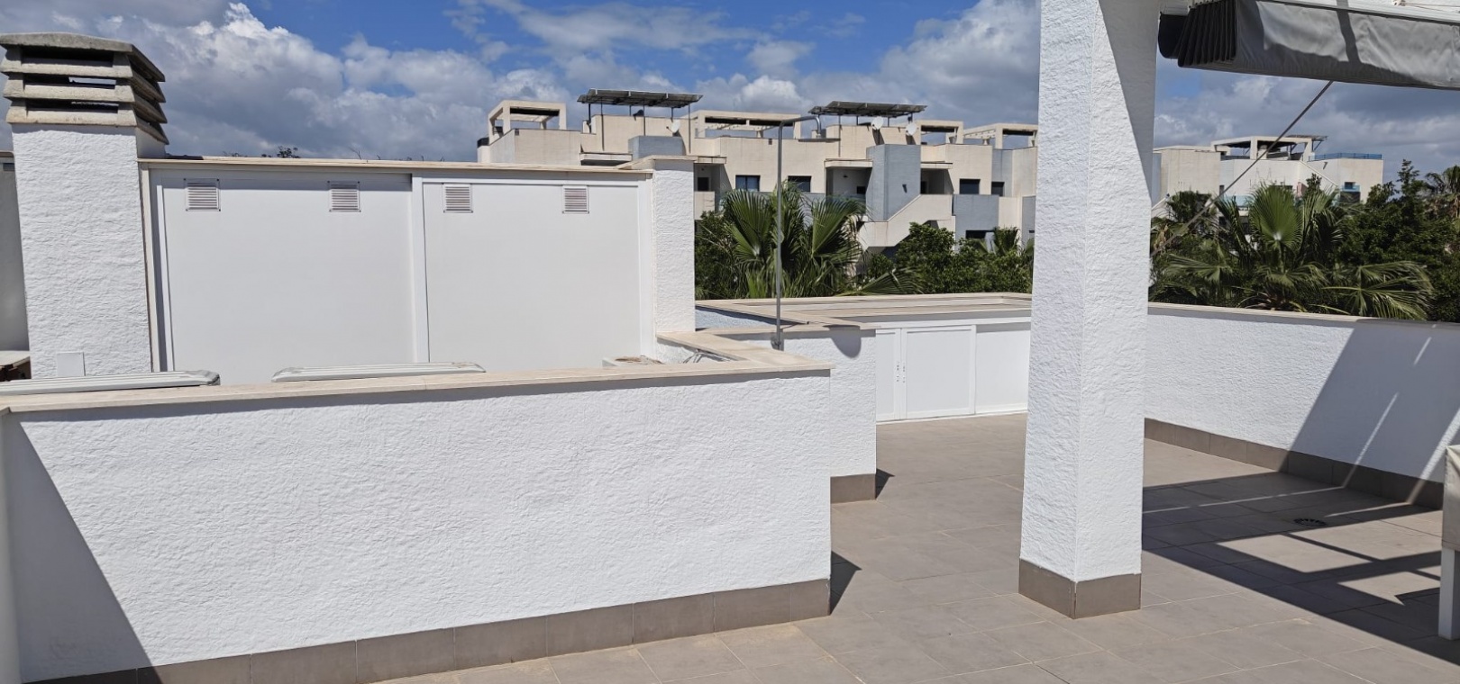 Entdecken Sie dieses wunderschöne Eck-Penthouse in der begehrten Wohngegend El Raso in Guardamar del Segura. Dieses bezugsfertige Objekt vereint Komfort, Luxus und eine erstklassige Lage – nur 10 Fahrradminuten vom Strand entfernt.