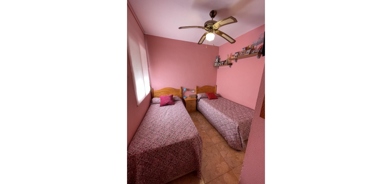 Wohn-/Esszimmer mit Klimaanlage (warm und kalt), separate Küche, 2 Doppelschlafzimmer, das Hauptschlafzimmer mit Einbauschränken, 1 Duschbad, Balkon mit Sonnenmarkise und privates Solarium auf dem Dach mit Abstellraum.