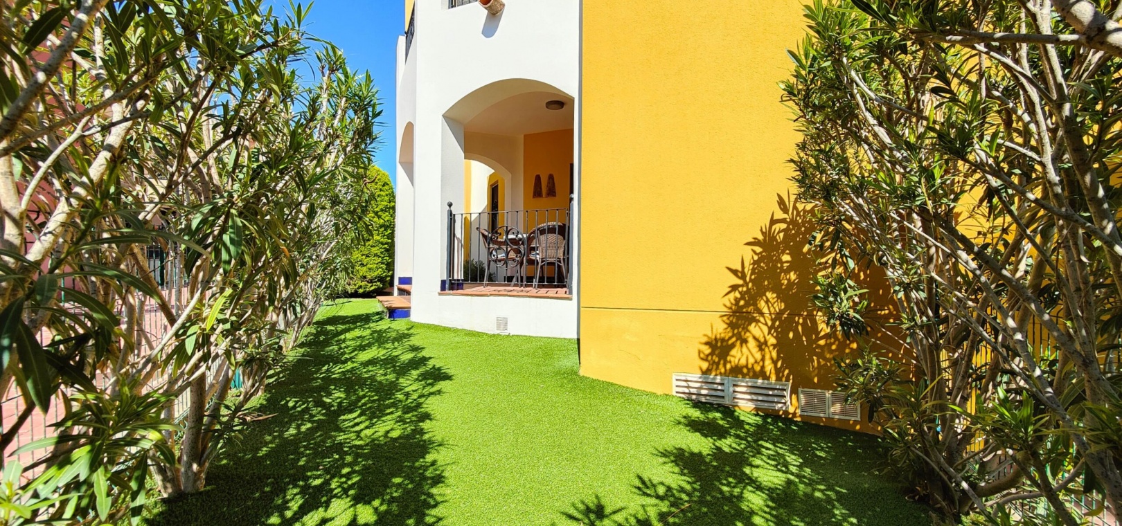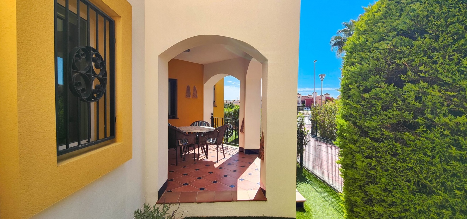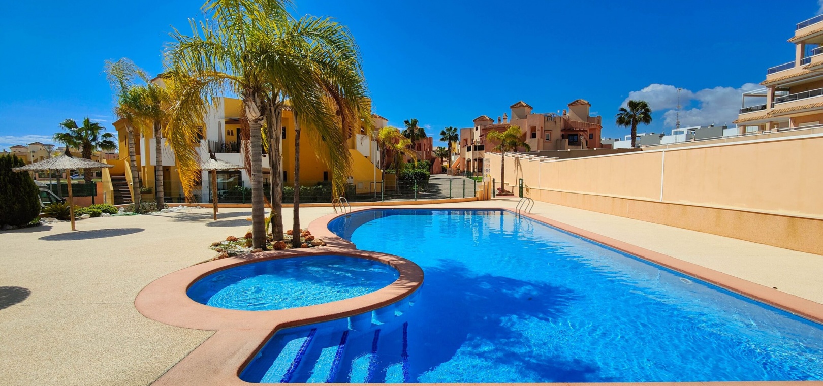 Einzigartiger renovierter Bungalow im Erdgeschoss zum Verkauf in Punta Prima – Torrevieja Dieser atemberaubende, nach Südosten ausgerichtete Erdgeschoss-Bungalow wurde komplett renoviert und besticht durch sein modernes und funktionales Design. Mit zwei Schlafzimmern, zwei Bädern (eines davon en-suite), einem geräumigen Wohn-Essbereich mit offener Küche, einer hinteren Terrasse und einem Abstellraum bietet dieses Haus Komfort und Stil. Dieses fantastische Anwesen bietet eine großzügige, überdachte Terrasse und einen kleinen Garten mit Kunstrasen – der perfekte Ort zum Entspannen im Freien. Darüber hinaus können Sie die Gemeinschaftseinrichtungen nutzen, darunter einen Swimmingpool und Parkplätze innerhalb der geschlossenen Anlage, was für Sicherheit und Ruhe sorgt. Nur wenige Schritte von Supermärkten, Bars, Restaurants und dem Meer entfernt bietet dieser Bungalow den Komfort, in einer ausgezeichneten Gegend zu wohnen, in der alle Dienstleistungen in Reichweite sind. Dieses komplett möblierte und bezugsfertige Haus ist die perfekte Wahl für alle, die Lebensqualität suchen!