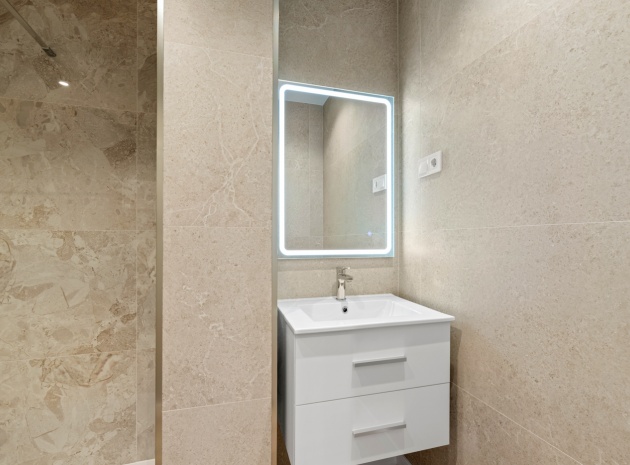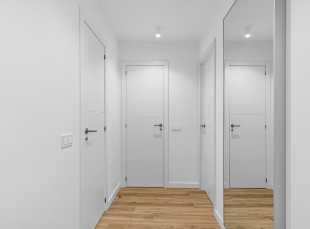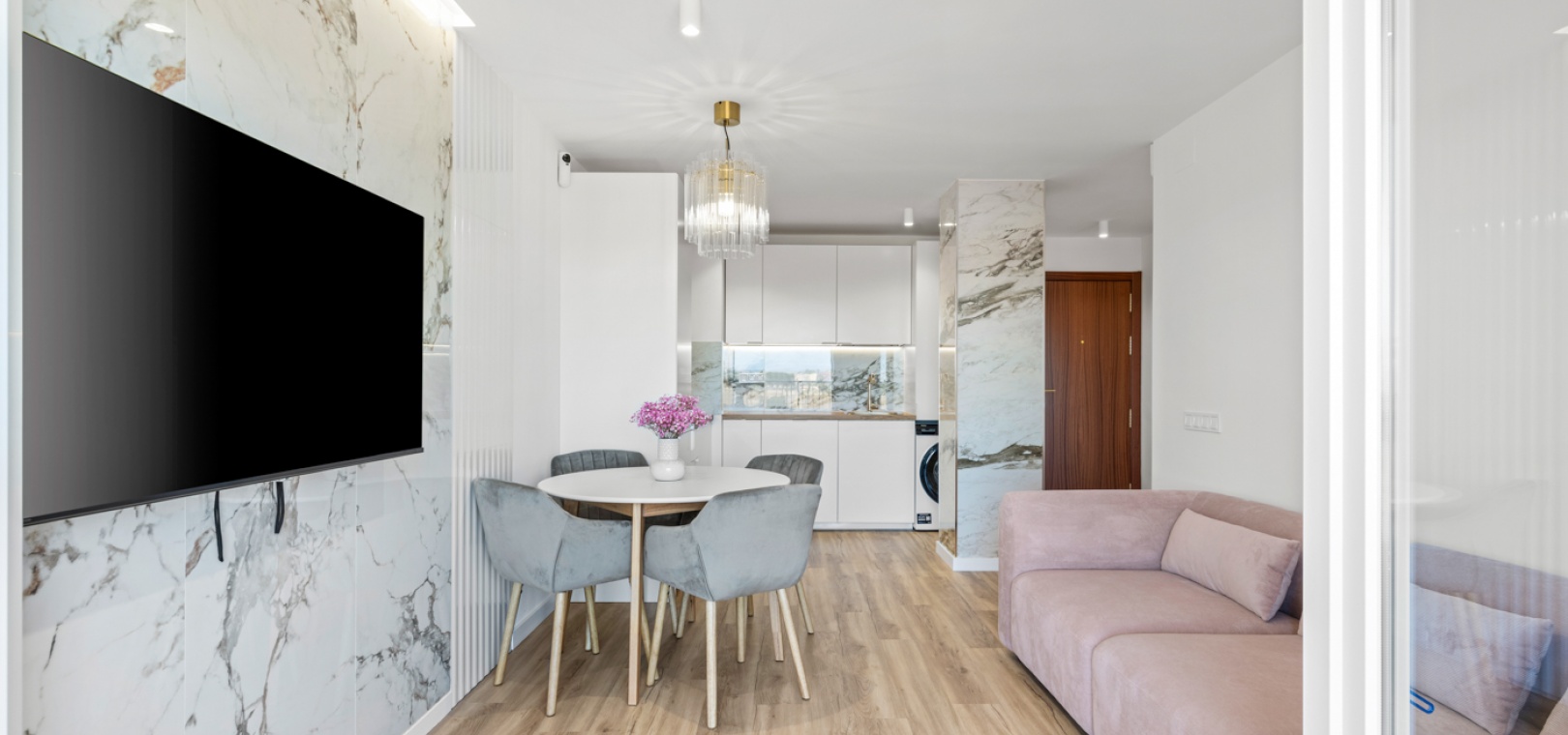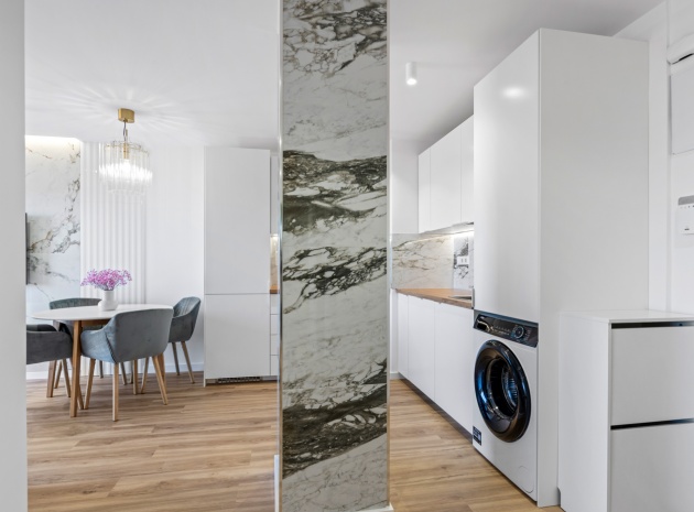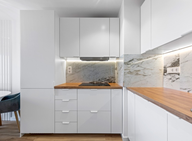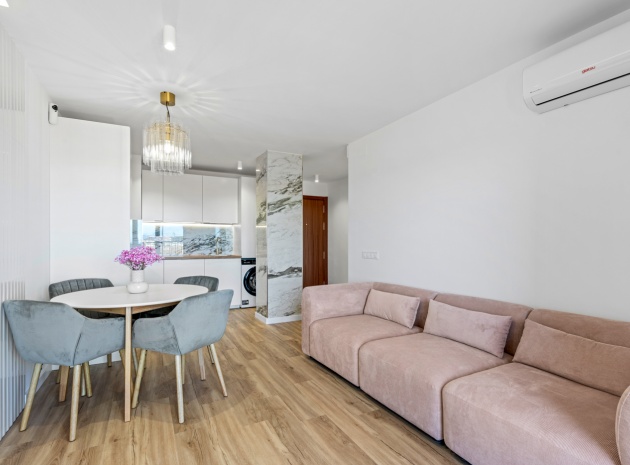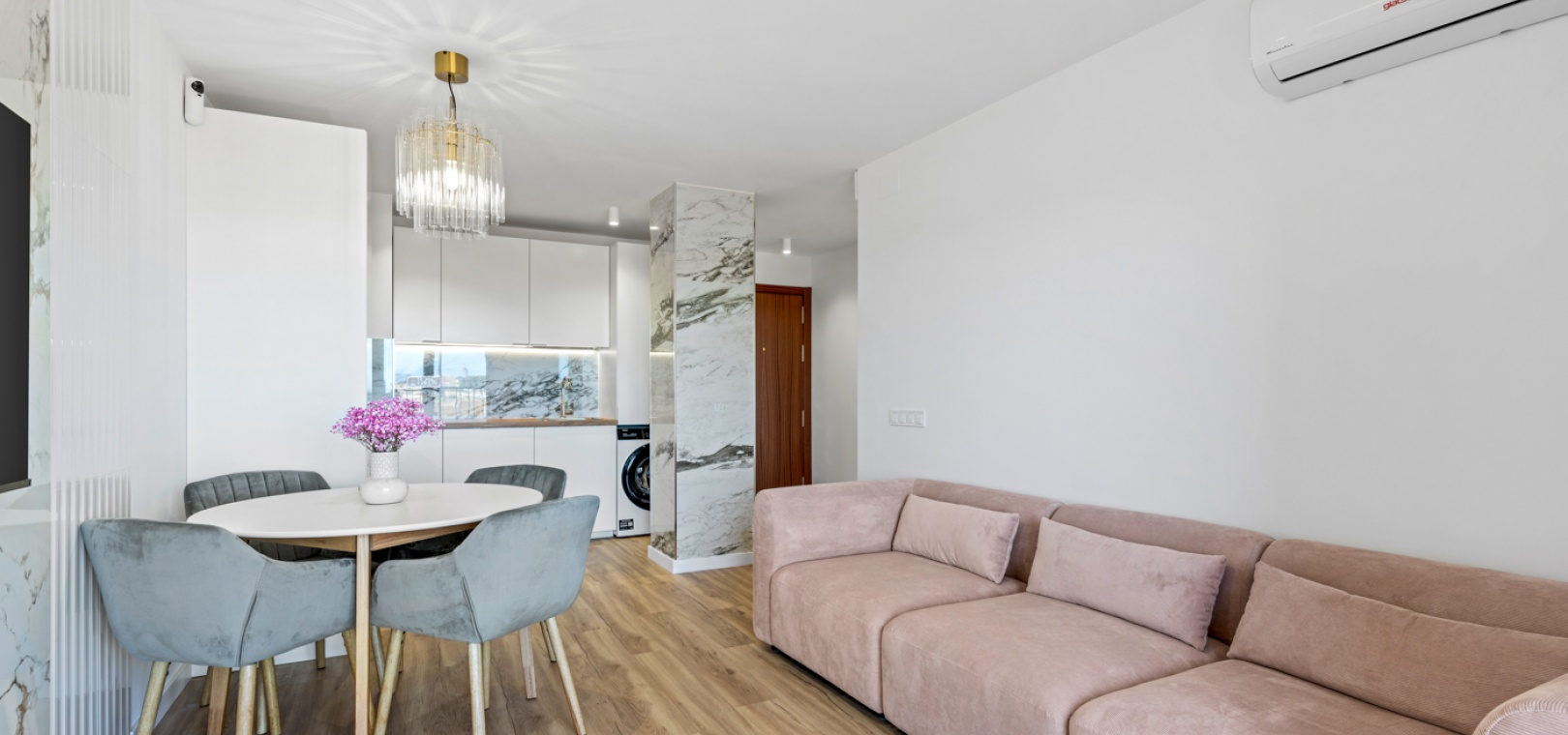 Komplett renovierte 2-Zimmer-Wohnung mit atemberaubender Aussicht zum Verkauf in Punta Prima, einer der begehrtesten Gegenden von Torrevieja. Dieses wunderschön renovierte Apartment liegt nur 600 Meter vom Strand entfernt in der begehrten Gegend von Punta Prima. Es bietet einen atemberaubenden Blick von der Terrasse, besonders bezaubernd bei Nacht. Das Anwesen verfügt über zwei geräumige Schlafzimmer und zwei Badezimmer, eine offene Küche mit modernen Geräten und einen hellen Wohnbereich. Zu den weiteren Highlights zählen brandneue Möbel, eine installierte Klimaanlage, schallisolierte Fenster mit elektrischen Rollläden und eine stimmungsvolle Beleuchtung im gesamten Gebäude. Die Wohnung besticht durch modernes Design und hochwertige Ausstattung. Die Renovierung umfasste eine komplette Modernisierung der Sanitär- und Elektroinstallationen, um Komfort und Effizienz zu gewährleisten. Perfekt als Ferienhaus oder zum ganzjährigen Wohnen. Günstig gelegen in der Nähe aller Annehmlichkeiten – Supermärkte, Bushaltestellen und eine große Auswahl an Bars und Restaurants.