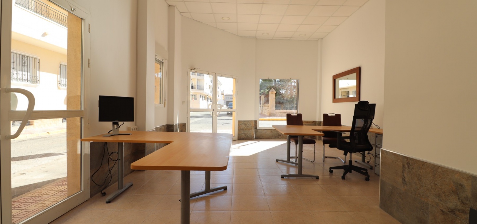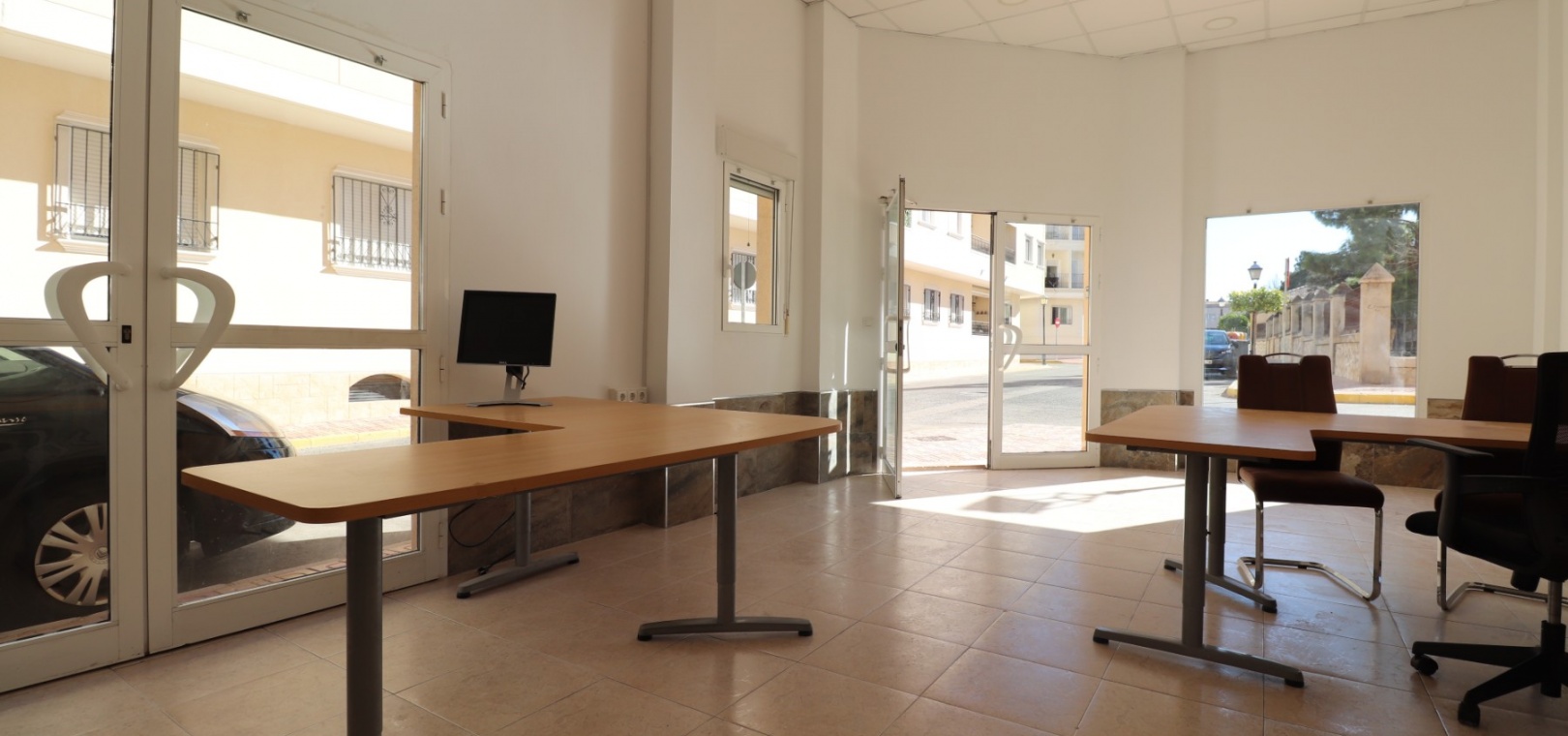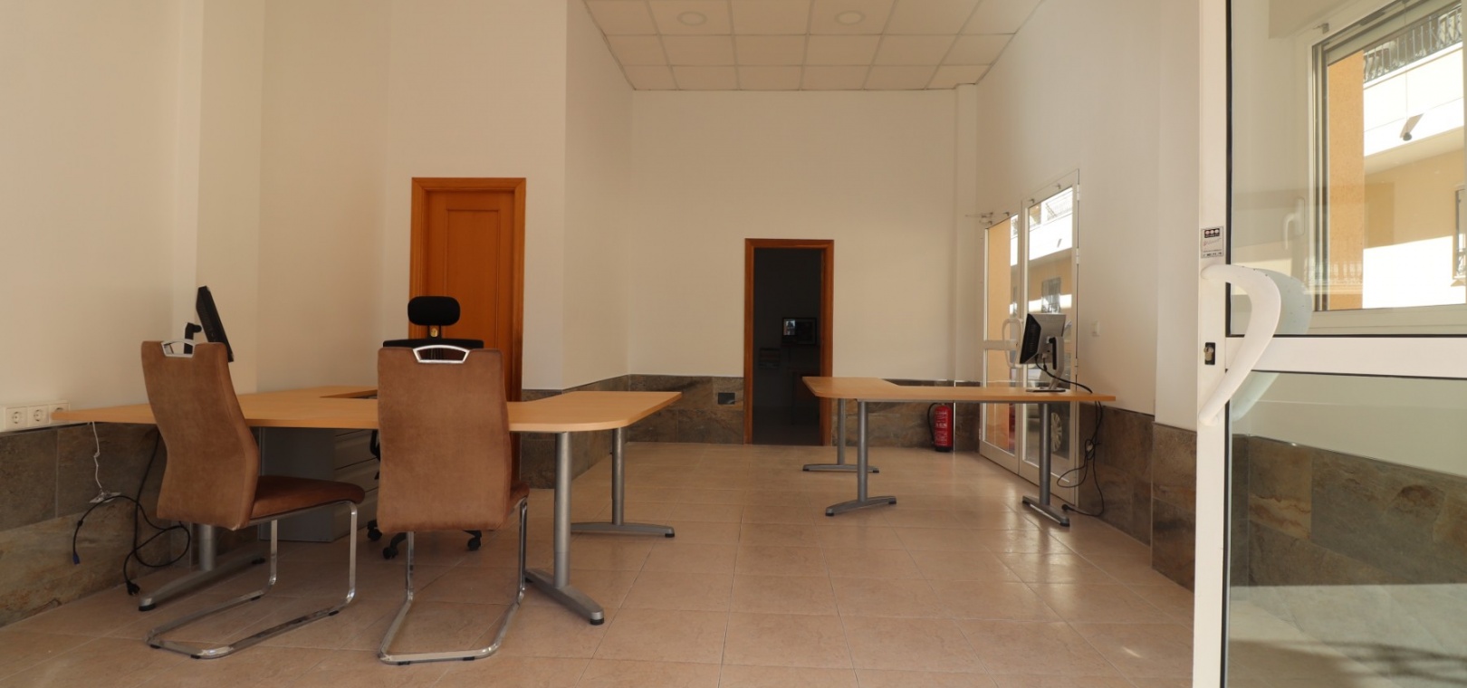 Gewerbeart: Büro oder andere Gelegenheit (Miete). Eine tolle Eckwohnung mit 81 m² im Herzen der spanischen Stadt Jacarilla, wo sich verschiedene Bars, Restaurants und Geschäfte befinden, mit Blick auf den historischen „Palacio“. Die geräumige Wohnung bietet viel Licht und verfügt über zwei Glastüren zum Hauptbereich. Anschließend gibt es einen separaten, geräumigen Raum, zwei Badezimmer, eine separate Küche und eine Klimaanlage. Tolle Gelegenheit! Dieses Objekt wurde erfolgreich als Verwaltungsgeschäft geführt, aber die Optionen sind vielfältig: ein Büro, ein Geschäft, ein Supermarkt, ein Friseursalon und vieles mehr… Preis: 750 € pro Monat (Miete). Lage: Costa Blanca Süd – Jacarilla – Jacarilla Stadt