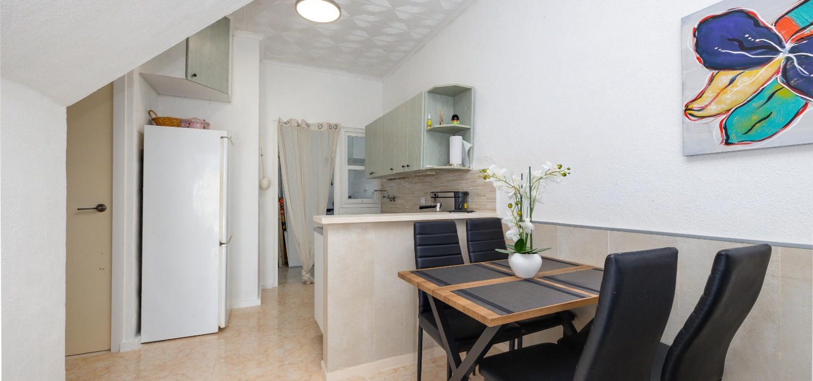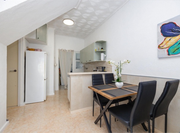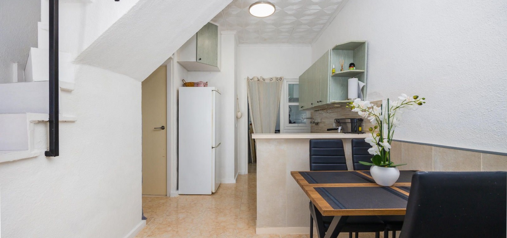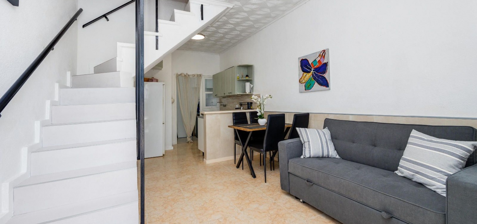 Dieses charmante Duplex in Torretas III, Torrevieja, bietet 57 Quadratmeter bebaute Fläche, die praktisch und gemütlich verteilt ist. Mit zwei Schlafzimmern ist das Anwesen ideal für Paare oder kleine Familien. An das geräumige und helle Wohn-Esszimmer schließt sich eine moderne, voll ausgestattete Küche an. Es verfügt außerdem über zwei Badezimmer, eines davon komplett, und Einbauschränke in den Schlafzimmern für zusätzlichen Komfort.Die Hauptattraktion dieser Immobilie ist ihr privates Solarium auf dem Dach, perfekt, um die Sonne und die Aussicht zu genießen. Außerdem verfügt es über eine Terrasse im Erdgeschoss, die sich ideal zum Entspannen im Freien eignet.Dieses Duplex liegt in einer ruhigen Gegend, in der Nähe aller Annehmlichkeiten und der wunderschönen Strände von Torrevieja und eignet sich perfekt zum ganzjährigen Wohnen oder für einen Urlaub in Meeresnähe.