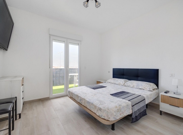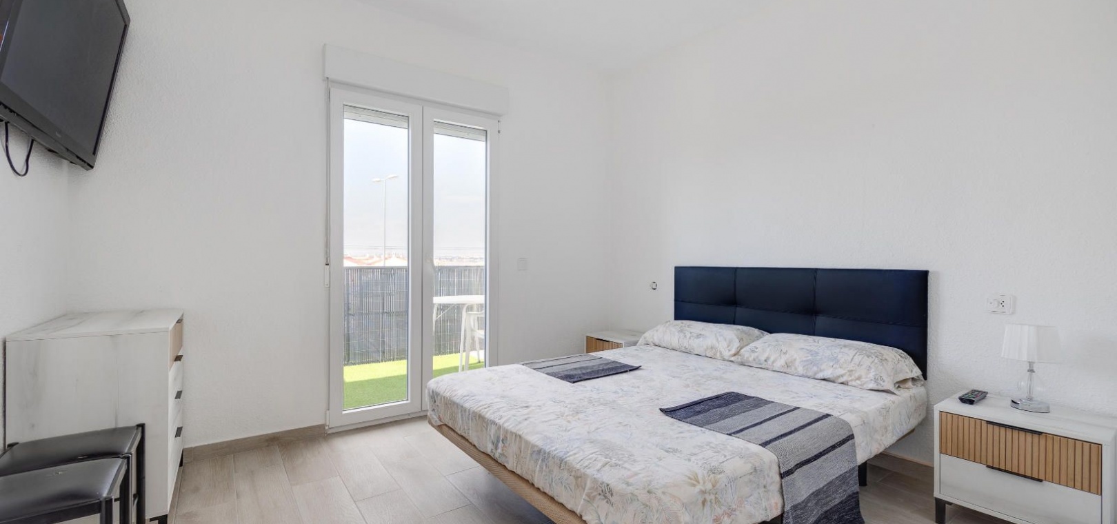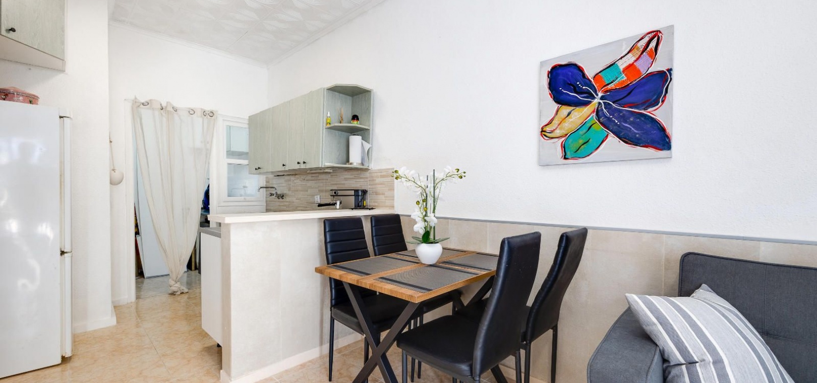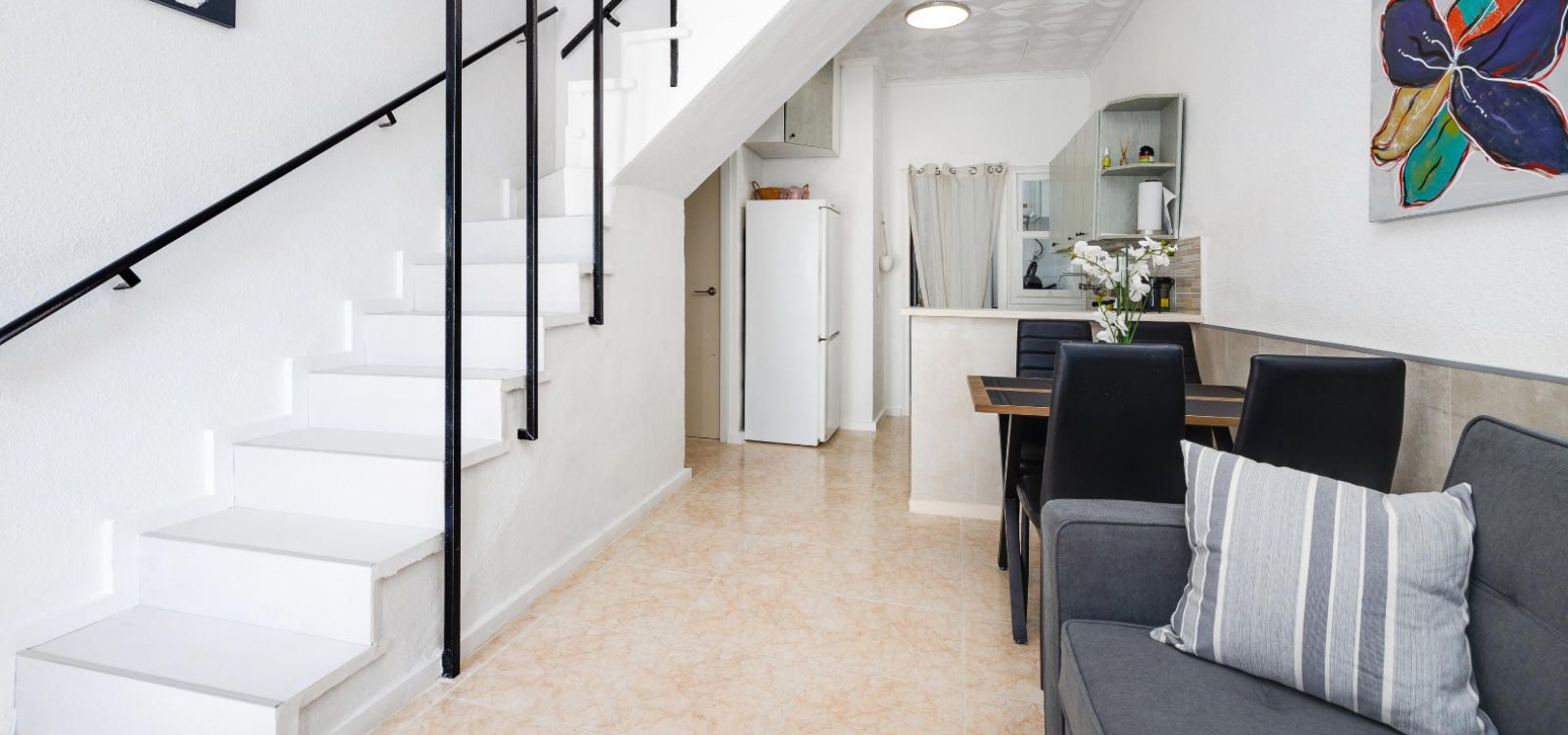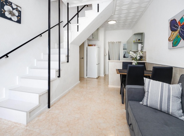 Dieses charmante Duplex in Torretas III, Torrevieja, bietet 57 Quadratmeter bebaute Fläche, die praktisch und gemütlich verteilt ist. Mit zwei Schlafzimmern ist das Anwesen ideal für Paare oder kleine Familien. An das geräumige und helle Wohn-Esszimmer schließt sich eine moderne, voll ausgestattete Küche an. Es verfügt außerdem über zwei Badezimmer, eines davon komplett, und Einbauschränke in den Schlafzimmern für zusätzlichen Komfort.Die Hauptattraktion dieser Immobilie ist ihr privates Solarium auf dem Dach, perfekt, um die Sonne und die Aussicht zu genießen. Außerdem verfügt es über eine Terrasse im Erdgeschoss, die sich ideal zum Entspannen im Freien eignet.Dieses Duplex liegt in einer ruhigen Gegend, in der Nähe aller Annehmlichkeiten und der wunderschönen Strände von Torrevieja und eignet sich perfekt zum ganzjährigen Wohnen oder für einen Urlaub in Meeresnähe.