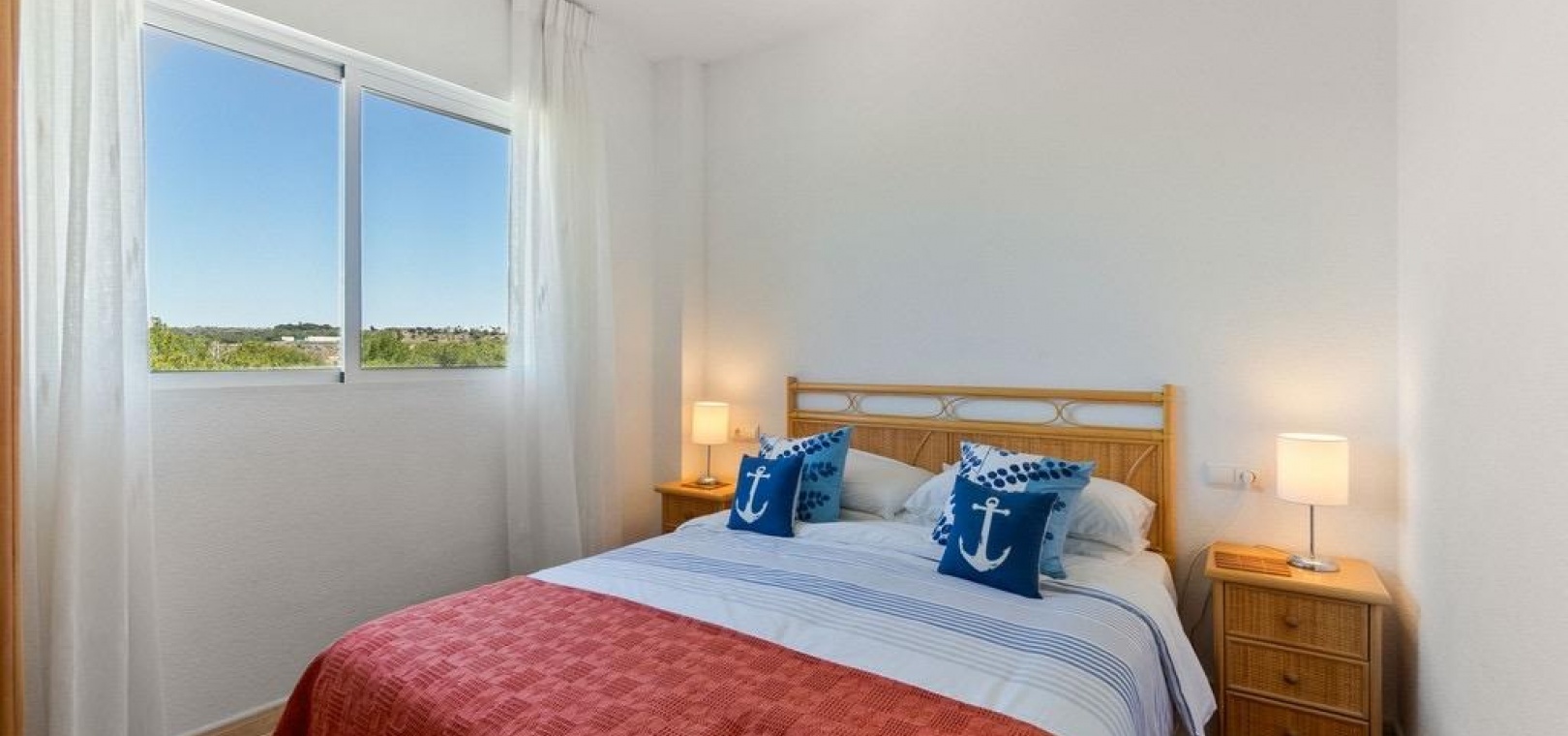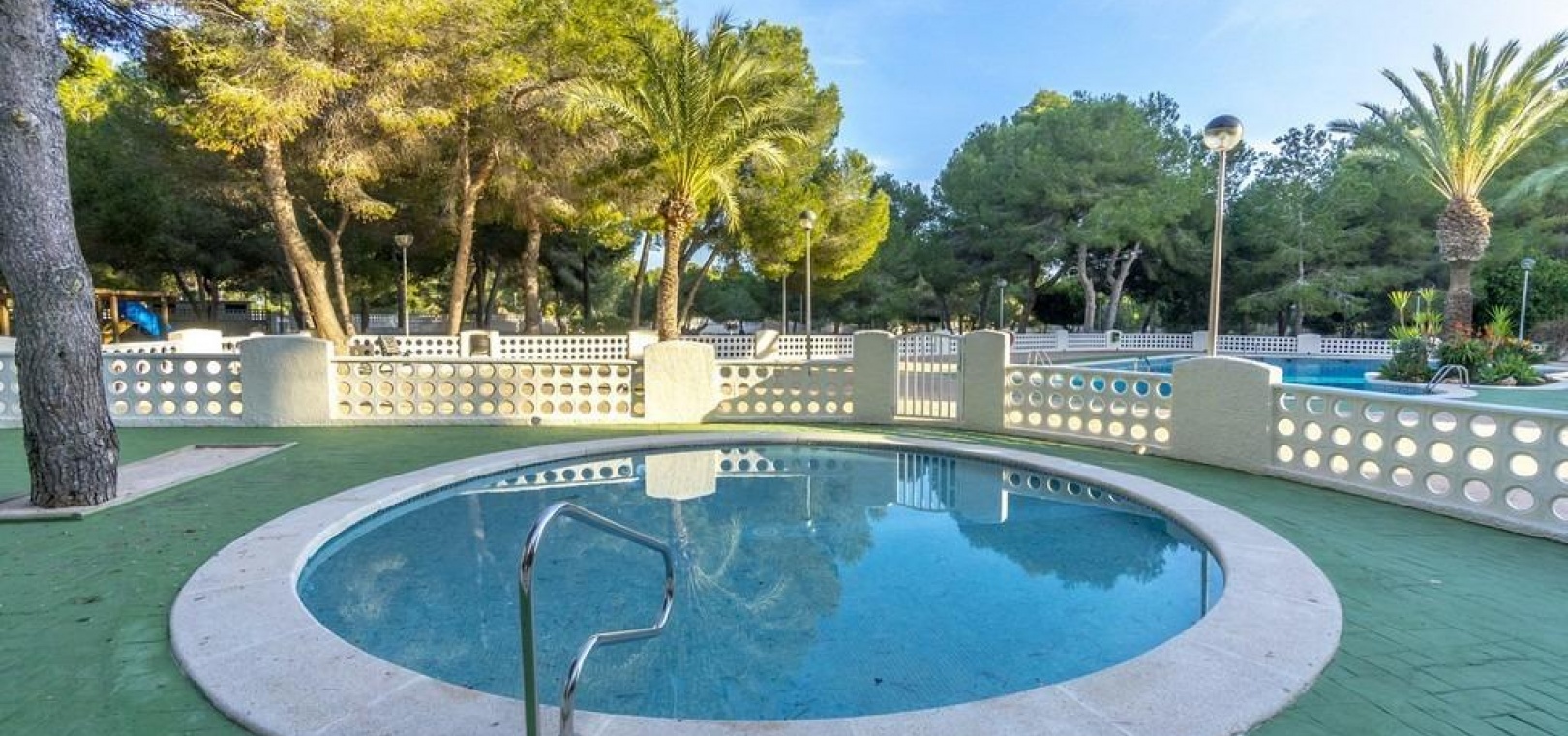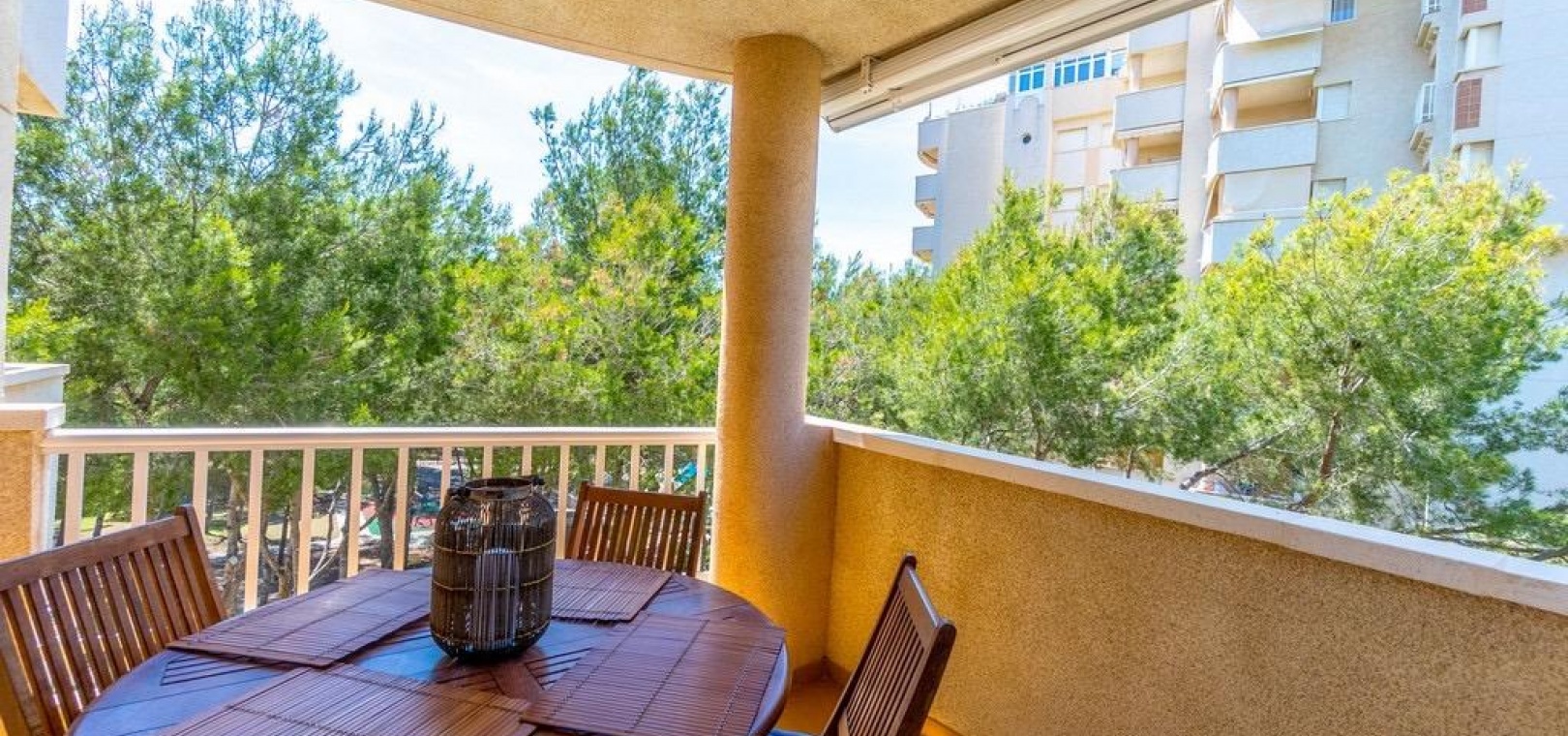 Die Wohnung befindet sich in einer der schönsten Gegenden von Orihuela Costa, Dehesa de Campoamor, nur 300 Meter vom Strand Campoamor entfernt. Sie befindet sich im vierten Stock und ist nach Südosten ausgerichtet. Mit einer Wohnfläche von 76 m² verfügt sie über zwei geräumige Schlafzimmer und ein Badezimmer. Das helle Wohnzimmer bietet Zugang zur Terrasse und einen entspannenden Blick auf die Grünflächen und den Gemeinschaftspool. Die Wohnung wird möbliert verkauft, die Küche ist ausgestattet (Küche mit Hauswirtschaftsraum). Ein Außenparkplatz innerhalb der Wohnanlage ist im Preis inbegriffen. Große Gemeinschaftsbereiche mit Swimmingpools, Tennisplätzen, einem Kinderspielplatz und vielem mehr sind vorhanden. Supermarkt, Restaurants, Strandpromenade, Yachthafen und vieles mehr sind nur wenige Meter entfernt.