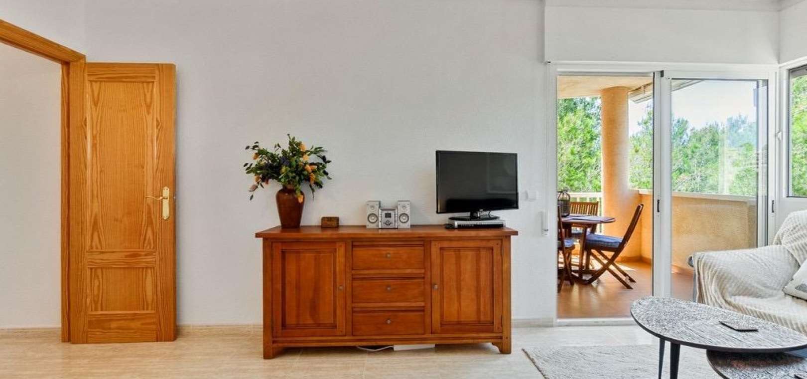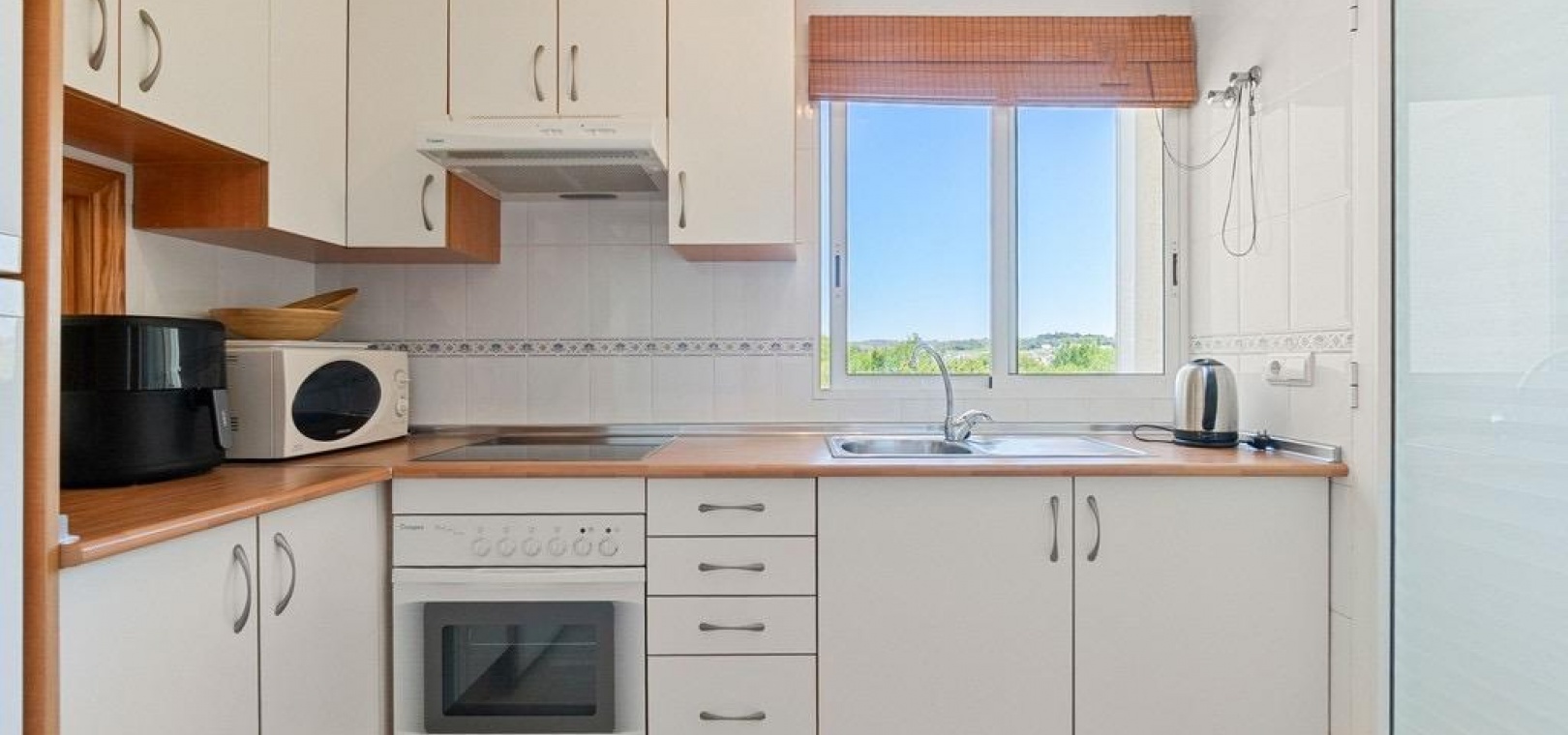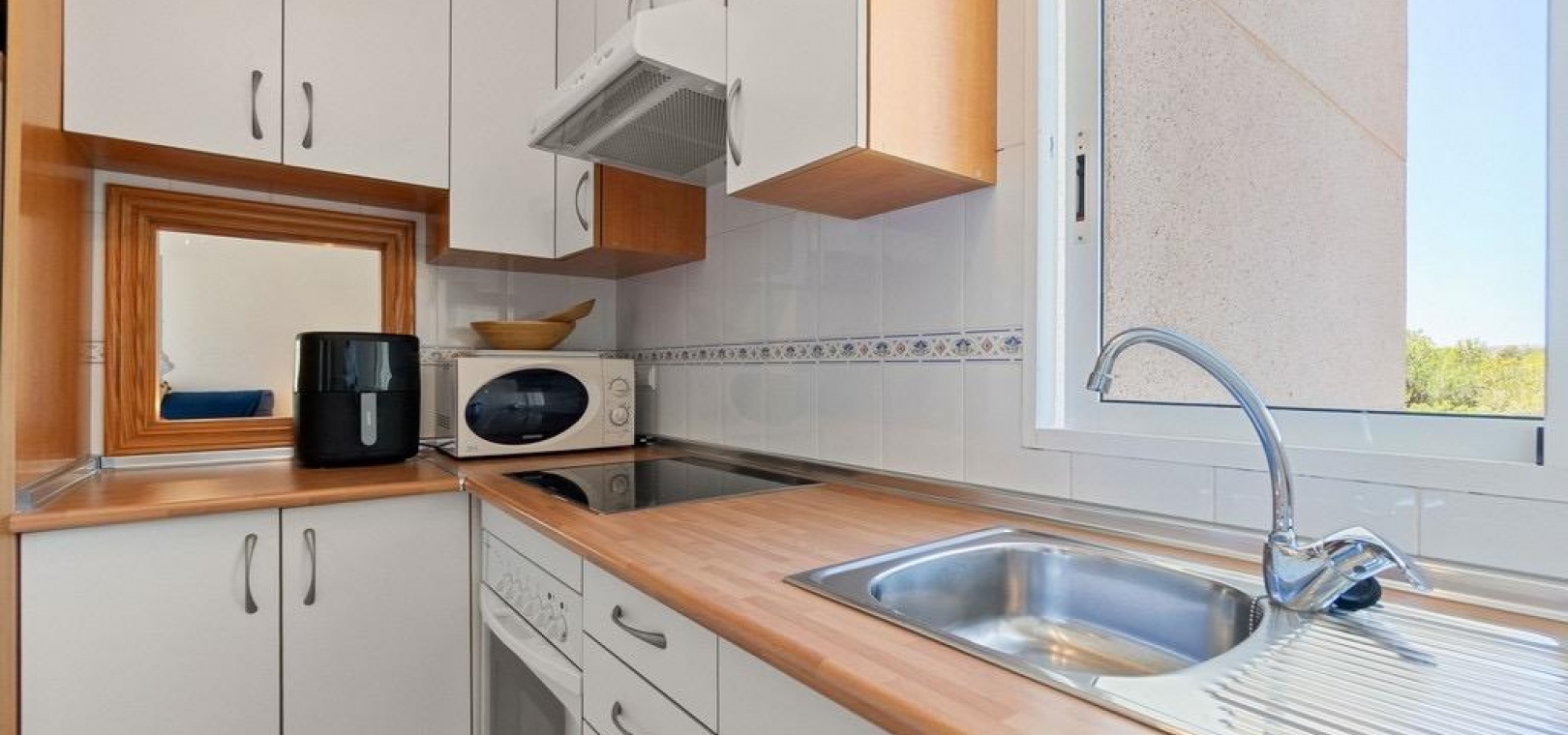Die Wohnung befindet sich in einer der schönsten Gegenden von Orihuela Costa, Dehesa de Campoamor, nur 300 Meter vom Strand Campoamor entfernt. Sie befindet sich im vierten Stock und ist nach Südosten ausgerichtet. Mit einer Wohnfläche von 76 m² verfügt sie über zwei geräumige Schlafzimmer und ein Badezimmer. Das helle Wohnzimmer bietet Zugang zur Terrasse und einen entspannenden Blick auf die Grünflächen und den Gemeinschaftspool. Die Wohnung wird möbliert verkauft, die Küche ist ausgestattet (Küche mit Hauswirtschaftsraum). Ein Außenparkplatz innerhalb der Wohnanlage ist im Preis inbegriffen. Große Gemeinschaftsbereiche mit Swimmingpools, Tennisplätzen, einem Kinderspielplatz und vielem mehr sind vorhanden. Supermarkt, Restaurants, Strandpromenade, Yachthafen und vieles mehr sind nur wenige Meter entfernt.