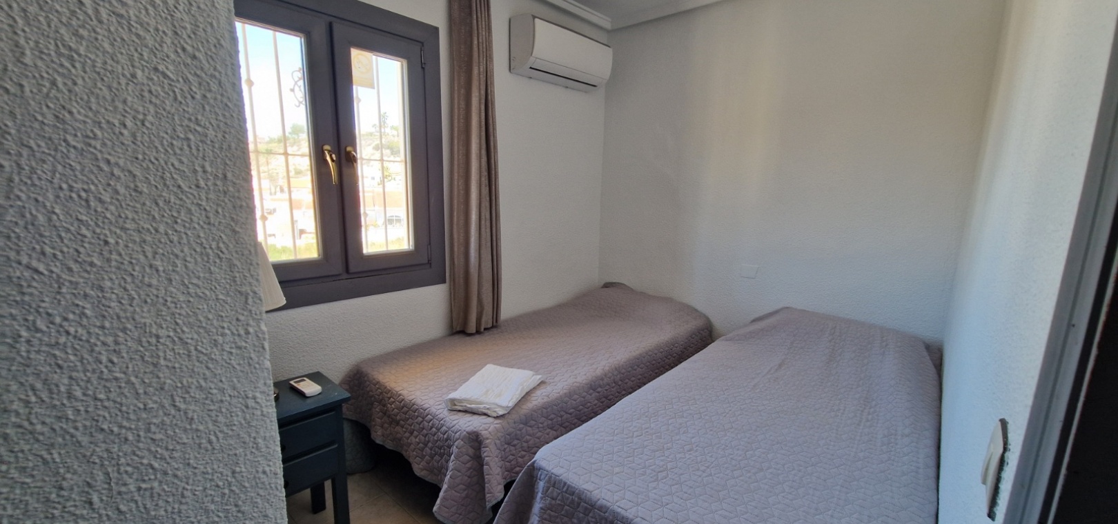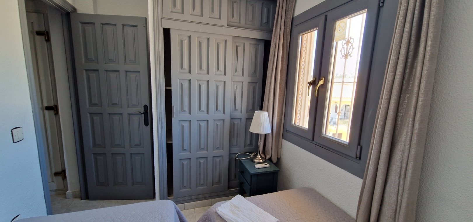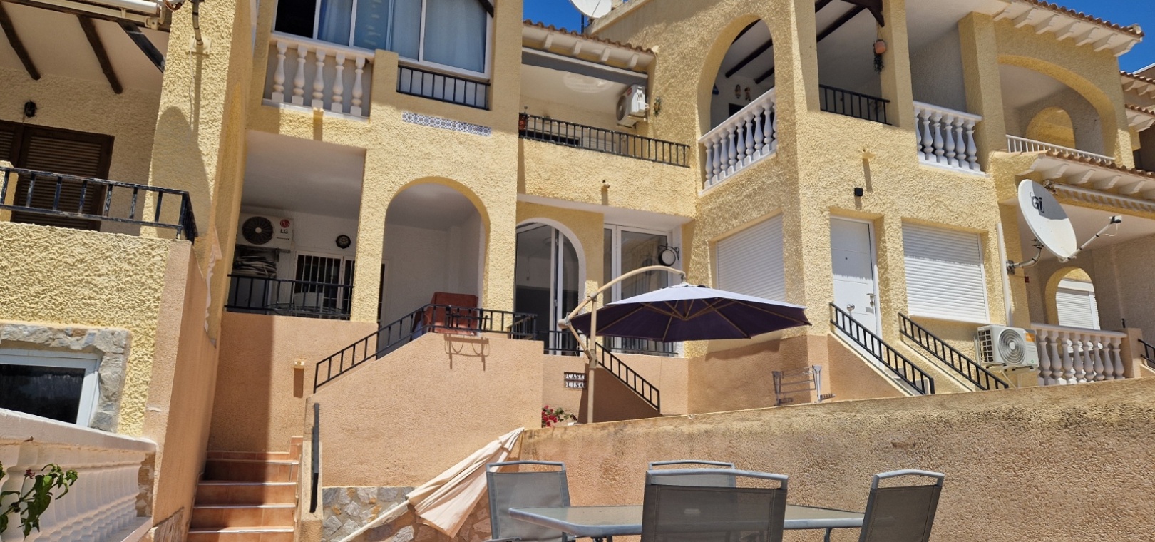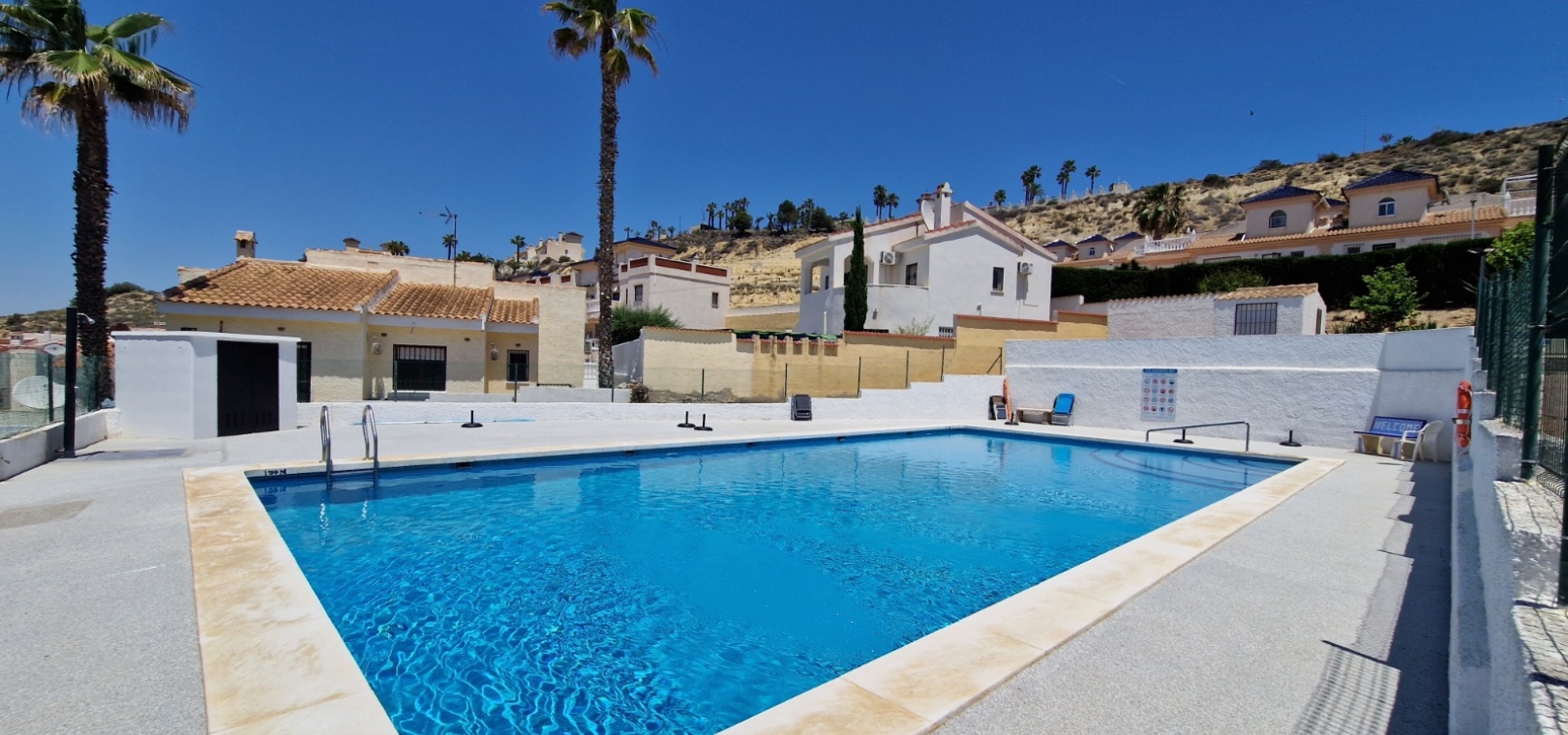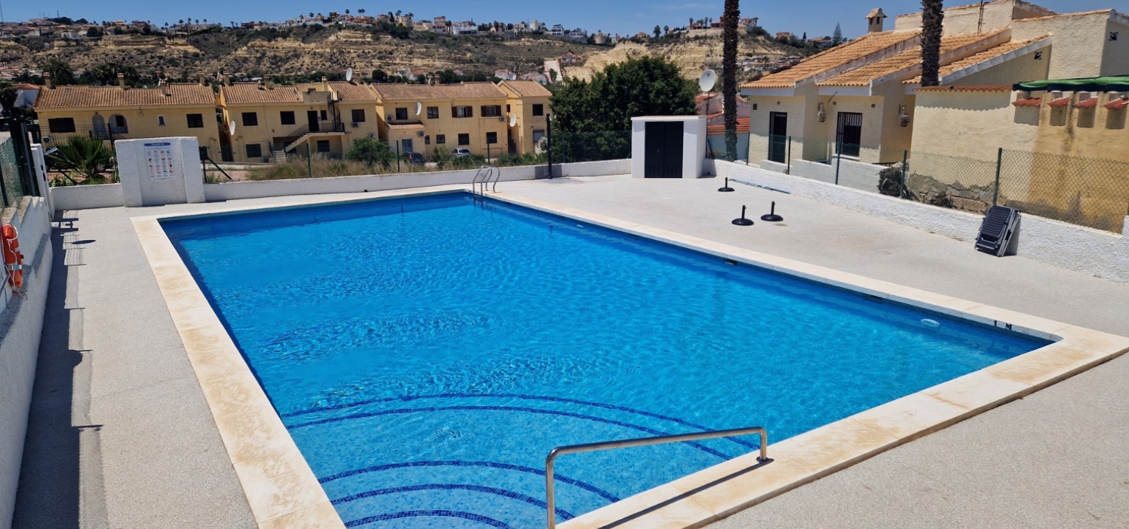 2 Schlafzimmer, 1 Badezimmer – Beide Schlafzimmer bieten eingebauten Stauraum und natürliches Licht, perfekt für Gäste oder Familie.Offener Wohn- und Essbereich – Ein funktionaler und gemütlicher Grundriss führt auf die Terrasse, ideal zum Entspannen und Unterhalten.Einbauküche – Voll ausgestattet mit wichtigen Geräten und Schränken für den täglichen Gebrauch oder längere Aufenthalte.Private Vorderterrasse – Ein großzügiger Platz für Mahlzeiten im Freien, den Morgenkaffee oder zum Faulenzen in der Sonne.Zugang zum Gemeinschaftspool – Genießen Sie den großen und einladenden Gemeinschaftspool, nur wenige Schritte von Ihrer Tür entfernt.Flacher Fußweg zu Annehmlichkeiten – Supermärkte, Bars, Restaurants und Geschäfte sind alle bequem zu Fuß erreichbar.Ausgezeichnete Lage – Inmitten der ruhigen und doch lebendigen Golfgemeinde La Marquesa gelegen, mit einfachem Zugang zu Rojales, den Stränden von Guardamar und mehr.