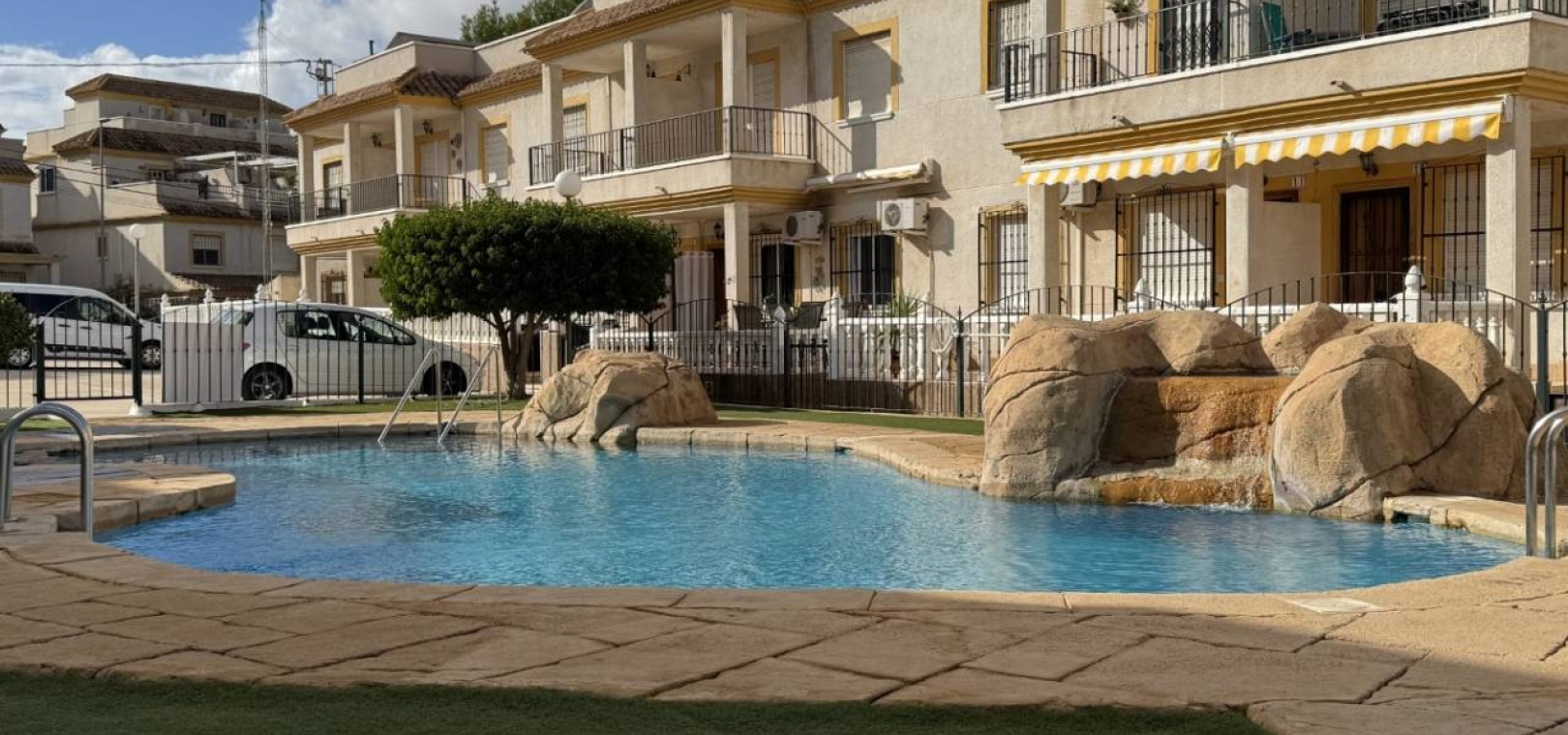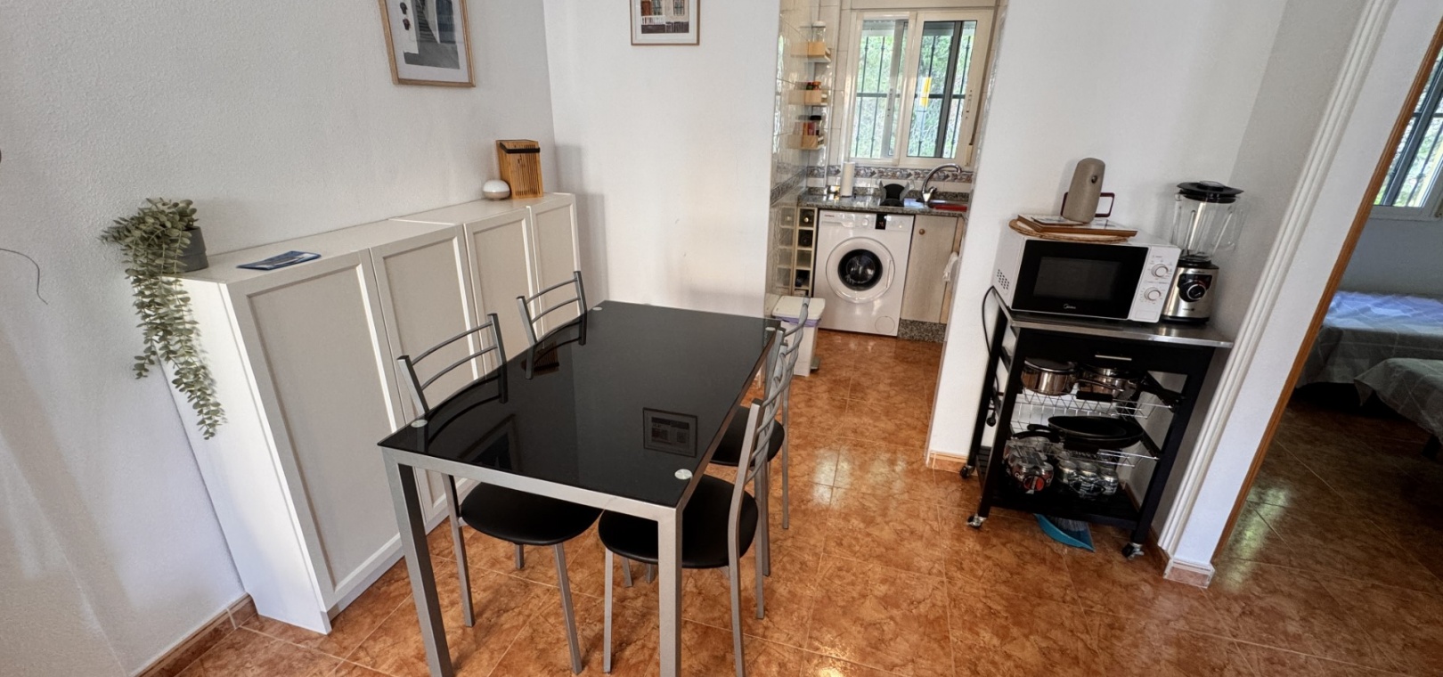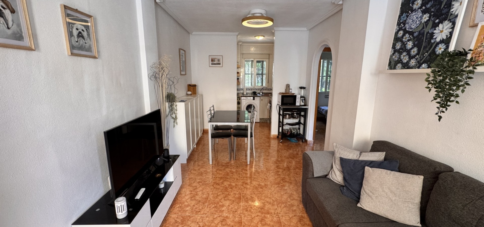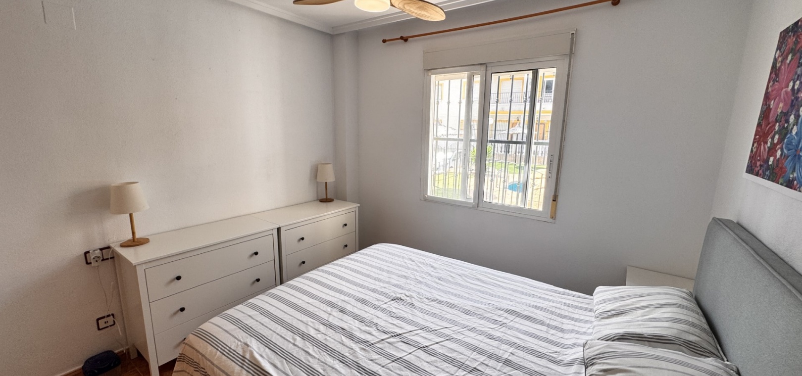 Diese wunderschön gestaltete Erdgeschosswohnung eignet sich ideal zum dauerhaften Wohnen oder als perfektes Ferienhaus. Sie liegt in der beliebten Urbanisation San Andres in Montemar, Algorfa. Die Wohnung ist nach Süden ausgerichtet und genießt den ganzen Tag Sonnenschein. Der fantastische Gemeinschaftspool ist nur wenige Schritte entfernt. Bei der Besichtigung der Immobilie werden Sie vom Wohnbereich begrüßt. Dieser wiederum ist offen zur Küche, die alle notwendigen Geräte bietet: Backofen/Herd, Waschmaschine und Kühl-Gefrierkombination. Ein kleiner Innenflur bietet Zugang zu den Schlafzimmern und dem Badezimmer. Beide Schlafzimmer sind gut proportioniert, das Hauptschlafzimmer verfügt über Einbauschränke, das zweite über einen freistehenden Kleiderschrank. Alle Zimmer des Anwesens sind mit modernen Deckenventilatoren ausgestattet. Auf der sonnendurchfluteten Terrasse können Sie das ganze Jahr über im Freien speisen. Von diesem schönen Bereich aus haben Sie einen freien Blick auf die Anlage und den Gemeinschaftspool. Diese kompakte Gemeinde umfasst nur 36 Grundstücke und verfügt über abgeschlossene Parkplätze für die Bewohner. Eine Innenbesichtigung wird dringend empfohlen. Diese Immobilie wird Sie nicht enttäuschen.
