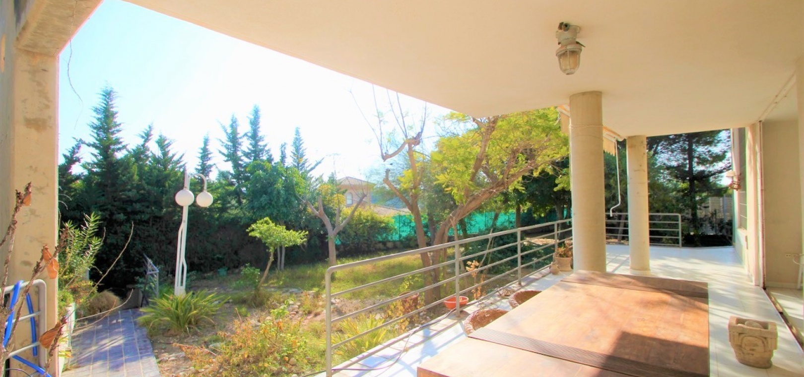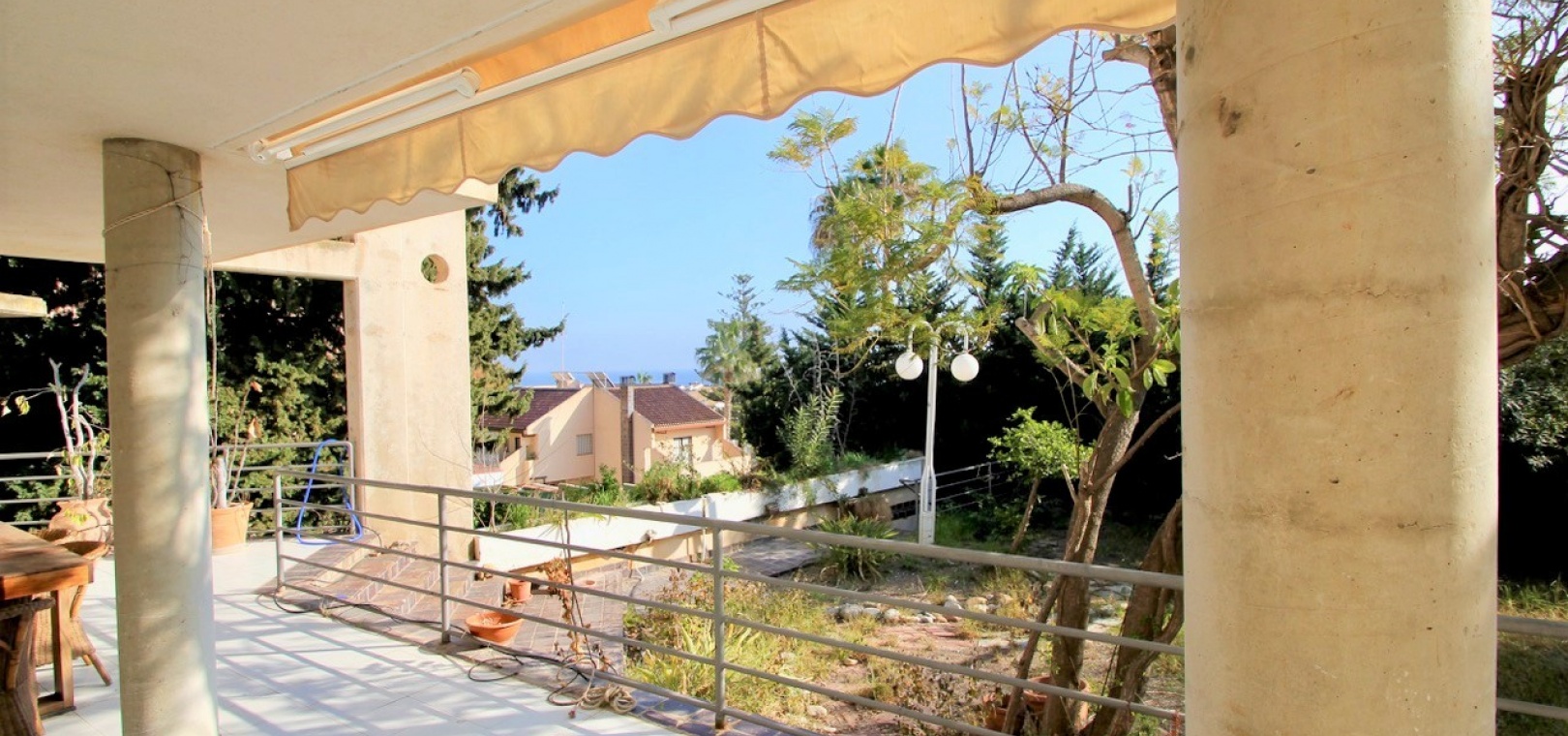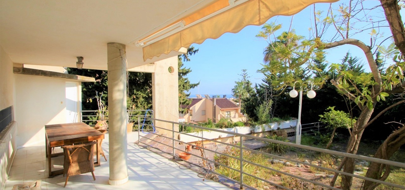 Nach Süden ausgerichtete Villa auf einem flachen Grundstück von 1.000 m2, mit Meerblick von der Terrasse außerhalb des Wohn-Esszimmers, gleichzeitig aber hoher Privatsphäre vor den Blicken der Nachbarn.