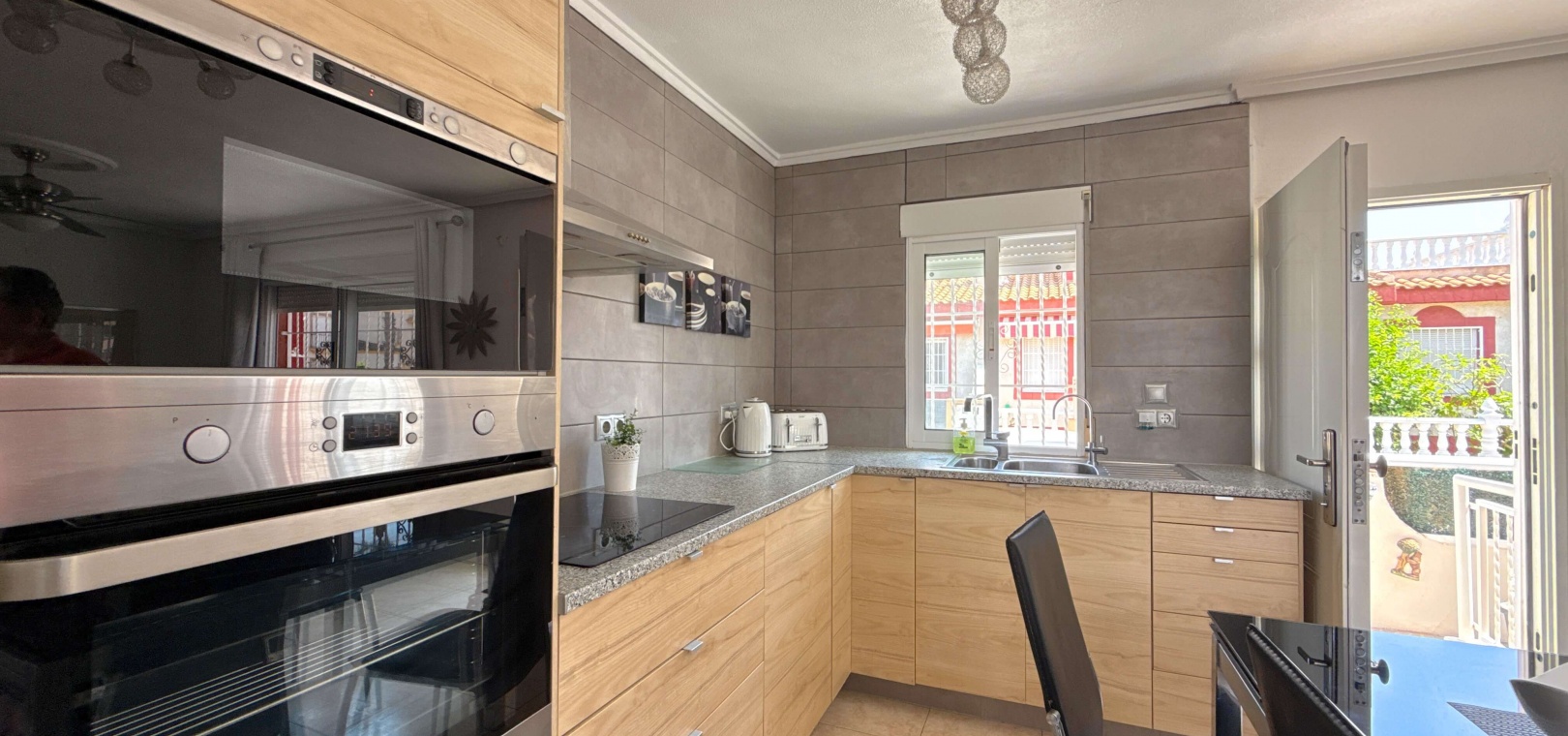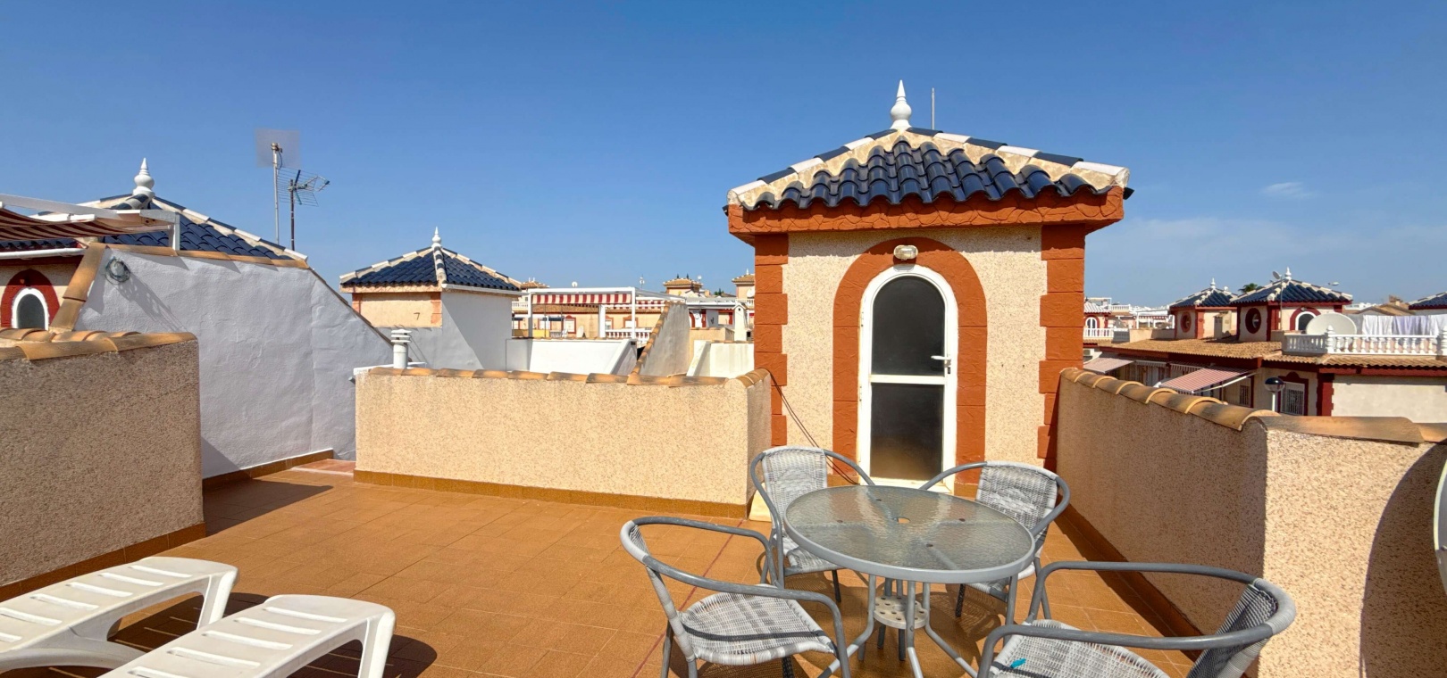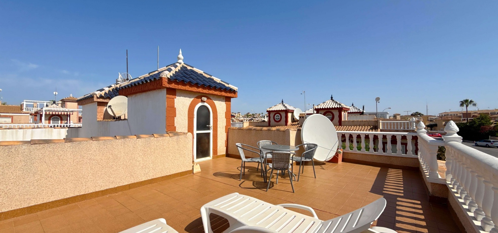 Heller, offener Wohn- und Essbereich Voll ausgestattete Küche Drei großzügige Schlafzimmer – ideal für Gäste, Familie oder ein Home-Office Privates Solarium auf dem Dach – ideal zum Entspannen, Sonnenbaden oder für Unterhaltung Zugang zu einem gepflegten Gemeinschaftspool Großzügiges Eckgrundstück mit Privatsphäre und zusätzlichem Platz im Freien