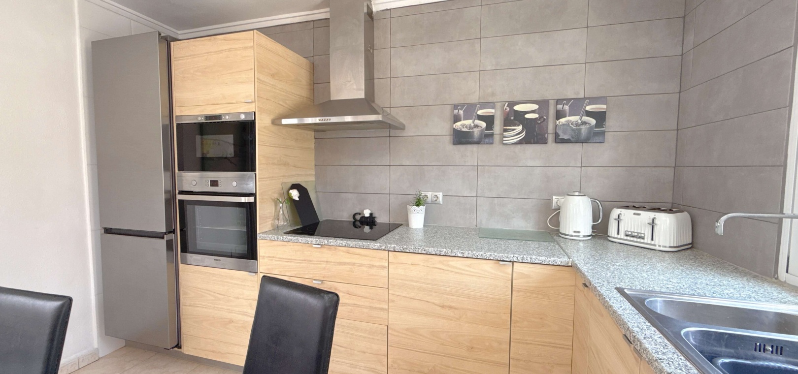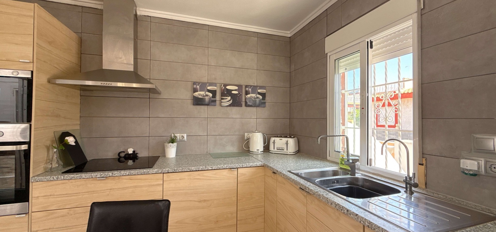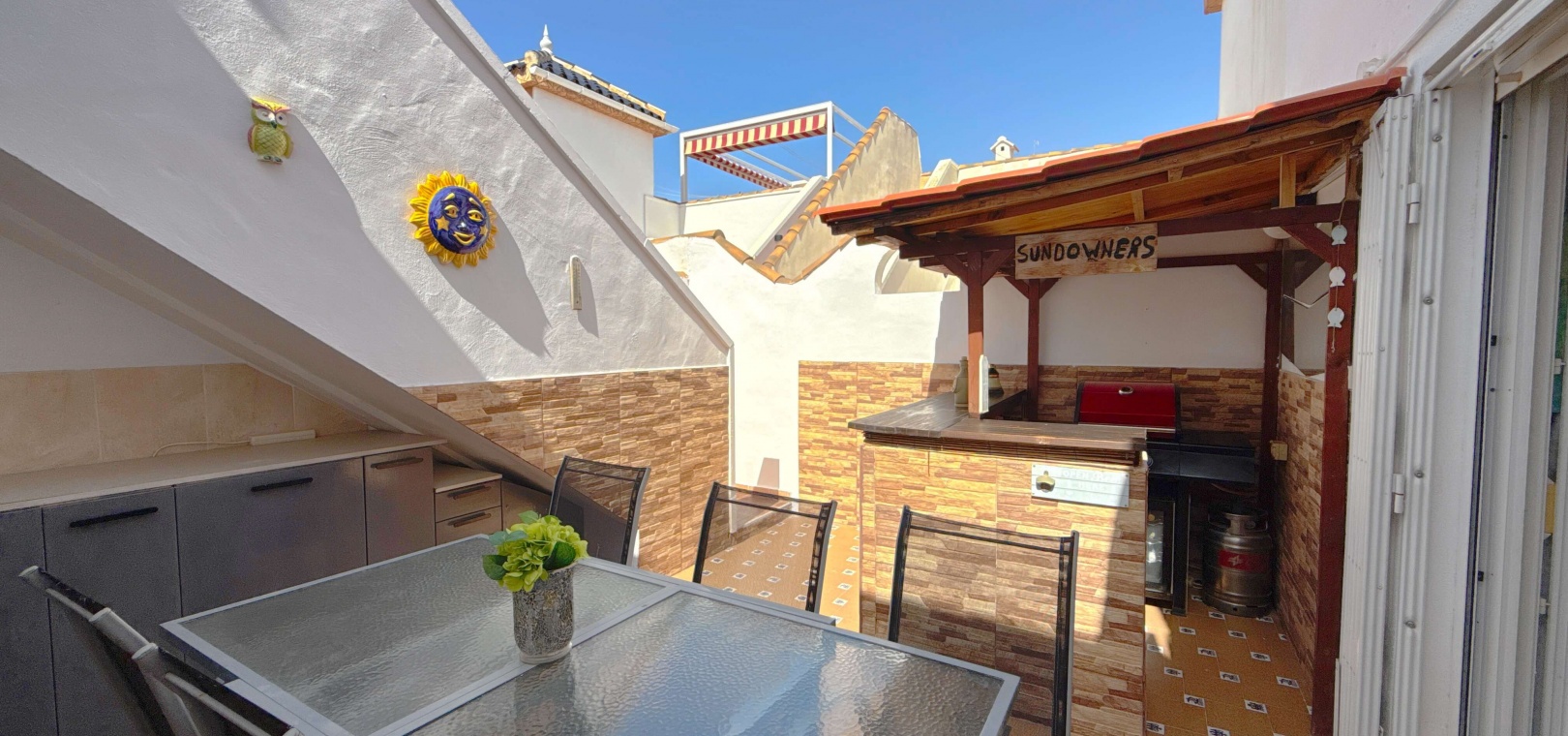 Heller, offener Wohn- und Essbereich Voll ausgestattete Küche Drei großzügige Schlafzimmer – ideal für Gäste, Familie oder ein Home-Office Privates Solarium auf dem Dach – ideal zum Entspannen, Sonnenbaden oder für Unterhaltung Zugang zu einem gepflegten Gemeinschaftspool Großzügiges Eckgrundstück mit Privatsphäre und zusätzlichem Platz im Freien