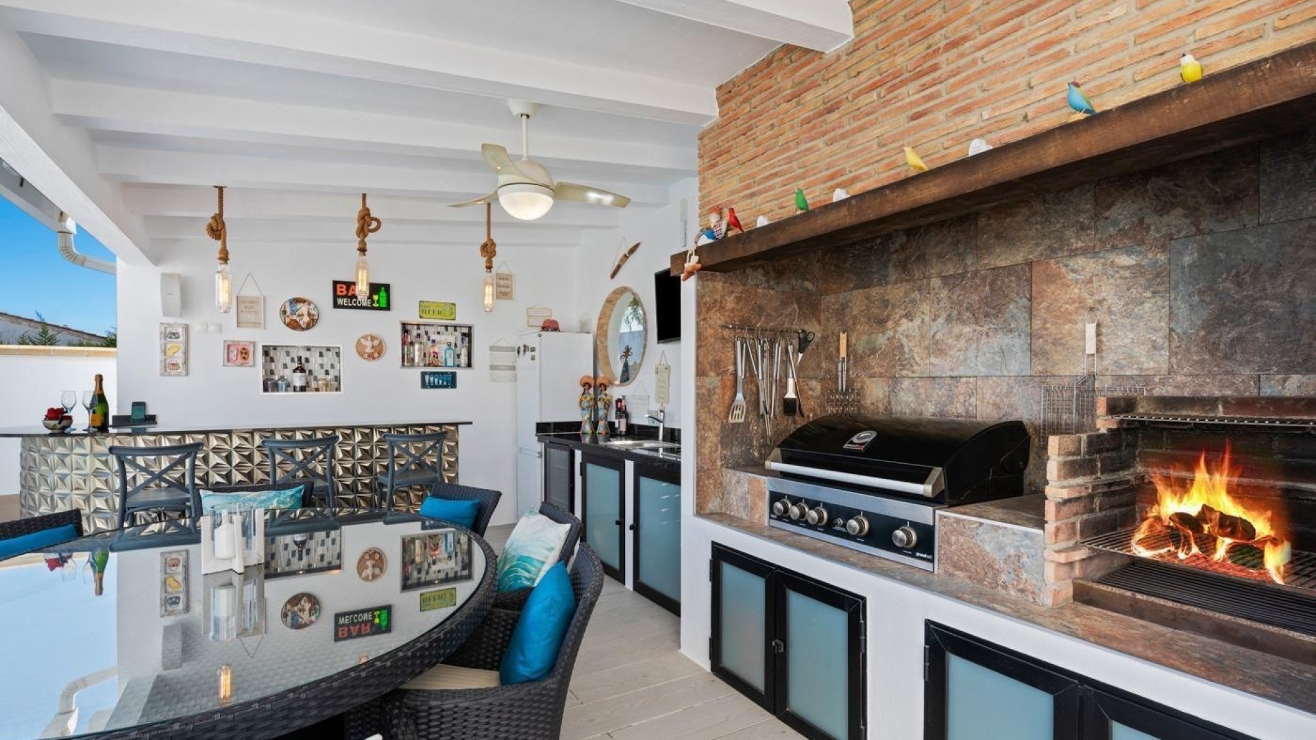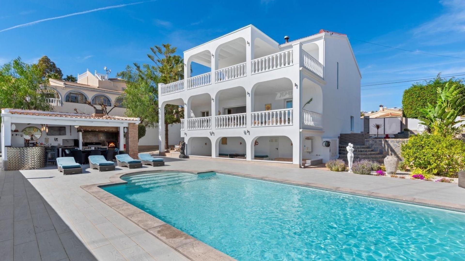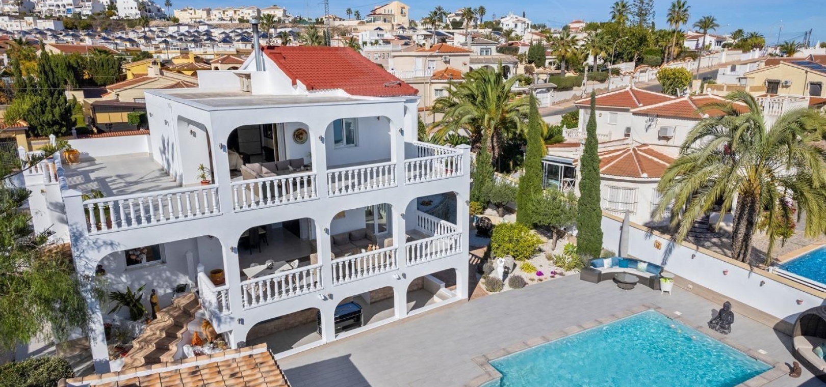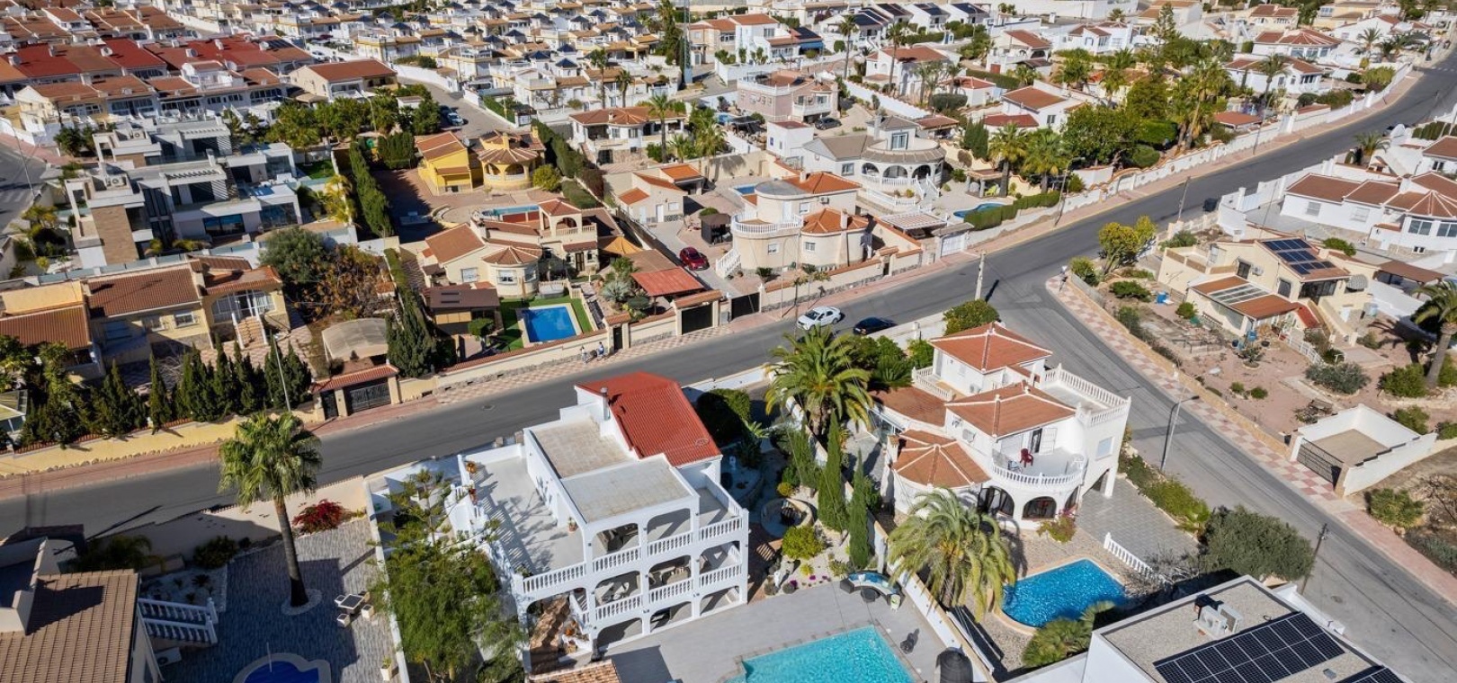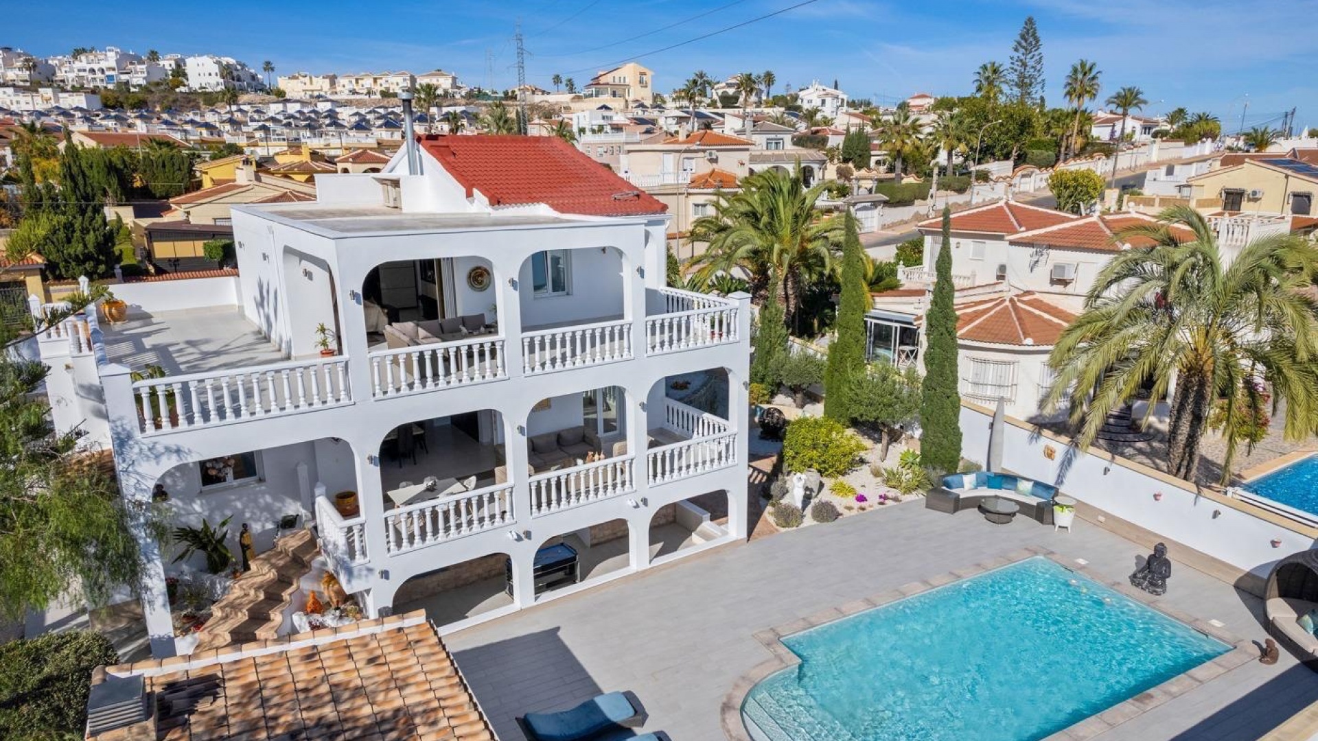 Atemberaubende Villa in Südlage mit spektakulärer Aussicht im Zentrum von Ciudad Quesada. Wir sind stolz, Ihnen diese außergewöhnliche freistehende Villa präsentieren zu können, die perfekt auf einem weitläufigen, 800 m² großen Grundstück in Südlage im Herzen von Ciudad Quesada gelegen ist. Dieses wunderschön gepflegte Haus bietet eine bebaute Gesamtfläche von 306,40 m², die durchdacht auf zwei Ebenen verteilt ist, und eine perfekte Mischung aus modernem Komfort, mediterranem Charme und Outdoor-Lebensstil. Eigenschaften der Immobilie: Diese elegante Villa bietet 4 geräumige Schlafzimmer und 3 stilvolle Badezimmer (davon 2 en-suite), eine Gästetoilette, zwei voll ausgestattete Küchen (eine innen und eine außen), ein helles und luftiges Wohnzimmer, einen Essbereich und eine vielseitig nutzbare Winterterrasse sowie eine große offene Terrasse. Erdgeschoss: Verfügt über eine offene Küche, die in einen einladenden Ess- und Wohnbereich übergeht, zwei komfortable Schlafzimmer, ein Familienbadezimmer und eine überdachte Terrasse, die ideal für entspannte Morgen oder unterhaltsame Abende ist. Erste Etage: Bietet zwei große Schlafzimmer, beide mit en-suite Badezimmern. Die Master-Suite verfügt über einen begehbaren Kleiderschrank und direkten Zugang zu einer privaten Terrasse mit atemberaubender Aussicht auf die Umgebung. Moderner Komfort und Extras: Zentrale Gasheizung und Klimaanlage (warm/kalt) im gesamten GebäudeDoppelt verglaste Sichtschutzfenster mit MoskitonetzenGemütlicher Holzkamin im WohnzimmerAutomatisches elektrisches EingangstorTeilmöbliert verkauft, bezugsfertig. Leben im Freien vom Feinsten: Betreten Sie eine private Gartenoase mit: einem beheizten Privatpool, umgeben von SonnenterrassenEine individuell gestaltete Außenküche mit zwei Grills (Gas und Holz/Holzkohle), Kühlschrank, Gefrierschrank, Weinkühler und komplettem BarbereichÜberdachte und offene Sitzbereiche für ganzjährigen GenussExterne Toilette und Waschküche für mehr KomfortFeuerstelle für gemütliche Abende unter den SternenAusreichend Parkplätze abseits der Straße hinter sicheren Toren Diese Immobilie ist eine seltene Gelegenheit für alle, die Luxus, Platz, Privatsphäre und Komfort suchen – nur einen kurzen Spaziergang von Quesadas pulsierendem Stadtzentrum, Restaurants, Geschäften und Annehmlichkeiten entfernt. Ob Sie ein Traumhaus, ein luxuriöses Feriendomizil oder eine hochwertige Mietinvestition suchen – diese Villa bietet alles. Kontaktieren Sie uns noch heute für eine private Besichtigung und erleben Sie den Charme der Villa hautnah. Sie werden begeistert sein!