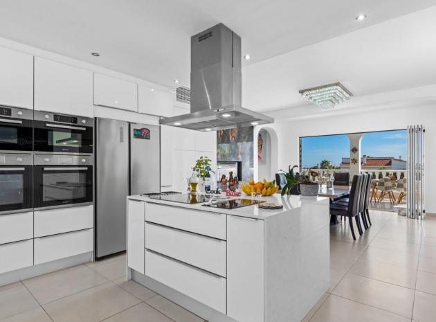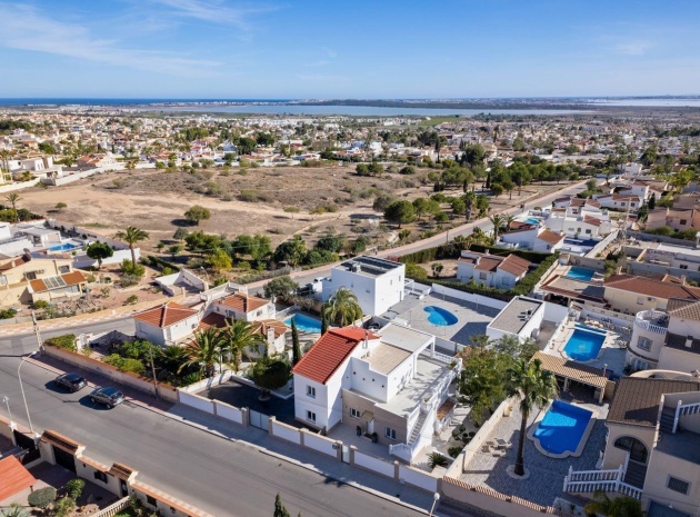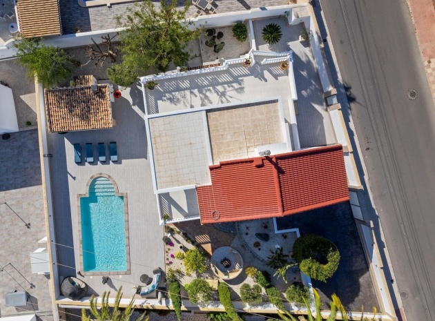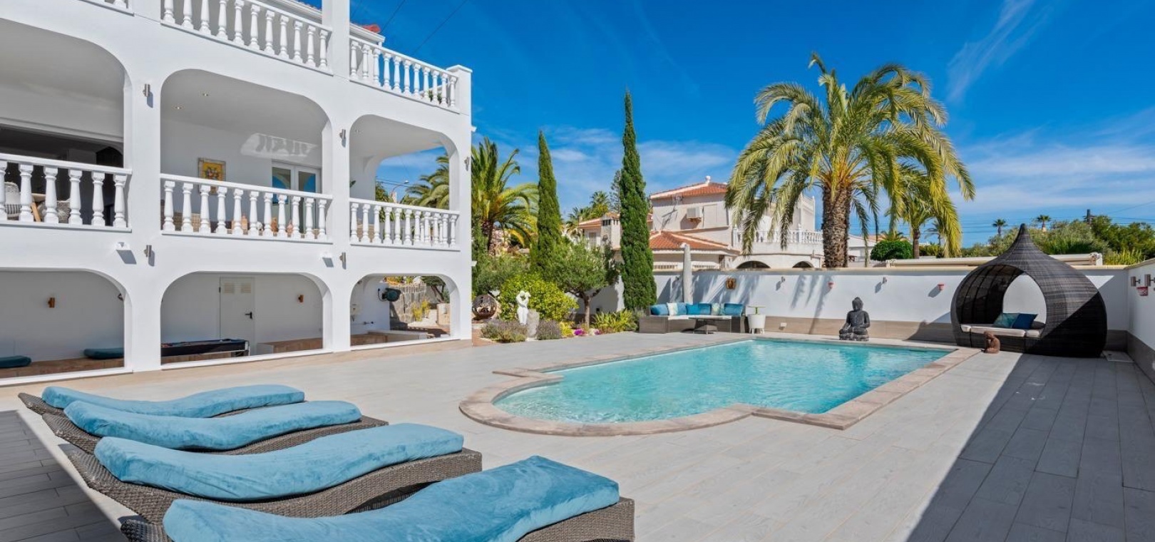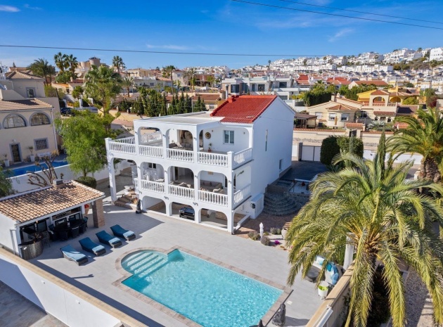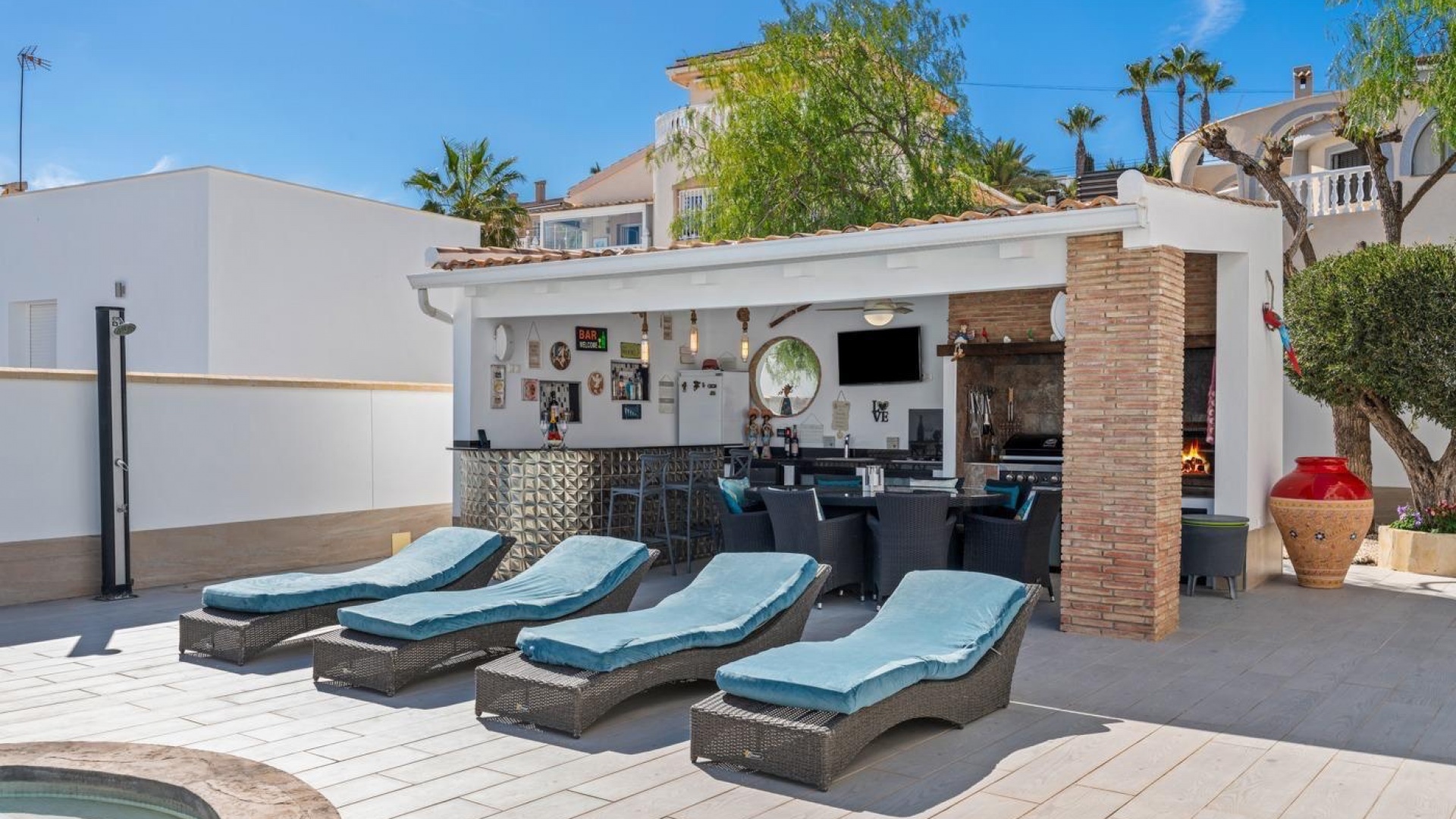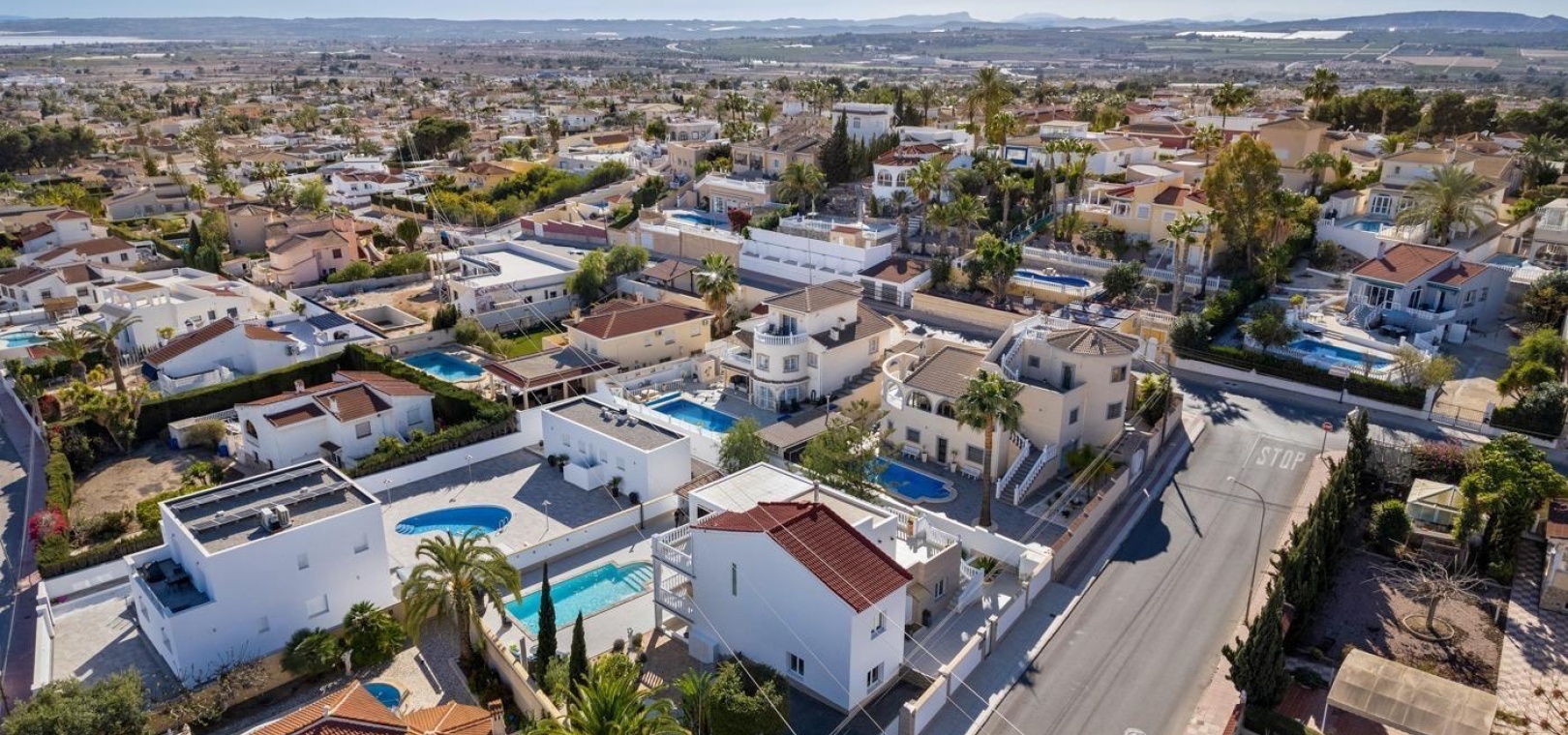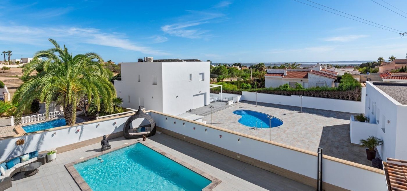 Atemberaubende Villa in Südlage mit spektakulärer Aussicht im Zentrum von Ciudad Quesada. Wir sind stolz, Ihnen diese außergewöhnliche freistehende Villa präsentieren zu können, die perfekt auf einem weitläufigen, 800 m² großen Grundstück in Südlage im Herzen von Ciudad Quesada gelegen ist. Dieses wunderschön gepflegte Haus bietet eine bebaute Gesamtfläche von 306,40 m², die durchdacht auf zwei Ebenen verteilt ist, und eine perfekte Mischung aus modernem Komfort, mediterranem Charme und Outdoor-Lebensstil. Eigenschaften der Immobilie: Diese elegante Villa bietet 4 geräumige Schlafzimmer und 3 stilvolle Badezimmer (davon 2 en-suite), eine Gästetoilette, zwei voll ausgestattete Küchen (eine innen und eine außen), ein helles und luftiges Wohnzimmer, einen Essbereich und eine vielseitig nutzbare Winterterrasse sowie eine große offene Terrasse. Erdgeschoss: Verfügt über eine offene Küche, die in einen einladenden Ess- und Wohnbereich übergeht, zwei komfortable Schlafzimmer, ein Familienbadezimmer und eine überdachte Terrasse, die ideal für entspannte Morgen oder unterhaltsame Abende ist. Erste Etage: Bietet zwei große Schlafzimmer, beide mit en-suite Badezimmern. Die Master-Suite verfügt über einen begehbaren Kleiderschrank und direkten Zugang zu einer privaten Terrasse mit atemberaubender Aussicht auf die Umgebung. Moderner Komfort und Extras: Zentrale Gasheizung und Klimaanlage (warm/kalt) im gesamten GebäudeDoppelt verglaste Sichtschutzfenster mit MoskitonetzenGemütlicher Holzkamin im WohnzimmerAutomatisches elektrisches EingangstorTeilmöbliert verkauft, bezugsfertig. Leben im Freien vom Feinsten: Betreten Sie eine private Gartenoase mit: einem beheizten Privatpool, umgeben von SonnenterrassenEine individuell gestaltete Außenküche mit zwei Grills (Gas und Holz/Holzkohle), Kühlschrank, Gefrierschrank, Weinkühler und komplettem BarbereichÜberdachte und offene Sitzbereiche für ganzjährigen GenussExterne Toilette und Waschküche für mehr KomfortFeuerstelle für gemütliche Abende unter den SternenAusreichend Parkplätze abseits der Straße hinter sicheren Toren Diese Immobilie ist eine seltene Gelegenheit für alle, die Luxus, Platz, Privatsphäre und Komfort suchen – nur einen kurzen Spaziergang von Quesadas pulsierendem Stadtzentrum, Restaurants, Geschäften und Annehmlichkeiten entfernt. Ob Sie ein Traumhaus, ein luxuriöses Feriendomizil oder eine hochwertige Mietinvestition suchen – diese Villa bietet alles. Kontaktieren Sie uns noch heute für eine private Besichtigung und erleben Sie den Charme der Villa hautnah. Sie werden begeistert sein!