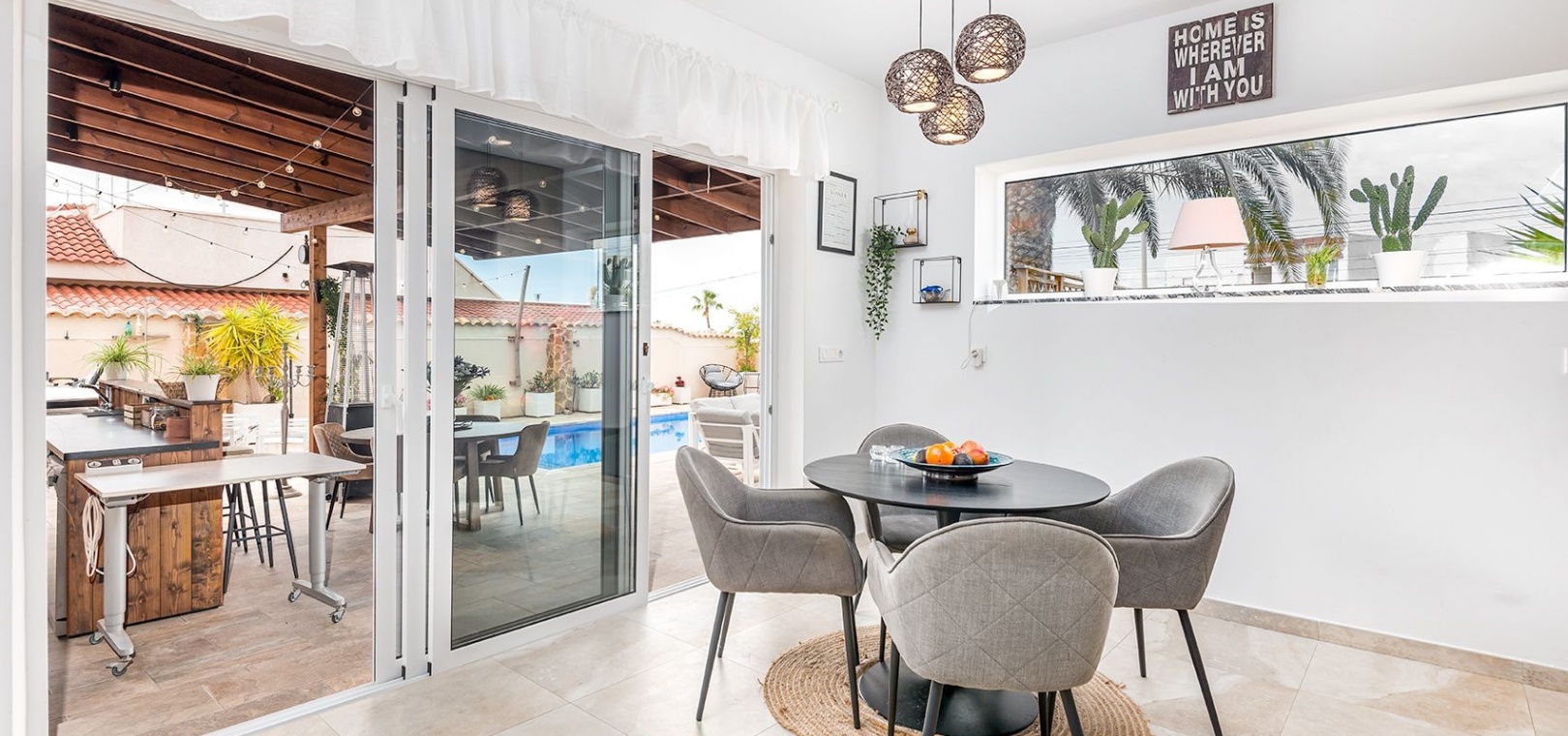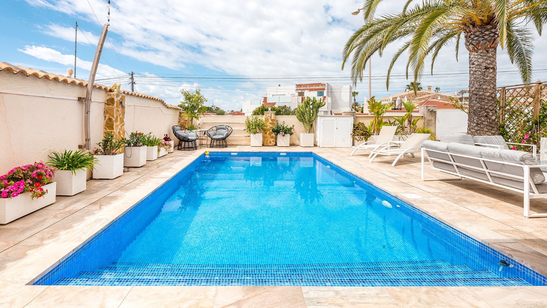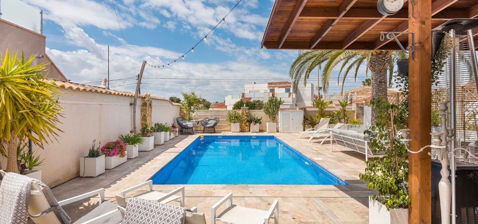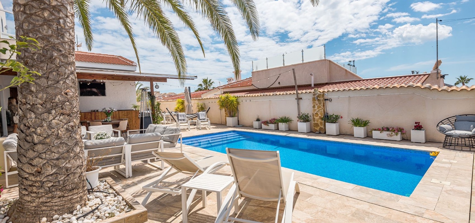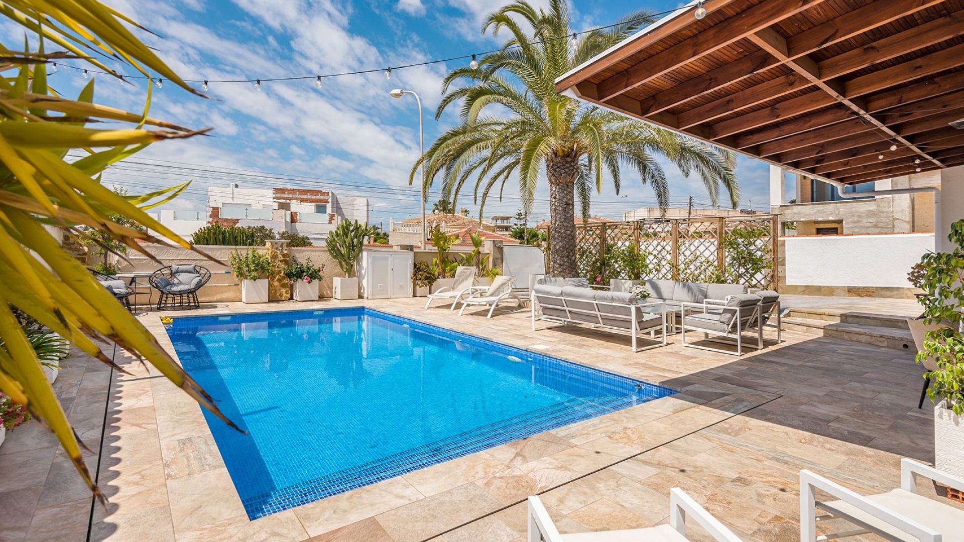Entdecken Sie Ihr Traumhaus im Herzen von Ciudad Quesada mit dieser atemberaubenden, komplett renovierten Luxusvilla, die die perfekte Mischung aus moderner Eleganz, Komfort und Outdoor-Leben bietet. Dieses geräumige Anwesen wurde 2023 sorgfältig modernisiert und bietet einen außergewöhnlichen Lebensstil, nur wenige Minuten von Golfplätzen, Annehmlichkeiten und der wunderschönen spanischen Küste entfernt. Auf einem großzügigen Grundstück von 540 m² bietet diese Villa mit ca. 139 m² gut gestalteter Wohnfläche vier Schlafzimmer, darunter eine Master-Suite mit begehbarem Kleiderschrank und eigenem Bad mit Fußbodenheizung sowie ein separates Schlafzimmer im Obergeschoss mit privatem Balkon und Panoramablick auf die Salzseen und das Meer. Das Haus verfügt über drei Badezimmer, eine moderne Küche mit großen Schiebetüren, die nahtlos auf die überdachte Terrasse führen, eine helle TV-Lounge und ein separates Home-Office – perfekt für den modernen Lebensstil. Treten Sie ein in Ihr privates Paradies mit einem großen, nach Südwesten ausgerichteten Garten, einem 4 x 8 m großen Salzwasserpool und einer Sommerküche mit Kühl-, Gefrierschrank und Geschirrspüler – ideal für die Unterhaltung Ihrer Gäste. Die großzügigen Außenbereiche umfassen eine Poolbar, einen Essbereich, Sonnenliegen und eine Außendusche. All dies eingebettet in einen wunderschön angelegten Garten mit alten Obstbäumen wie Mandarinen, Orangen, Kiwis, Limetten, Passionsfrüchten und Mangos. Die automatische Bewässerung sorgt für mühelose Pflege. Die Villa ist mit einer zentralen Klimaanlage, zusätzlichen Split-Geräten für optimale Klimatisierung sowie Fußbodenheizung in den Bädern und der Küche ausgestattet. Ein sicherer Parkplatz für zwei Autos mit einem automatischen Tor sorgt für zusätzlichen Komfort und Sicherheit. Nur 1,5 km vom lebhaften Stadtzentrum von Ciudad Quesada und etwa 2 km vom Golfplatz La Marquesa entfernt, bietet dieses Haus Ruhe und einfachen Zugang zu Geschäften, Restaurants, Bars, Fitnessstudios und einer renommierten Bodega. Die atemberaubenden Strände sind nur 8 km entfernt, und der Flughafen Alicante ist bequem in 38 km erreichbar. Diese luxuriöse und vollständig renovierte Villa vereint modernes Design, funktionale Wohnräume und außergewöhnliche Außenanlagen und ist damit ein ideales Zuhause für anspruchsvolle Käufer, die Komfort, Stil und eine erstklassige Lage suchen. Willkommen in Ihrem neuen Paradies – Ihr perfekter spanischer Rückzugsort erwartet Sie!