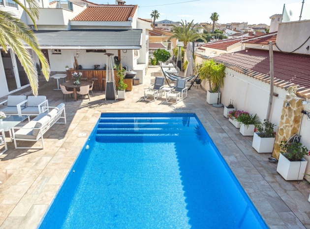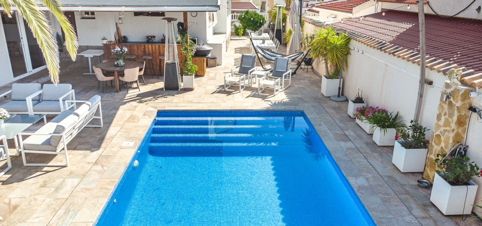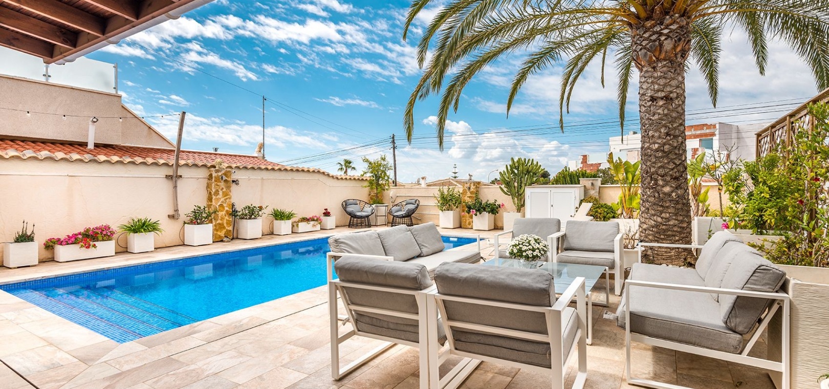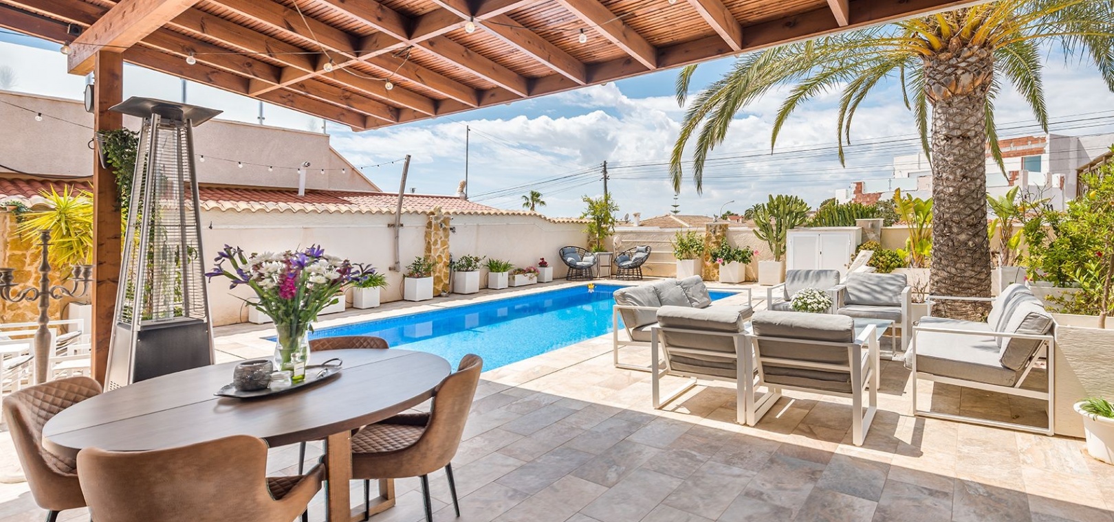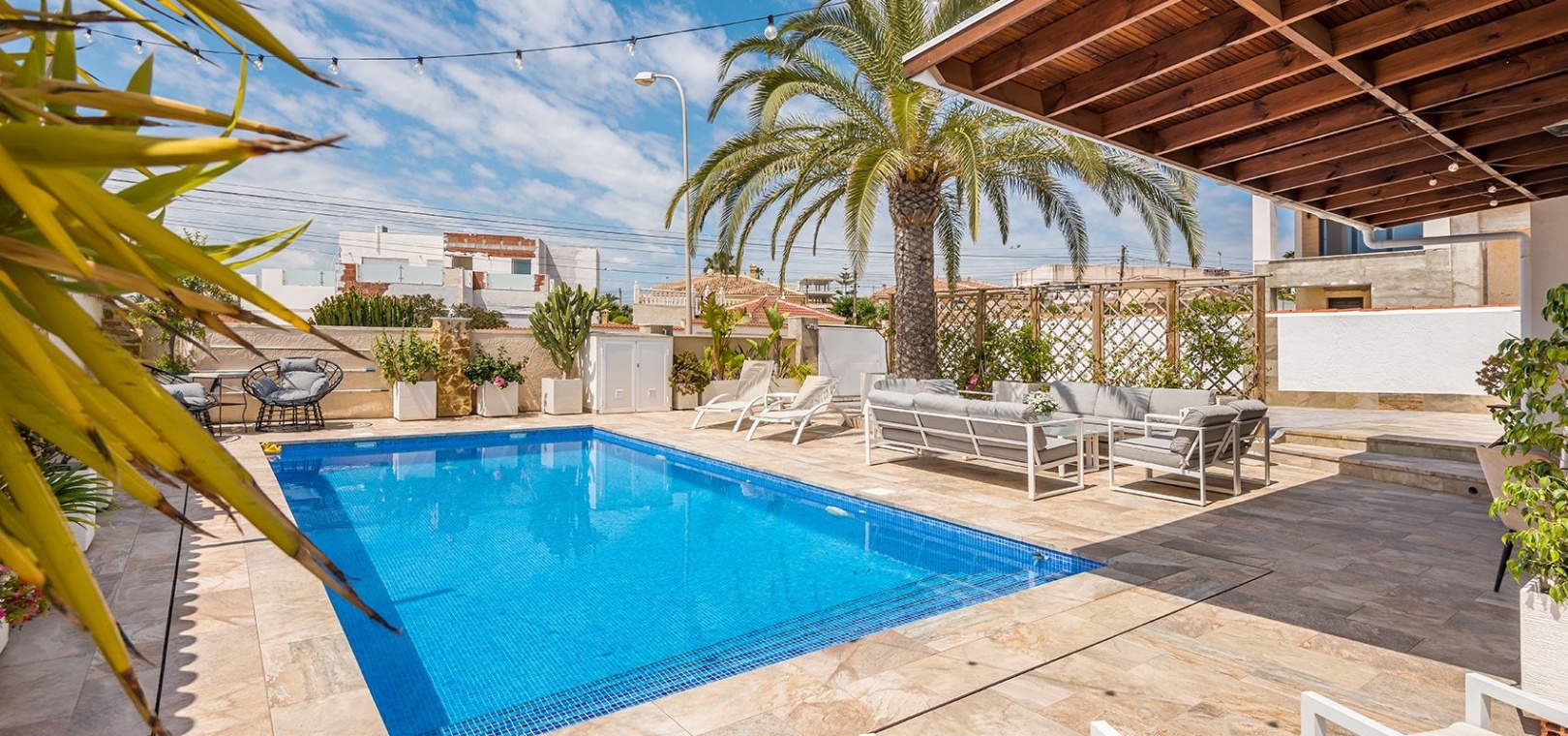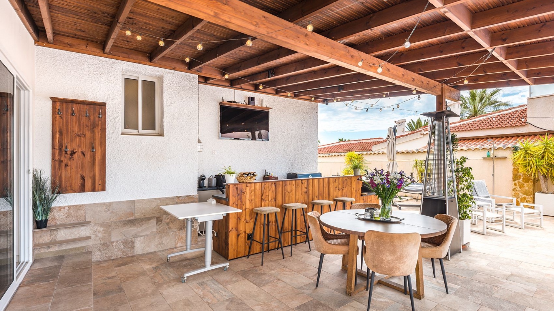 Entdecken Sie Ihr Traumhaus im Herzen von Ciudad Quesada mit dieser atemberaubenden, komplett renovierten Luxusvilla, die die perfekte Mischung aus moderner Eleganz, Komfort und Outdoor-Leben bietet. Dieses geräumige Anwesen wurde 2023 sorgfältig modernisiert und bietet einen außergewöhnlichen Lebensstil, nur wenige Minuten von Golfplätzen, Annehmlichkeiten und der wunderschönen spanischen Küste entfernt. Auf einem großzügigen Grundstück von 540 m² bietet diese Villa mit ca. 139 m² gut gestalteter Wohnfläche vier Schlafzimmer, darunter eine Master-Suite mit begehbarem Kleiderschrank und eigenem Bad mit Fußbodenheizung sowie ein separates Schlafzimmer im Obergeschoss mit privatem Balkon und Panoramablick auf die Salzseen und das Meer. Das Haus verfügt über drei Badezimmer, eine moderne Küche mit großen Schiebetüren, die nahtlos auf die überdachte Terrasse führen, eine helle TV-Lounge und ein separates Home-Office – perfekt für den modernen Lebensstil. Treten Sie ein in Ihr privates Paradies mit einem großen, nach Südwesten ausgerichteten Garten, einem 4 x 8 m großen Salzwasserpool und einer Sommerküche mit Kühl-, Gefrierschrank und Geschirrspüler – ideal für die Unterhaltung Ihrer Gäste. Die großzügigen Außenbereiche umfassen eine Poolbar, einen Essbereich, Sonnenliegen und eine Außendusche. All dies eingebettet in einen wunderschön angelegten Garten mit alten Obstbäumen wie Mandarinen, Orangen, Kiwis, Limetten, Passionsfrüchten und Mangos. Die automatische Bewässerung sorgt für mühelose Pflege. Die Villa ist mit einer zentralen Klimaanlage, zusätzlichen Split-Geräten für optimale Klimatisierung sowie Fußbodenheizung in den Bädern und der Küche ausgestattet. Ein sicherer Parkplatz für zwei Autos mit einem automatischen Tor sorgt für zusätzlichen Komfort und Sicherheit. Nur 1,5 km vom lebhaften Stadtzentrum von Ciudad Quesada und etwa 2 km vom Golfplatz La Marquesa entfernt, bietet dieses Haus Ruhe und einfachen Zugang zu Geschäften, Restaurants, Bars, Fitnessstudios und einer renommierten Bodega. Die atemberaubenden Strände sind nur 8 km entfernt, und der Flughafen Alicante ist bequem in 38 km erreichbar. Diese luxuriöse und vollständig renovierte Villa vereint modernes Design, funktionale Wohnräume und außergewöhnliche Außenanlagen und ist damit ein ideales Zuhause für anspruchsvolle Käufer, die Komfort, Stil und eine erstklassige Lage suchen. Willkommen in Ihrem neuen Paradies – Ihr perfekter spanischer Rückzugsort erwartet Sie!
