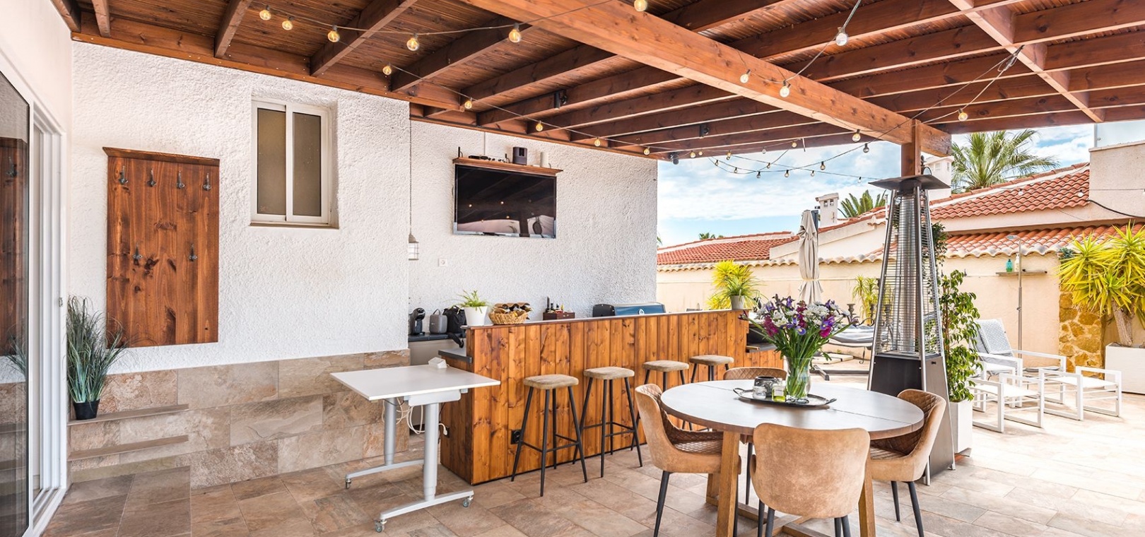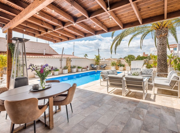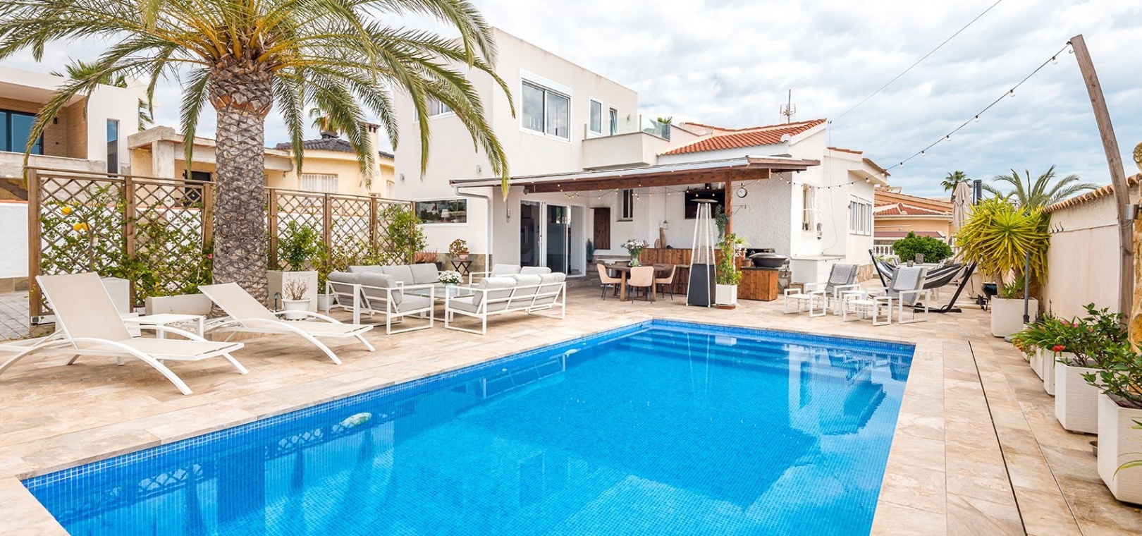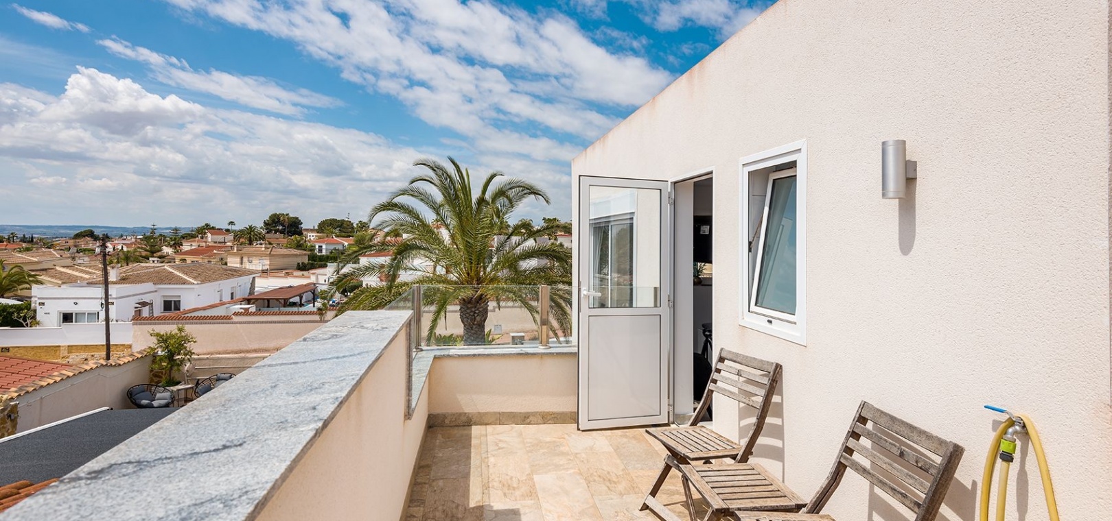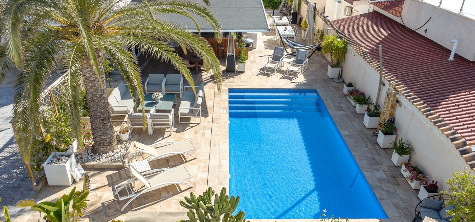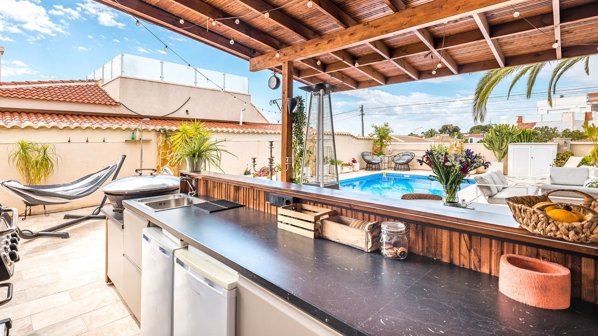 Entdecken Sie Ihr Traumhaus im Herzen von Ciudad Quesada mit dieser atemberaubenden, komplett renovierten Luxusvilla, die die perfekte Mischung aus moderner Eleganz, Komfort und Outdoor-Leben bietet. Dieses geräumige Anwesen wurde 2023 sorgfältig modernisiert und bietet einen außergewöhnlichen Lebensstil, nur wenige Minuten von Golfplätzen, Annehmlichkeiten und der wunderschönen spanischen Küste entfernt. Auf einem großzügigen Grundstück von 540 m² bietet diese Villa mit ca. 139 m² gut gestalteter Wohnfläche vier Schlafzimmer, darunter eine Master-Suite mit begehbarem Kleiderschrank und eigenem Bad mit Fußbodenheizung sowie ein separates Schlafzimmer im Obergeschoss mit privatem Balkon und Panoramablick auf die Salzseen und das Meer. Das Haus verfügt über drei Badezimmer, eine moderne Küche mit großen Schiebetüren, die nahtlos auf die überdachte Terrasse führen, eine helle TV-Lounge und ein separates Home-Office – perfekt für den modernen Lebensstil. Treten Sie ein in Ihr privates Paradies mit einem großen, nach Südwesten ausgerichteten Garten, einem 4 x 8 m großen Salzwasserpool und einer Sommerküche mit Kühl-, Gefrierschrank und Geschirrspüler – ideal für die Unterhaltung Ihrer Gäste. Die großzügigen Außenbereiche umfassen eine Poolbar, einen Essbereich, Sonnenliegen und eine Außendusche. All dies eingebettet in einen wunderschön angelegten Garten mit alten Obstbäumen wie Mandarinen, Orangen, Kiwis, Limetten, Passionsfrüchten und Mangos. Die automatische Bewässerung sorgt für mühelose Pflege. Die Villa ist mit einer zentralen Klimaanlage, zusätzlichen Split-Geräten für optimale Klimatisierung sowie Fußbodenheizung in den Bädern und der Küche ausgestattet. Ein sicherer Parkplatz für zwei Autos mit einem automatischen Tor sorgt für zusätzlichen Komfort und Sicherheit. Nur 1,5 km vom lebhaften Stadtzentrum von Ciudad Quesada und etwa 2 km vom Golfplatz La Marquesa entfernt, bietet dieses Haus Ruhe und einfachen Zugang zu Geschäften, Restaurants, Bars, Fitnessstudios und einer renommierten Bodega. Die atemberaubenden Strände sind nur 8 km entfernt, und der Flughafen Alicante ist bequem in 38 km erreichbar. Diese luxuriöse und vollständig renovierte Villa vereint modernes Design, funktionale Wohnräume und außergewöhnliche Außenanlagen und ist damit ein ideales Zuhause für anspruchsvolle Käufer, die Komfort, Stil und eine erstklassige Lage suchen. Willkommen in Ihrem neuen Paradies – Ihr perfekter spanischer Rückzugsort erwartet Sie!