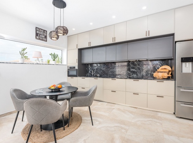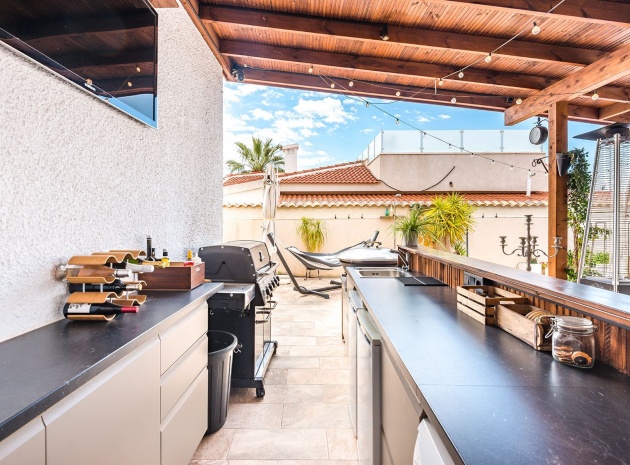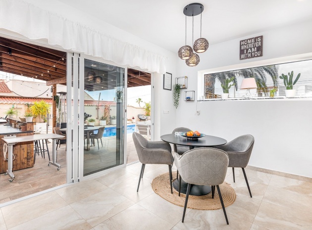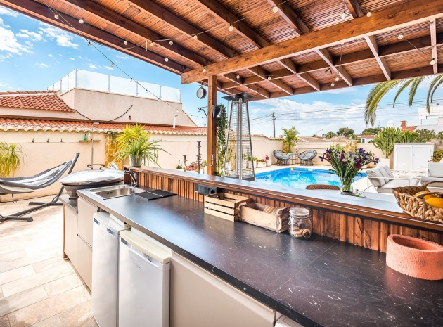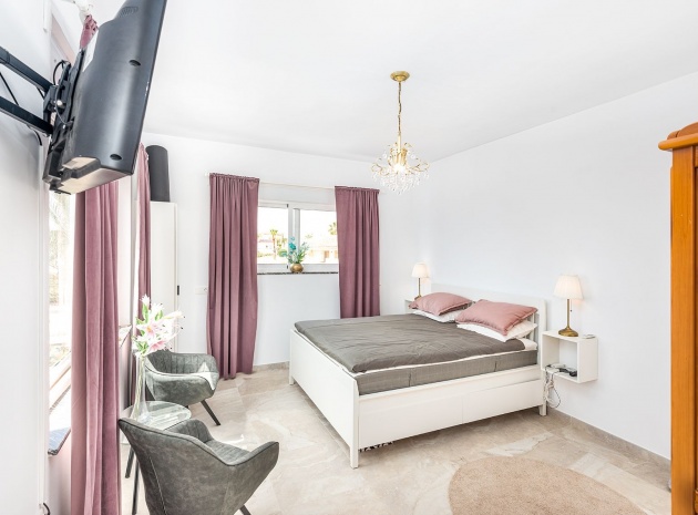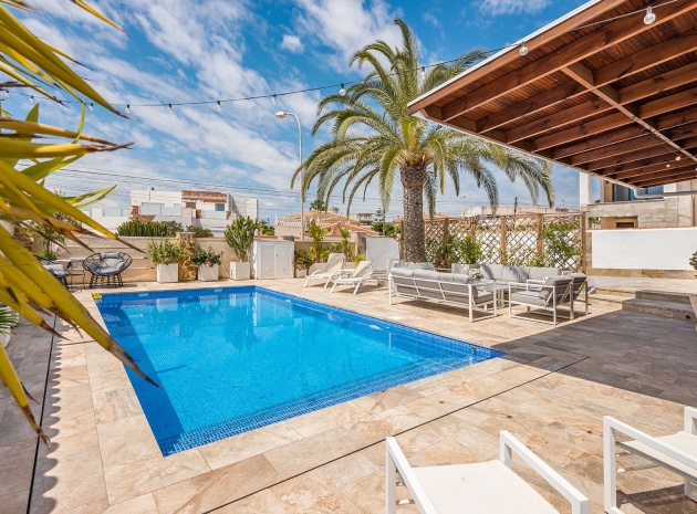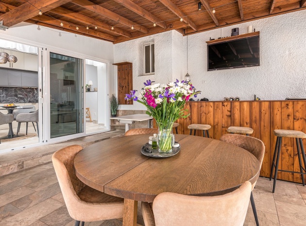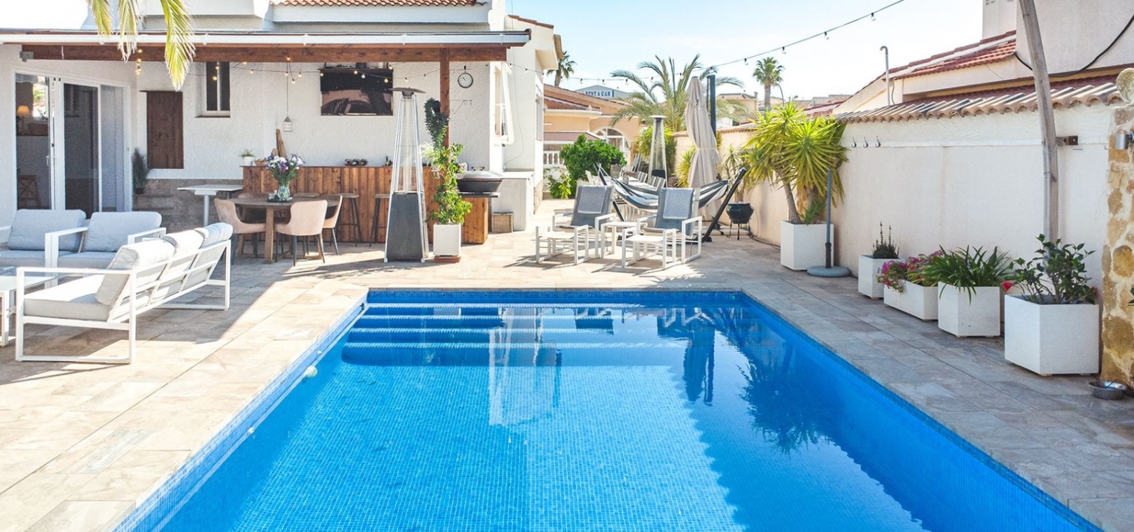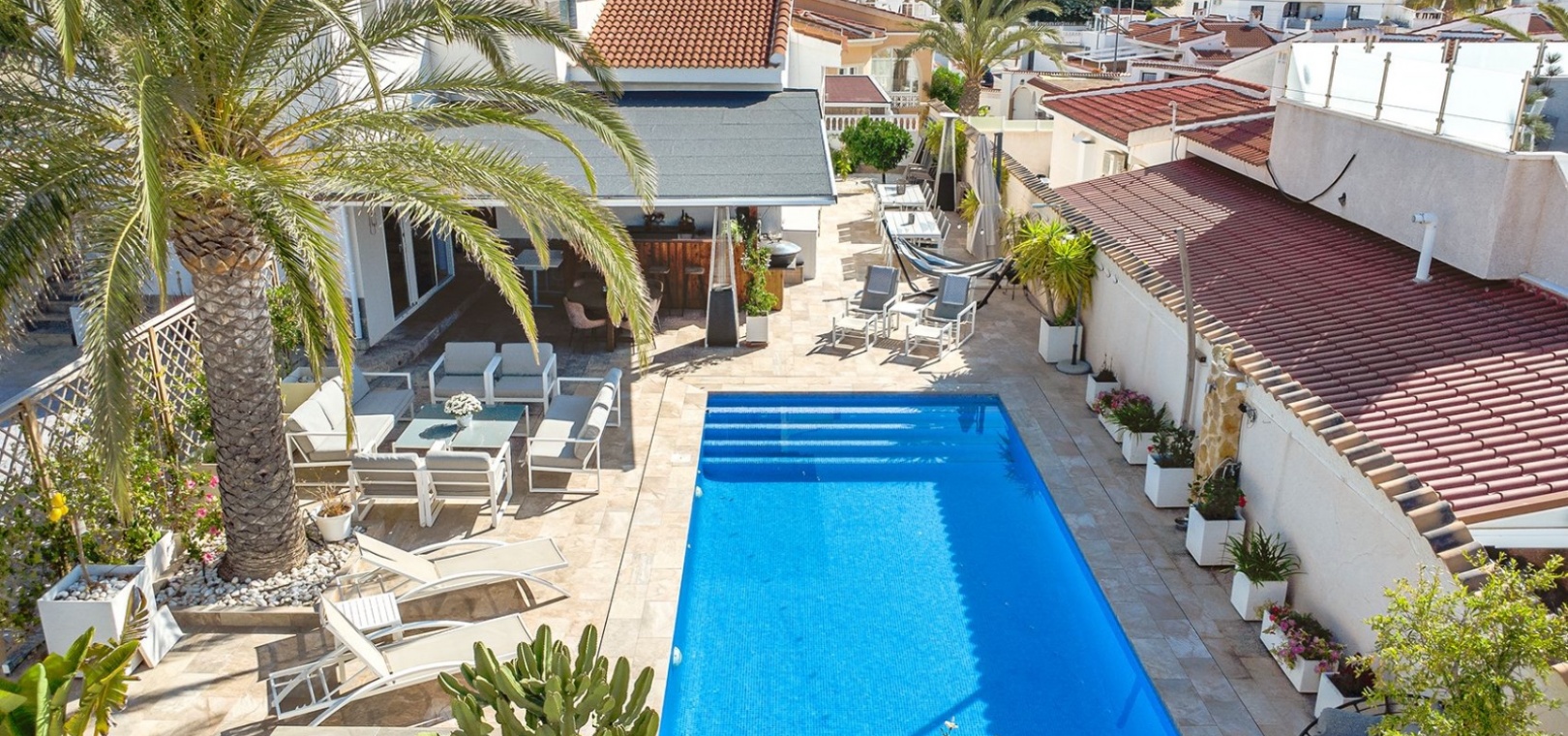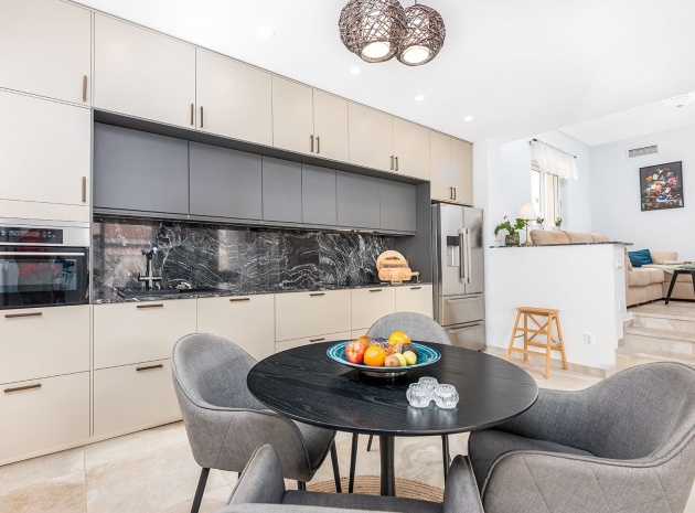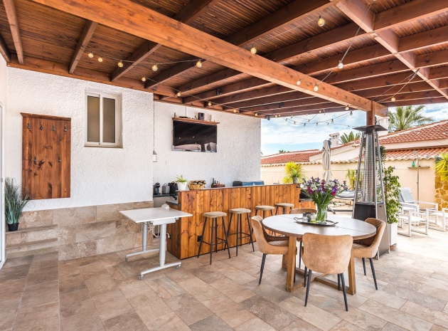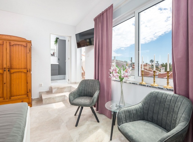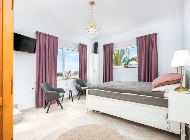 Entdecken Sie Ihr Traumhaus im Herzen von Ciudad Quesada mit dieser atemberaubenden, komplett renovierten Luxusvilla, die die perfekte Mischung aus moderner Eleganz, Komfort und Outdoor-Leben bietet. Dieses geräumige Anwesen wurde 2023 sorgfältig modernisiert und bietet einen außergewöhnlichen Lebensstil, nur wenige Minuten von Golfplätzen, Annehmlichkeiten und der wunderschönen spanischen Küste entfernt. Auf einem großzügigen Grundstück von 540 m² bietet diese Villa mit ca. 139 m² gut gestalteter Wohnfläche vier Schlafzimmer, darunter eine Master-Suite mit begehbarem Kleiderschrank und eigenem Bad mit Fußbodenheizung sowie ein separates Schlafzimmer im Obergeschoss mit privatem Balkon und Panoramablick auf die Salzseen und das Meer. Das Haus verfügt über drei Badezimmer, eine moderne Küche mit großen Schiebetüren, die nahtlos auf die überdachte Terrasse führen, eine helle TV-Lounge und ein separates Home-Office – perfekt für den modernen Lebensstil. Treten Sie ein in Ihr privates Paradies mit einem großen, nach Südwesten ausgerichteten Garten, einem 4 x 8 m großen Salzwasserpool und einer Sommerküche mit Kühl-, Gefrierschrank und Geschirrspüler – ideal für die Unterhaltung Ihrer Gäste. Die großzügigen Außenbereiche umfassen eine Poolbar, einen Essbereich, Sonnenliegen und eine Außendusche. All dies eingebettet in einen wunderschön angelegten Garten mit alten Obstbäumen wie Mandarinen, Orangen, Kiwis, Limetten, Passionsfrüchten und Mangos. Die automatische Bewässerung sorgt für mühelose Pflege. Die Villa ist mit einer zentralen Klimaanlage, zusätzlichen Split-Geräten für optimale Klimatisierung sowie Fußbodenheizung in den Bädern und der Küche ausgestattet. Ein sicherer Parkplatz für zwei Autos mit einem automatischen Tor sorgt für zusätzlichen Komfort und Sicherheit. Nur 1,5 km vom lebhaften Stadtzentrum von Ciudad Quesada und etwa 2 km vom Golfplatz La Marquesa entfernt, bietet dieses Haus Ruhe und einfachen Zugang zu Geschäften, Restaurants, Bars, Fitnessstudios und einer renommierten Bodega. Die atemberaubenden Strände sind nur 8 km entfernt, und der Flughafen Alicante ist bequem in 38 km erreichbar. Diese luxuriöse und vollständig renovierte Villa vereint modernes Design, funktionale Wohnräume und außergewöhnliche Außenanlagen und ist damit ein ideales Zuhause für anspruchsvolle Käufer, die Komfort, Stil und eine erstklassige Lage suchen. Willkommen in Ihrem neuen Paradies – Ihr perfekter spanischer Rückzugsort erwartet Sie!
