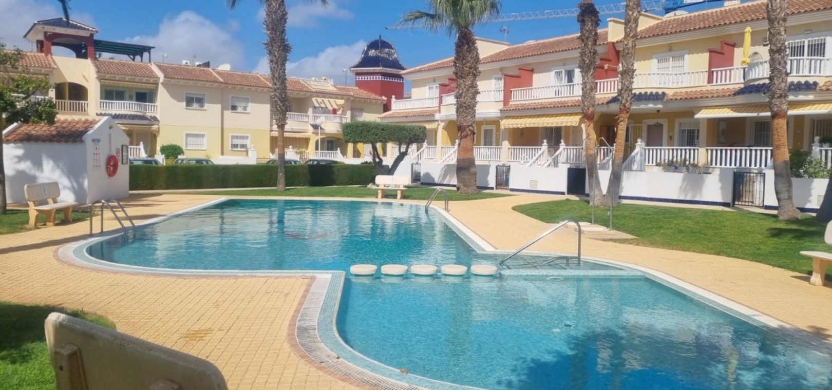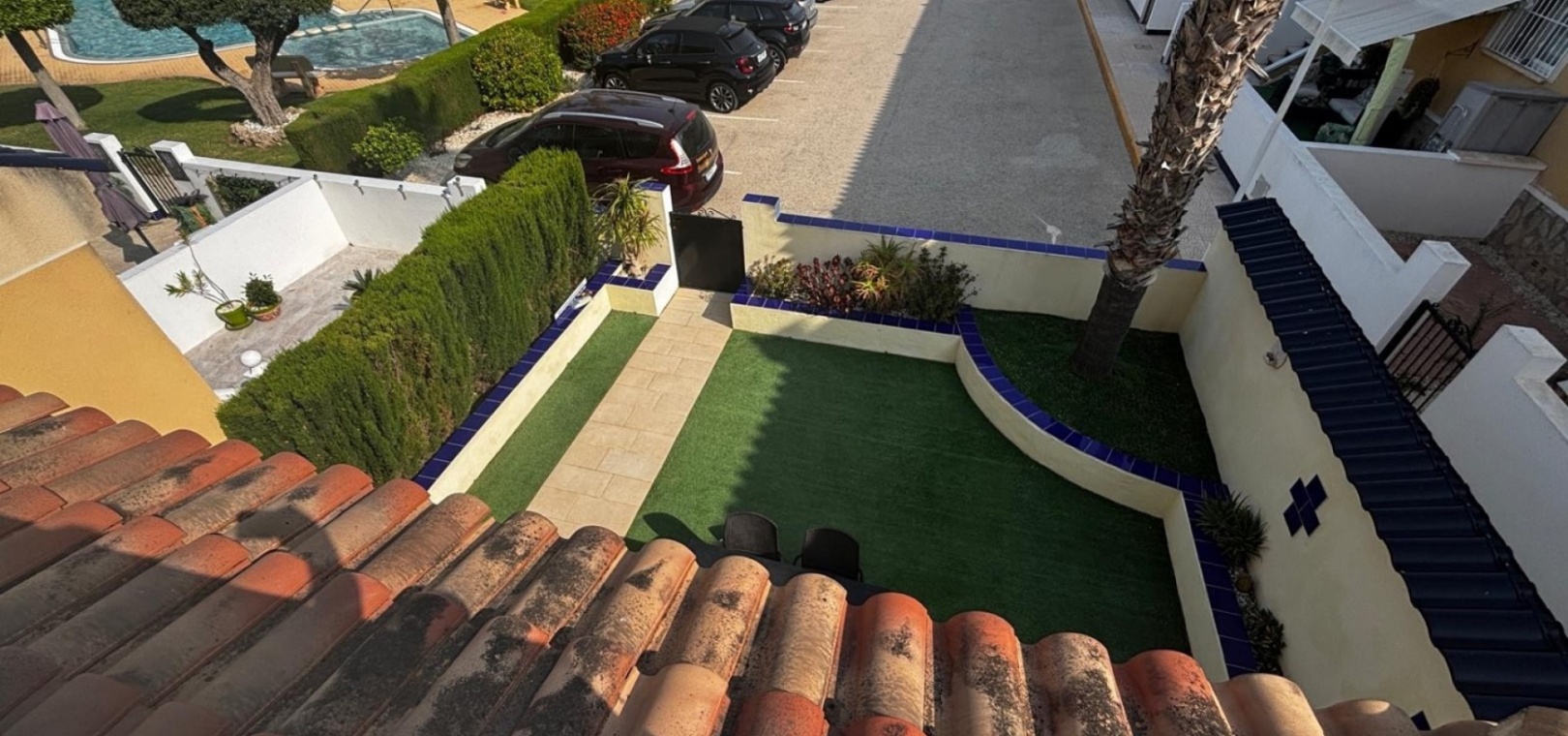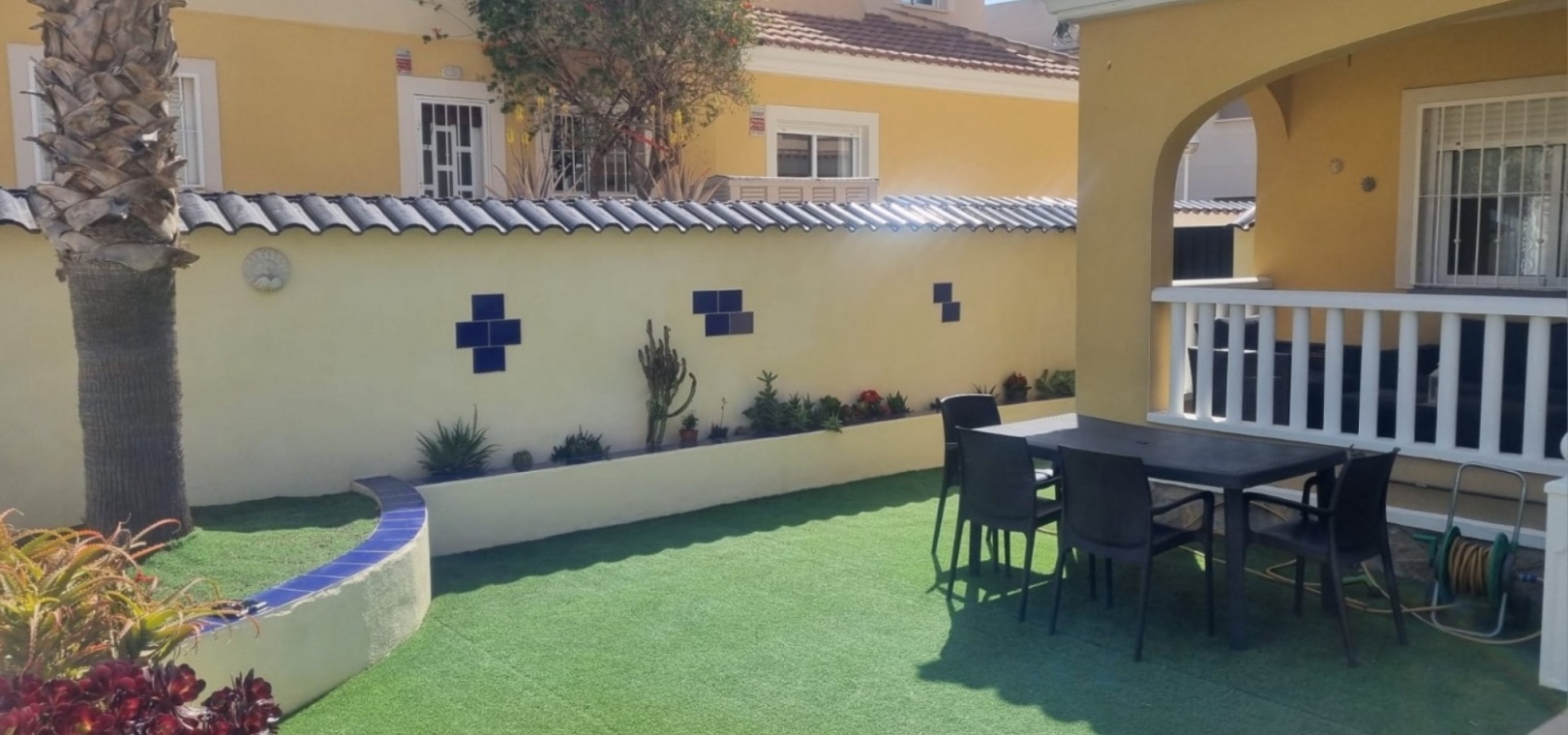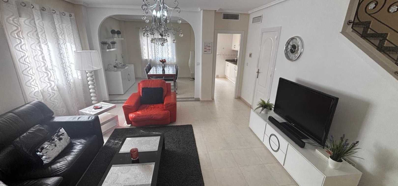 Wir freuen uns, Ihnen dieses beeindruckende Doppelhaus im Lola-Stil mit 2/3 Schlafzimmern anbieten zu können. Es wurde 2007 von Euromarina erbaut und liegt in der begehrten Wohngegend Dona Pepa in einer geschlossenen Anlage. Die Immobilie wurde von den derzeitigen Eigentümern hochwertig modernisiert. Sie profitiert von ihrer Ecklage und verfügt über Gärten vorne und hinten sowie einen Seiteneingang. Die Außenmauern wurden erhöht, um für mehr Privatsphäre zu sorgen. Ein Außenwirtschaftsraum mit Waschmaschine und Abstellraum wurde hinzugefügt. Im Inneren der Immobilie haben die derzeitigen Eigentümer einen Wohn- und Essbereich erhalten. Dieser Essbereich kann bei Bedarf problemlos in ein drittes Schlafzimmer umgewandelt werden. Die Möblierung ist von außergewöhnlicher Qualität. Diese Immobilie ist schlüsselfertig und Sie können sie vom ersten Moment an genießen. Die kleine Wohnanlage Alegria bietet einen fantastischen Gemeinschaftspool mit wunderschönen Gärten. Verschiedene Supermärkte, Bars und Restaurants sind bequem zu Fuß erreichbar.