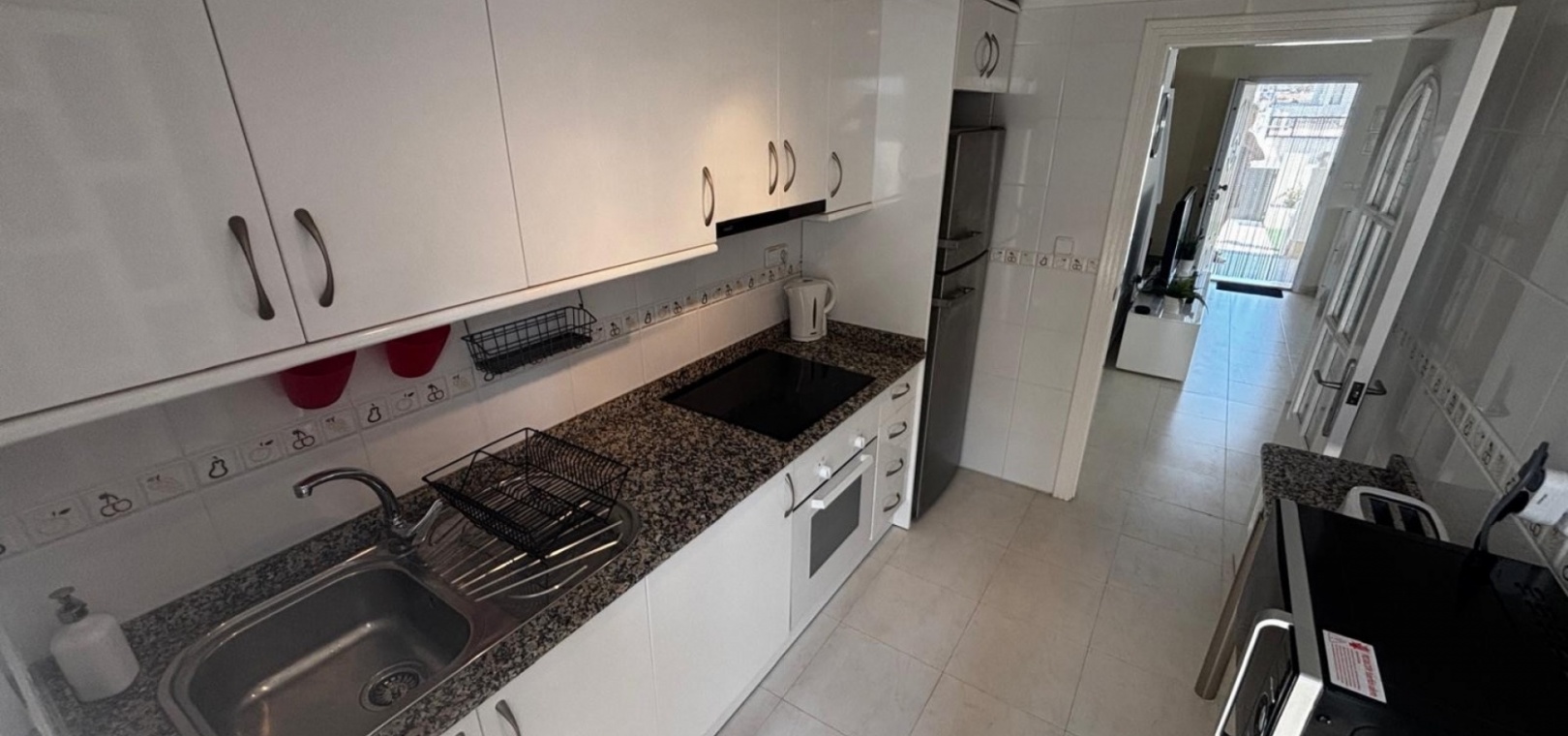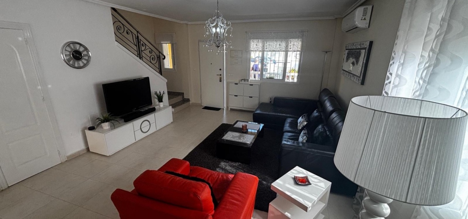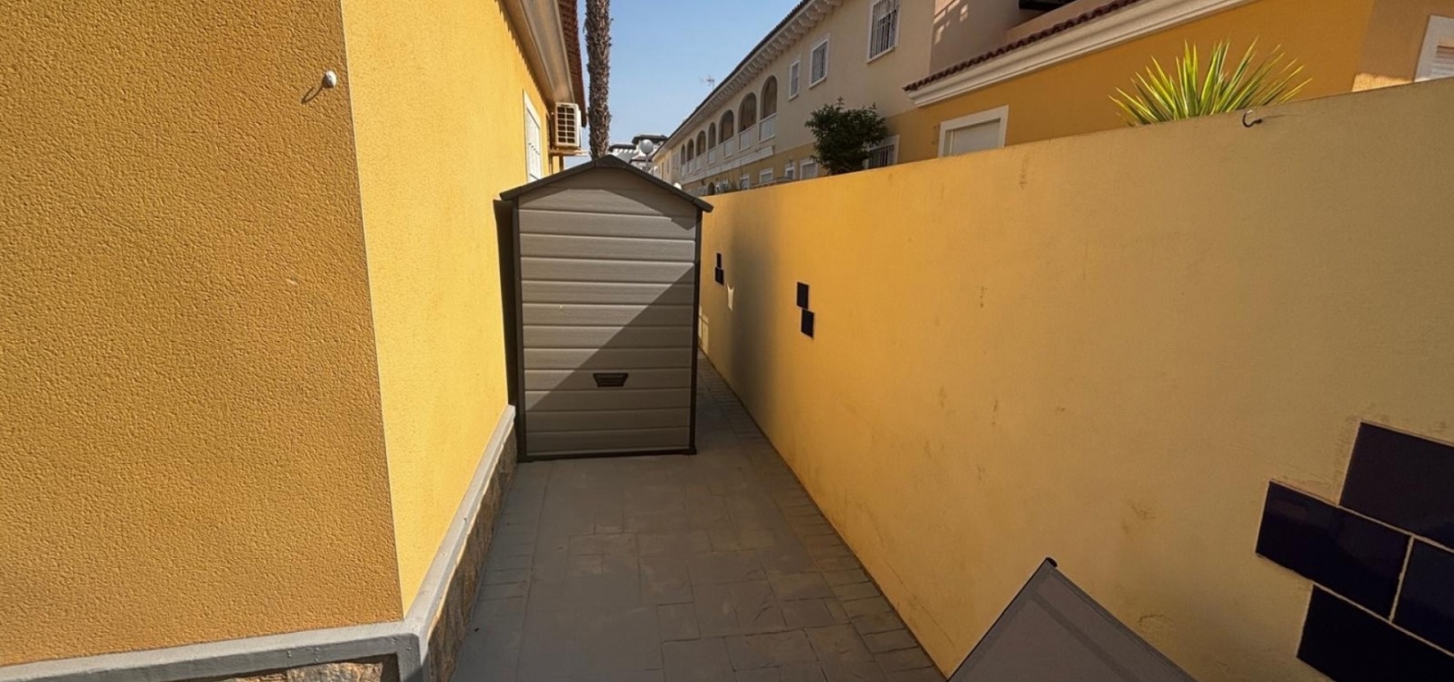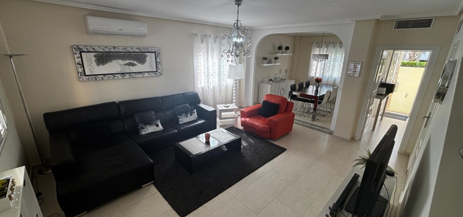 Wir freuen uns, Ihnen dieses beeindruckende Doppelhaus im Lola-Stil mit 2/3 Schlafzimmern anbieten zu können. Es wurde 2007 von Euromarina erbaut und liegt in der begehrten Wohngegend Dona Pepa in einer geschlossenen Anlage. Die Immobilie wurde von den derzeitigen Eigentümern hochwertig modernisiert. Sie profitiert von ihrer Ecklage und verfügt über Gärten vorne und hinten sowie einen Seiteneingang. Die Außenmauern wurden erhöht, um für mehr Privatsphäre zu sorgen. Ein Außenwirtschaftsraum mit Waschmaschine und Abstellraum wurde hinzugefügt. Im Inneren der Immobilie haben die derzeitigen Eigentümer einen Wohn- und Essbereich erhalten. Dieser Essbereich kann bei Bedarf problemlos in ein drittes Schlafzimmer umgewandelt werden. Die Möblierung ist von außergewöhnlicher Qualität. Diese Immobilie ist schlüsselfertig und Sie können sie vom ersten Moment an genießen. Die kleine Wohnanlage Alegria bietet einen fantastischen Gemeinschaftspool mit wunderschönen Gärten. Verschiedene Supermärkte, Bars und Restaurants sind bequem zu Fuß erreichbar.