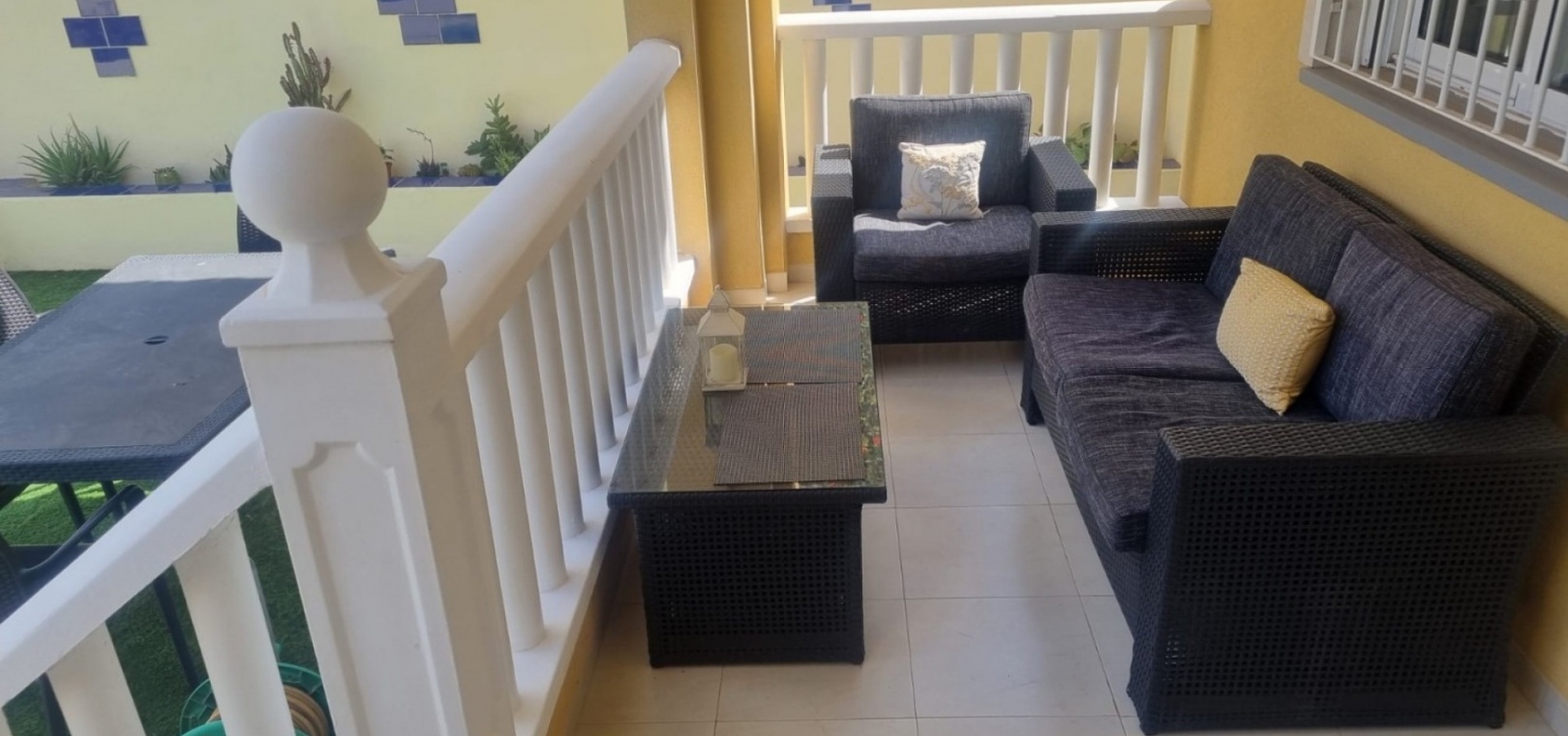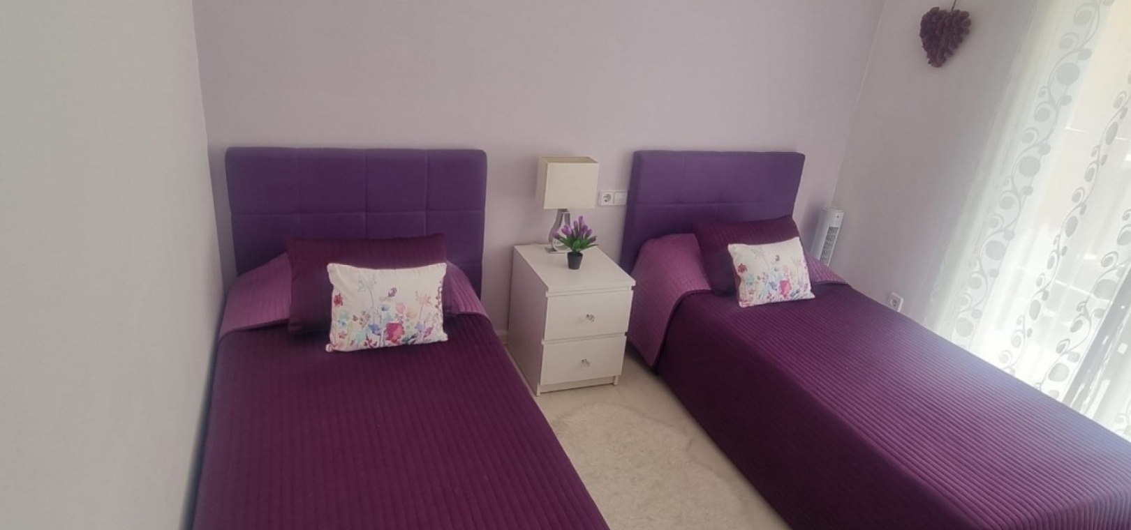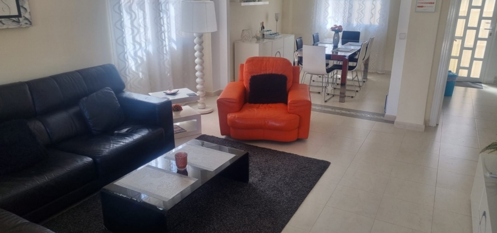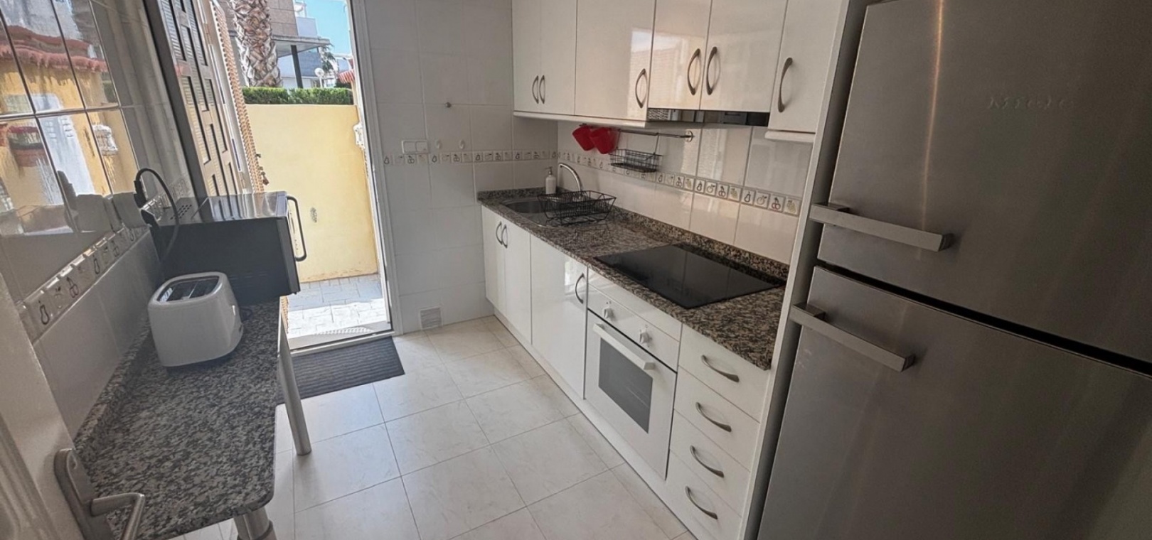 Wir freuen uns, Ihnen dieses beeindruckende Doppelhaus im Lola-Stil mit 2/3 Schlafzimmern anbieten zu können. Es wurde 2007 von Euromarina erbaut und liegt in der begehrten Wohngegend Dona Pepa in einer geschlossenen Anlage. Die Immobilie wurde von den derzeitigen Eigentümern hochwertig modernisiert. Sie profitiert von ihrer Ecklage und verfügt über Gärten vorne und hinten sowie einen Seiteneingang. Die Außenmauern wurden erhöht, um für mehr Privatsphäre zu sorgen. Ein Außenwirtschaftsraum mit Waschmaschine und Abstellraum wurde hinzugefügt. Im Inneren der Immobilie haben die derzeitigen Eigentümer einen Wohn- und Essbereich erhalten. Dieser Essbereich kann bei Bedarf problemlos in ein drittes Schlafzimmer umgewandelt werden. Die Möblierung ist von außergewöhnlicher Qualität. Diese Immobilie ist schlüsselfertig und Sie können sie vom ersten Moment an genießen. Die kleine Wohnanlage Alegria bietet einen fantastischen Gemeinschaftspool mit wunderschönen Gärten. Verschiedene Supermärkte, Bars und Restaurants sind bequem zu Fuß erreichbar.