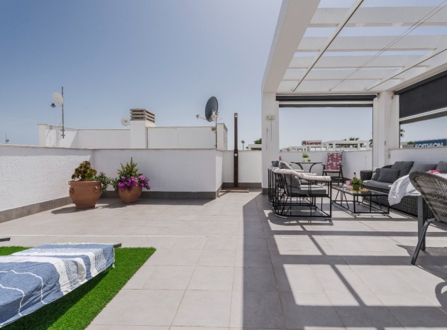 Dieses wunderschön gepflegte Penthouse mit 2 Schlafzimmern befindet sich im renommierten Oasis Beach-Komplex und bietet modernen Komfort, außergewöhnliches Leben im Freien und unschlagbaren Zugang zum Zenia Boulevard und dem Strand La Zenia.