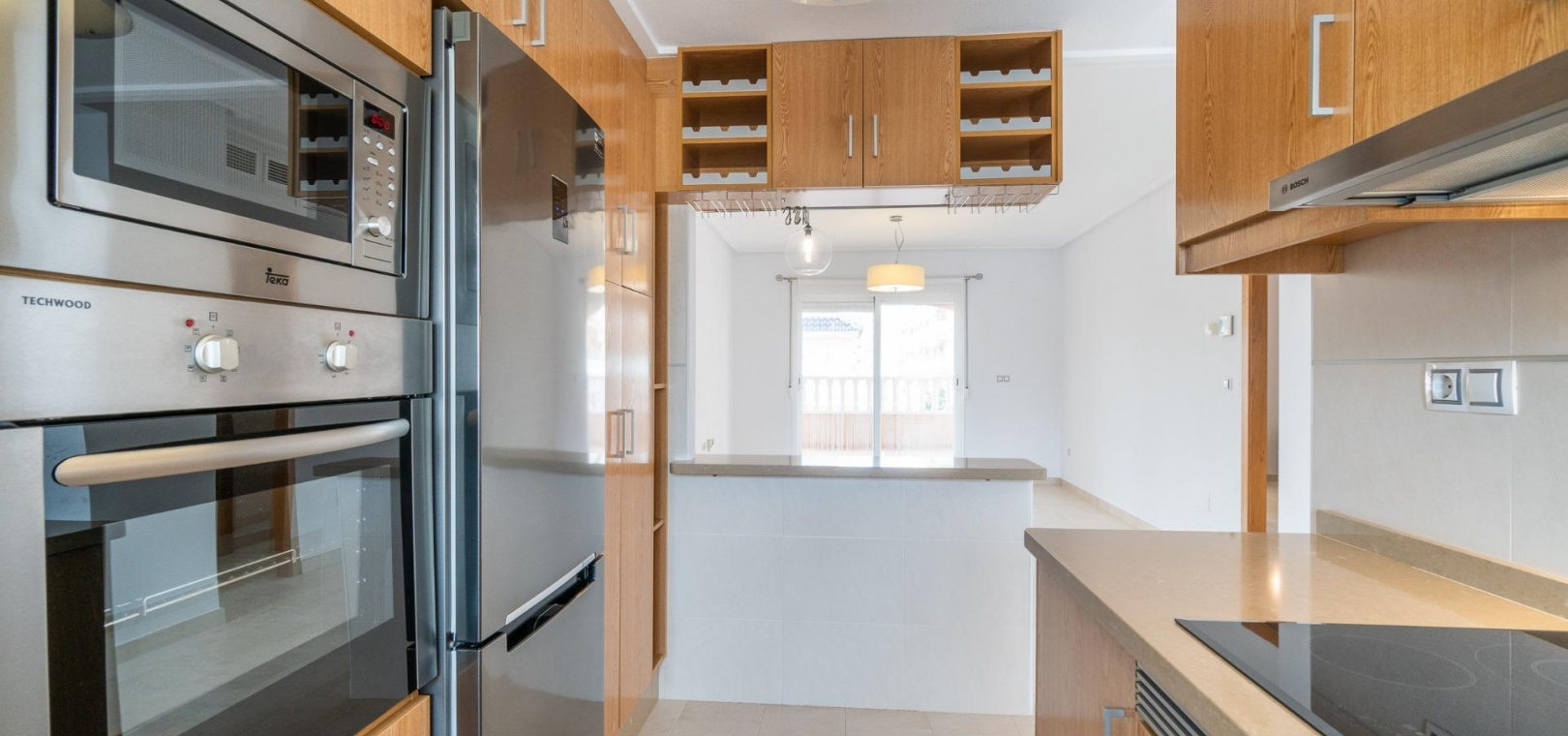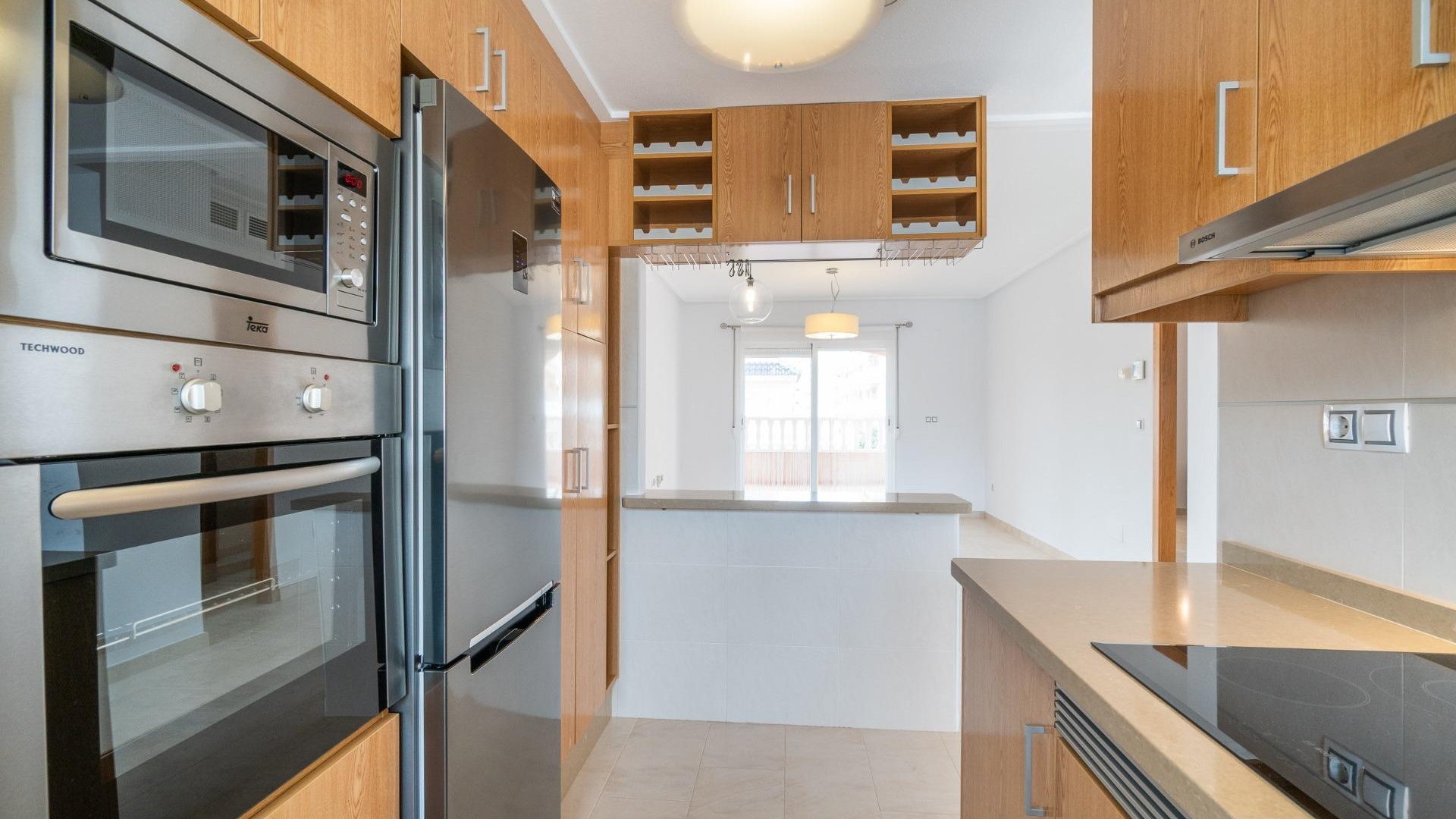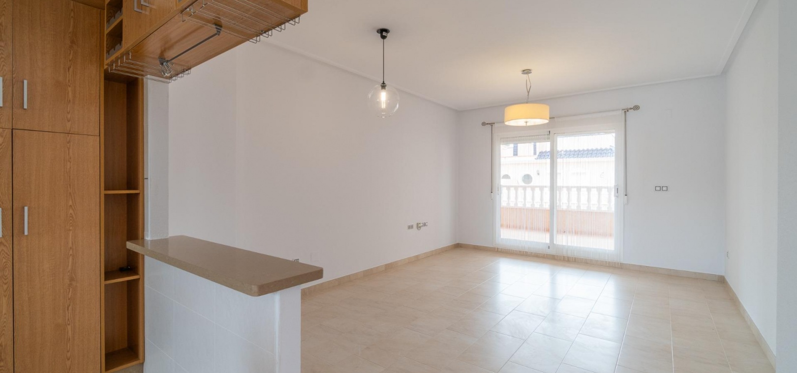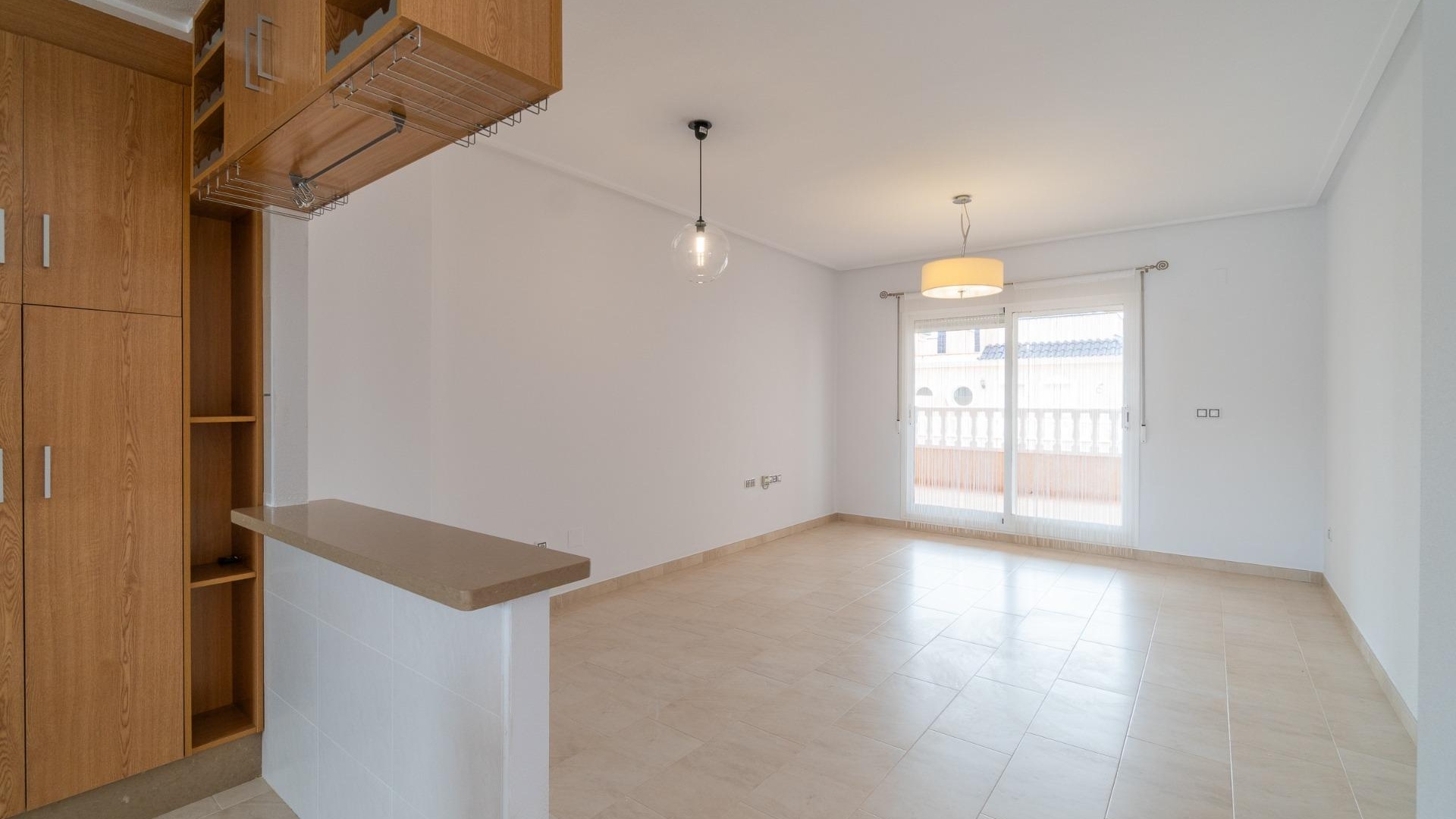 Das Anwesen bietet zwei Doppelschlafzimmer, ein komplettes Badezimmer, eine moderne offene Küche und einen geräumigen Wohn-Essbereich mit Zugang zu einer 20 m² großen Terrasse – ideal für ein Frühstück im Freien oder entspannte Abende nach einem Tag am Strand. Da es unmöbliert verkauft wird, haben Sie die Freiheit, es nach Ihrem Geschmack zu dekorieren und zu personalisieren.