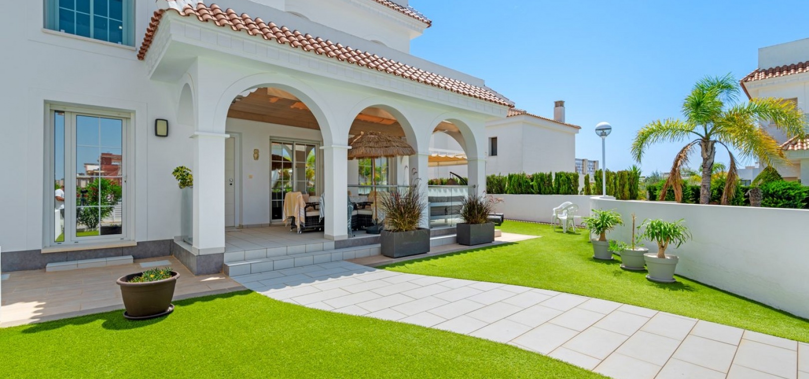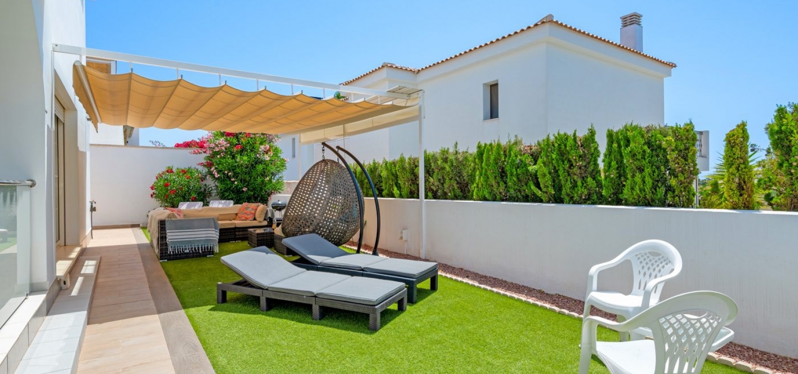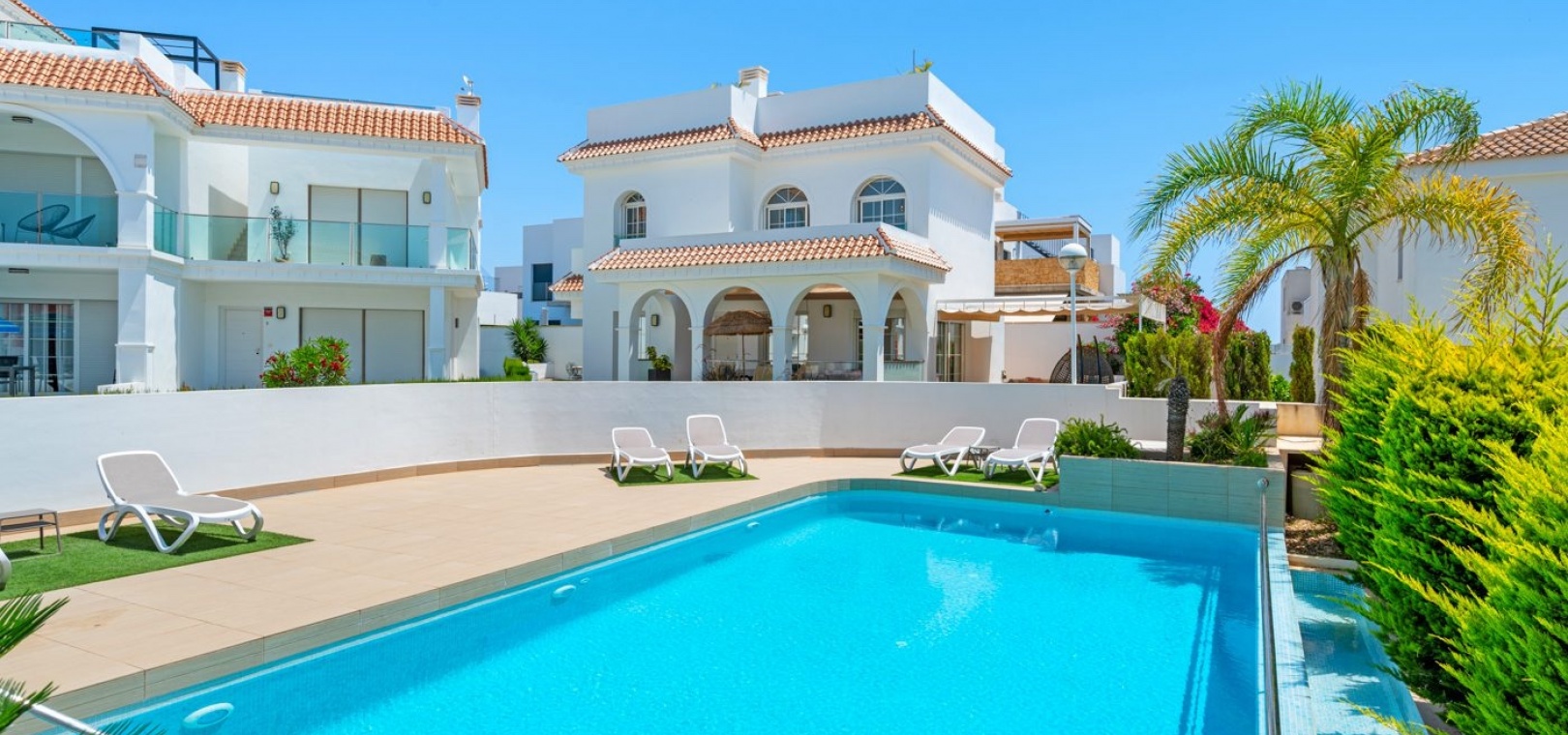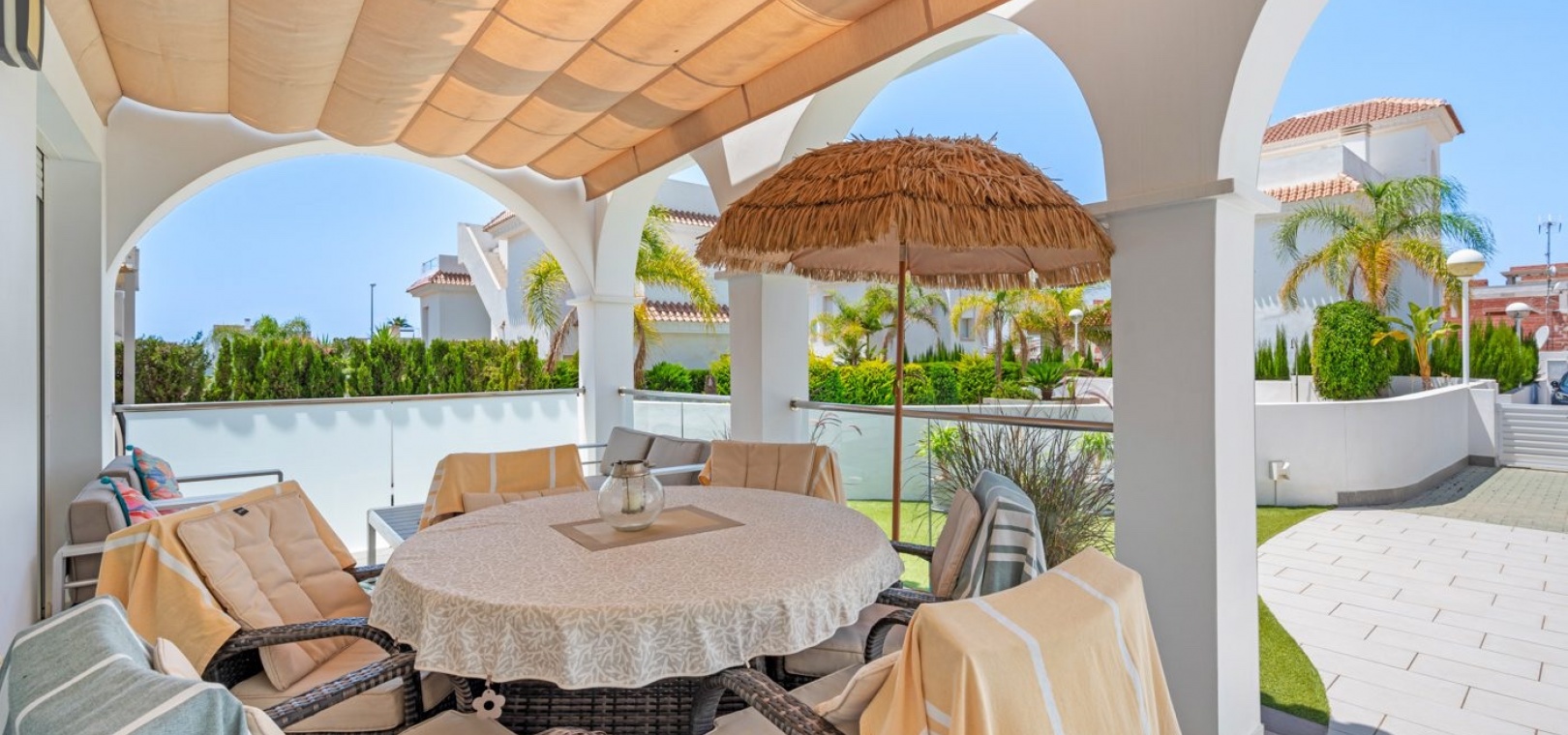 3 Schlafzimmer, 3 Badezimmer, SCHLÜSSELFERTIG, Villa mit Gemeinschaftspool, privatem Parkplatz und Solarium in Pueblo Bravo, Ciudad Quesada. Wohnanlage mit 12 Häusern. Villa mit 3 Schlafzimmern + 3 Badezimmern, davon ein Schlafzimmer im Erdgeschoss. Solarium 45 m2. Südwestausrichtung. Blick auf die Lagune von La Mata. Perfekter Zustand. Sofort beziehbar. Alles inklusive außer Gartenmöbeln. Stadtzentrum 800 m. Supermärkte/Restaurants 500 m. La Marquesa Golf 5 Min. Finca Golf 10 Min. Strände von Torrevieja und Guardamar 15 Min. Einkaufszentrum Habaneras 10 Min. Zenia Boulevard 15 Min. Ruhige Umgebung mit allen Dienstleistungen. Flughafen Alicante 35 Min. Murcia 45 Min.