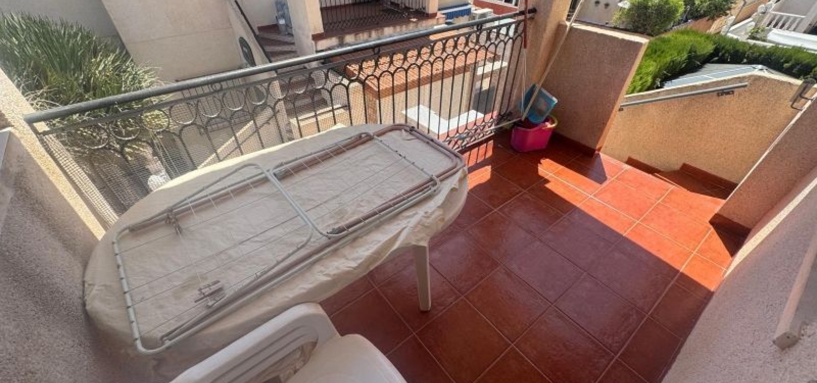 2 Schlafzimmer mit Einbauschränken 1 komplettes Badezimmer mit moderner Ausstattung Helle offene Küche und gemütlicher Wohn-Essbereich Private Terrasse und großes Solarium, ideal zum Sonnenbaden oder für Unterhaltung Nach Osten ausgerichtet für natürliches Licht den ganzen Tag Innenparkplatz inklusive Zugang zu einem Gemeinschaftspool und angelegten Gemeinschaftsbereichen