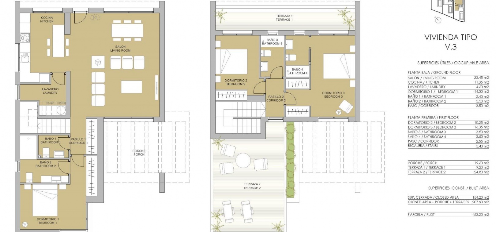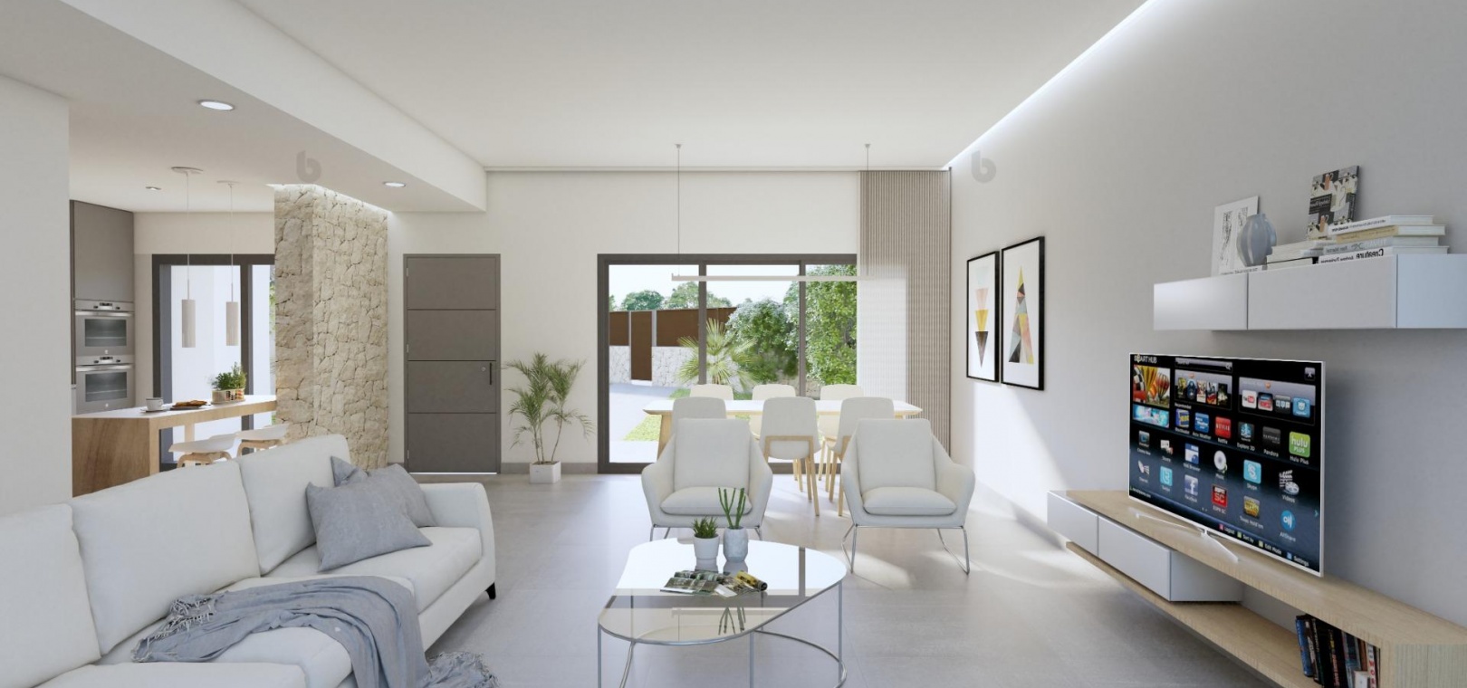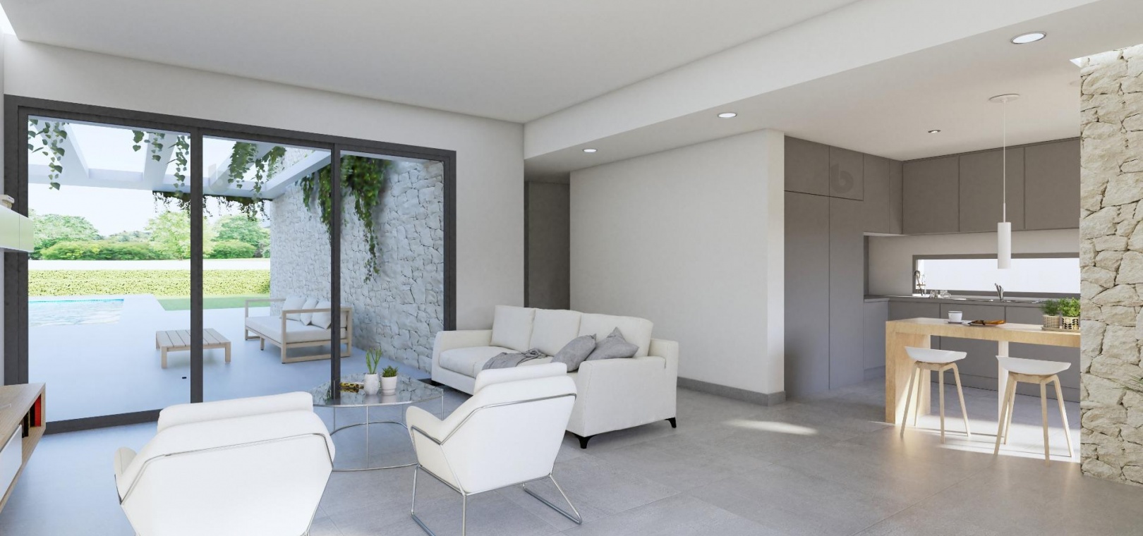 Die neu gebauten freistehenden Villen verfügen über 3 Schlafzimmer, 4 Bäder, eine offene Küche mit Wohnbereich, Einbauschränke, einen privaten Garten mit Pool und einen Parkplatz abseits der Straße.