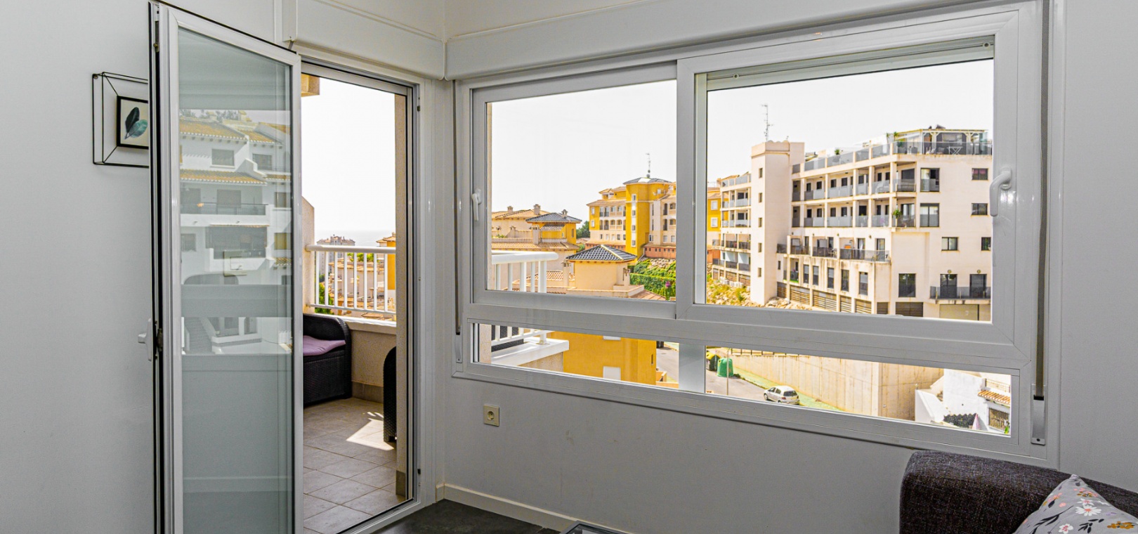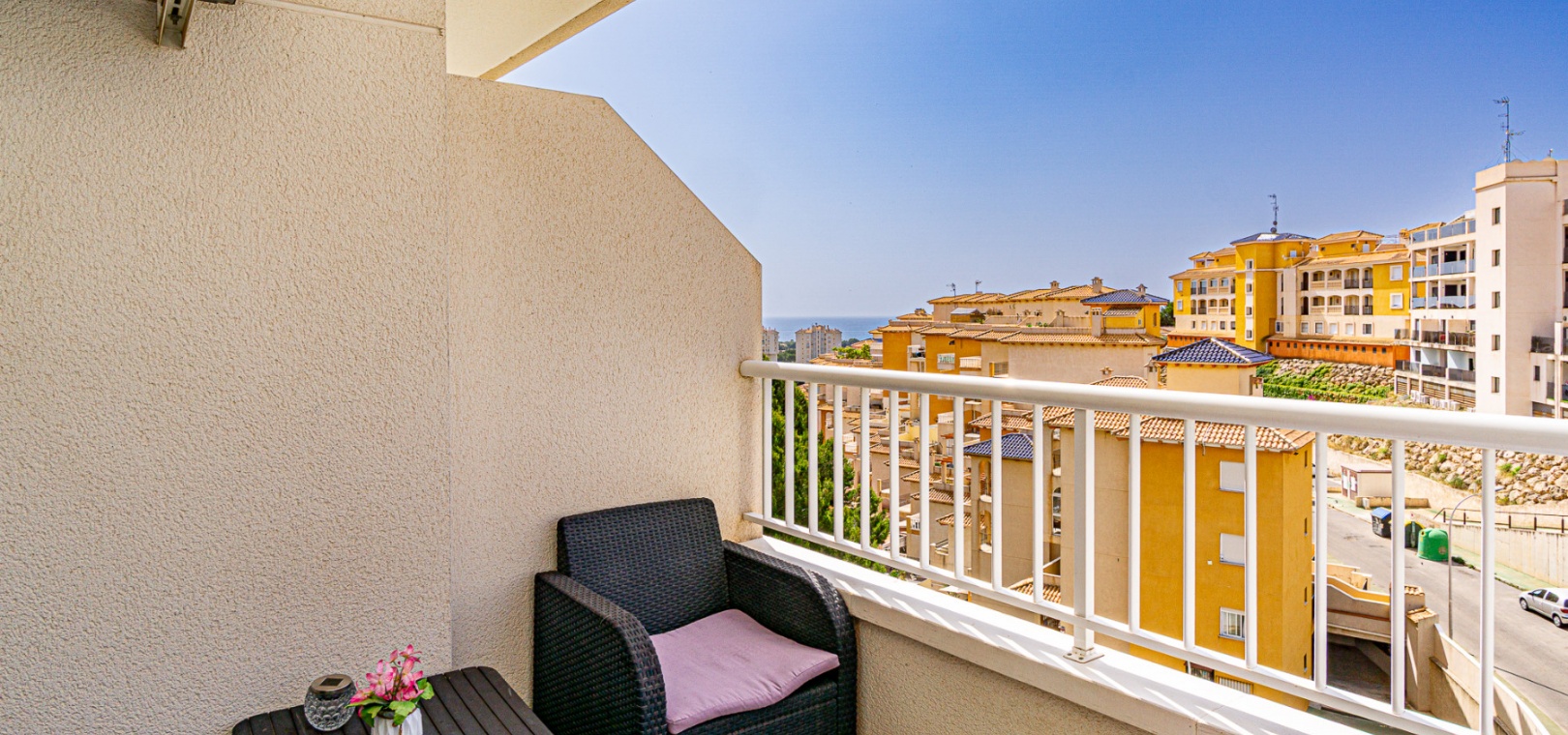 Wir präsentieren Ihnen diese schöne Wohnung im fünften Stock eines modernen Gebäudes mit Aufzug, gebaut im Jahr 2016, in der beliebten Wohnanlage Altos de Campoamor. Das Gebäude verfügt über einen großzügigen und hellen Eingangsbereich, der einen gepflegten ersten Eindruck hinterlässt.