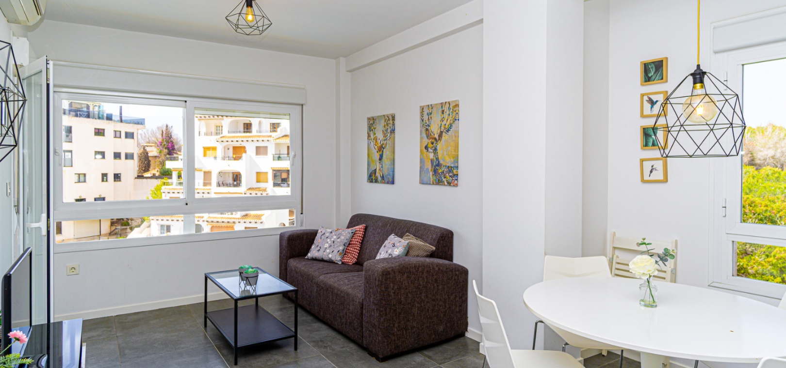 Die Wohnung wird möbliert verkauft (außer dem Bett im Hauptschlafzimmer) und mit Haushaltsgeräten. Eine Klimaanlage im Wohnzimmer ist ebenfalls vorhanden.